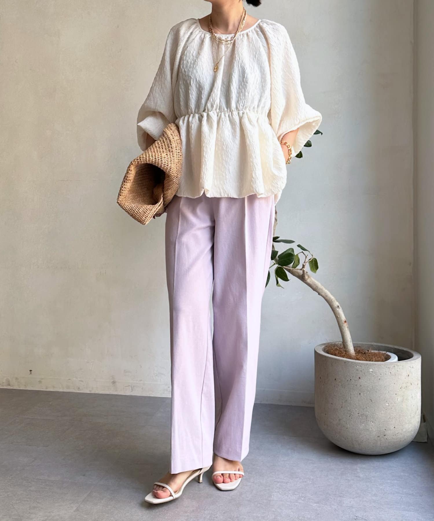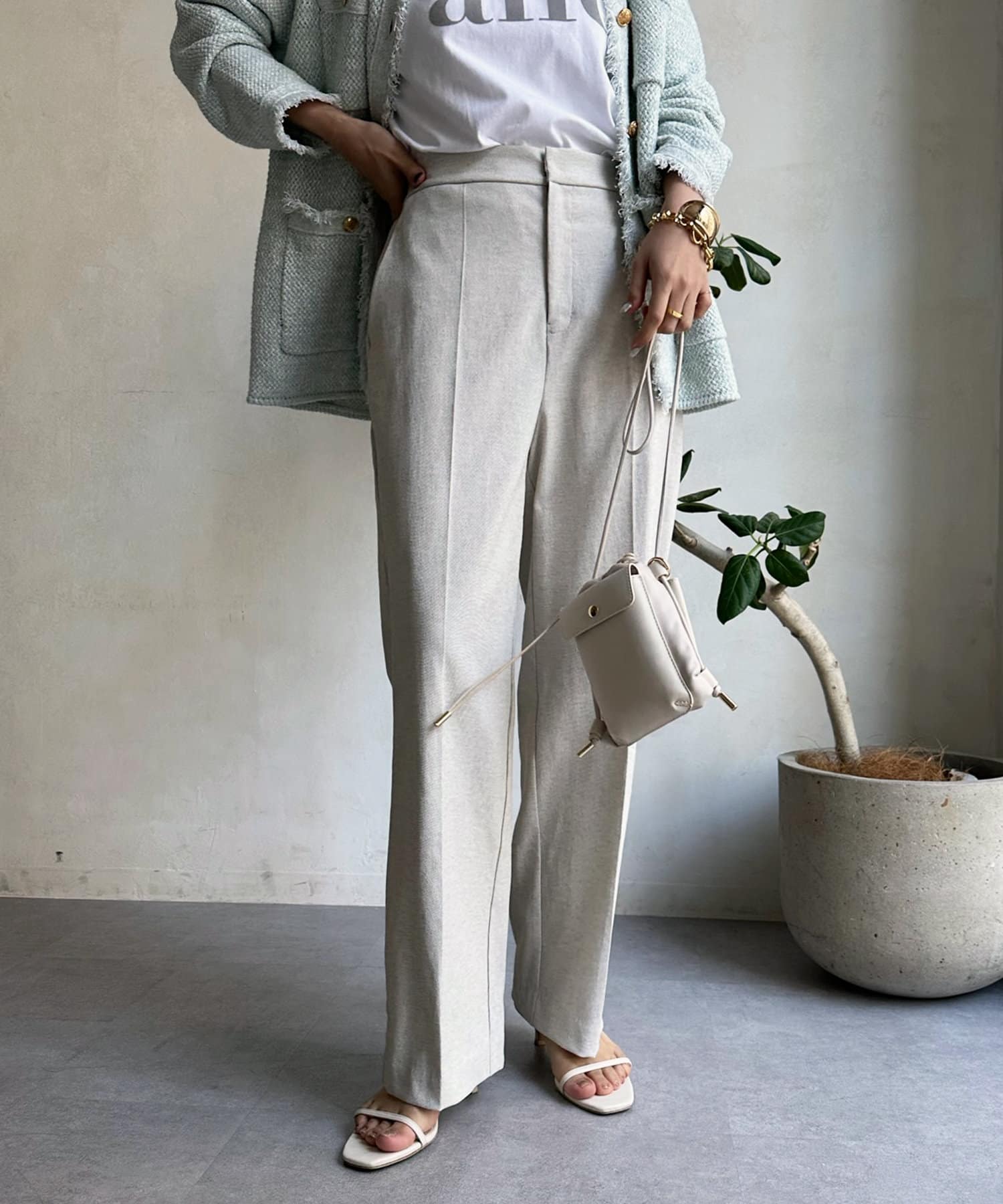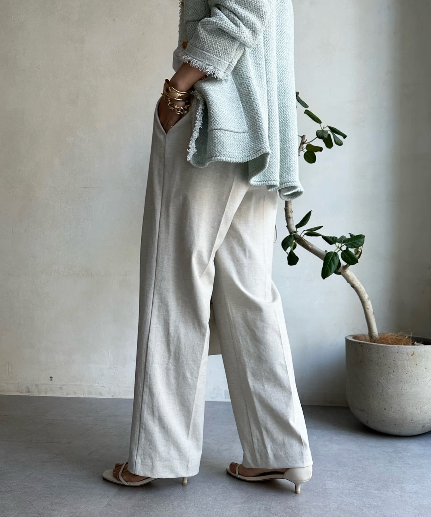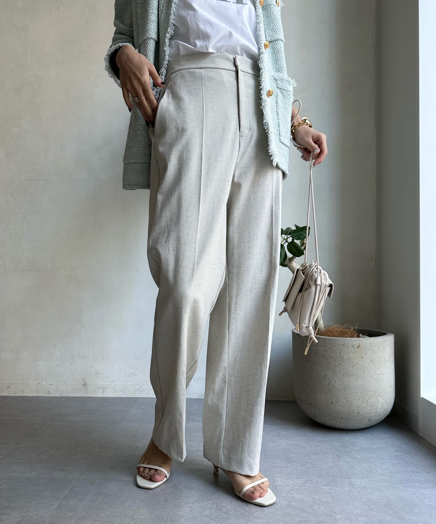 リネン混でドライタッチな質感もあり、カジュアルなスタイルとも相性抜群!