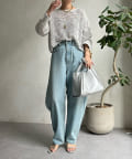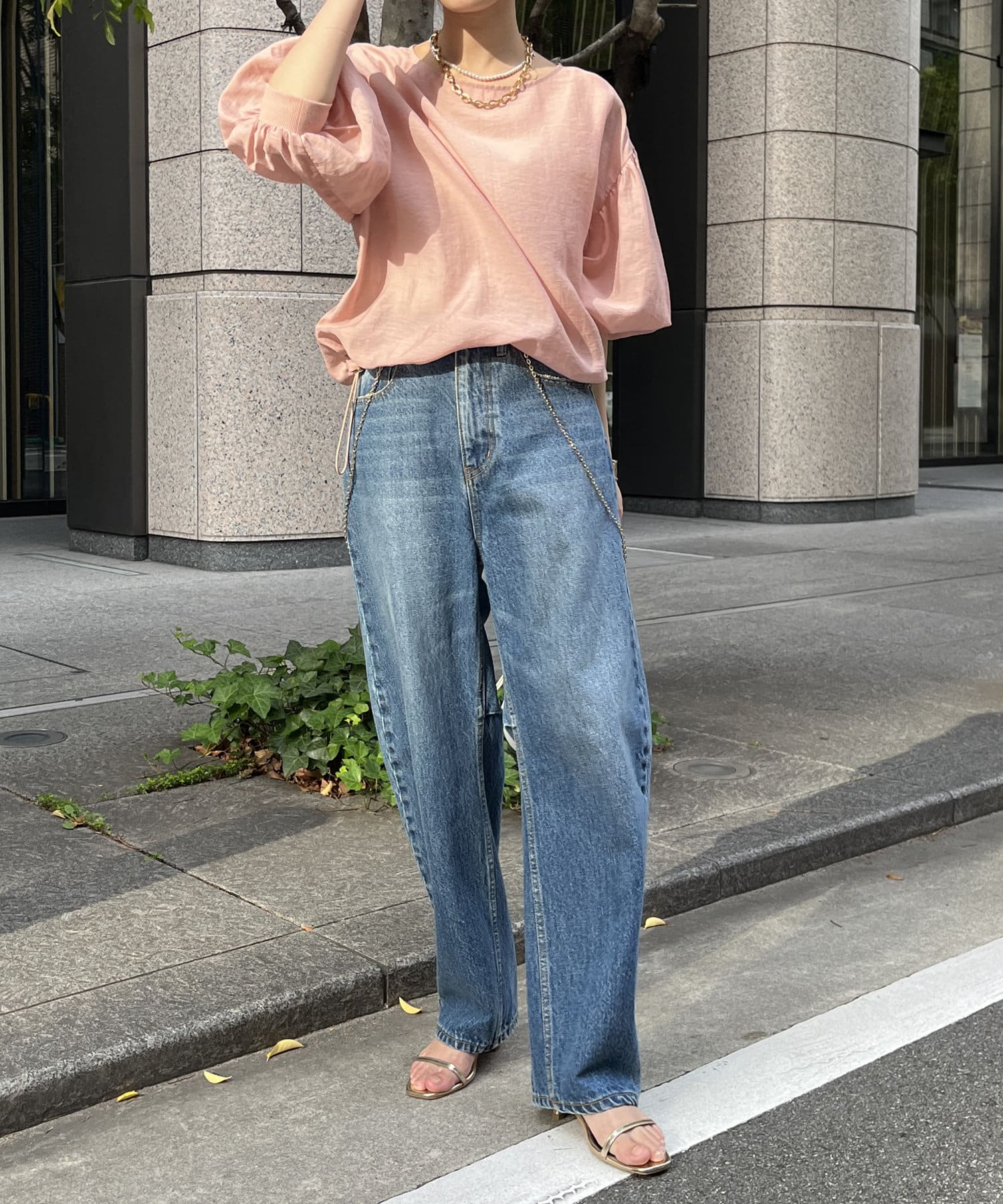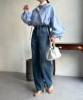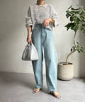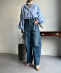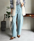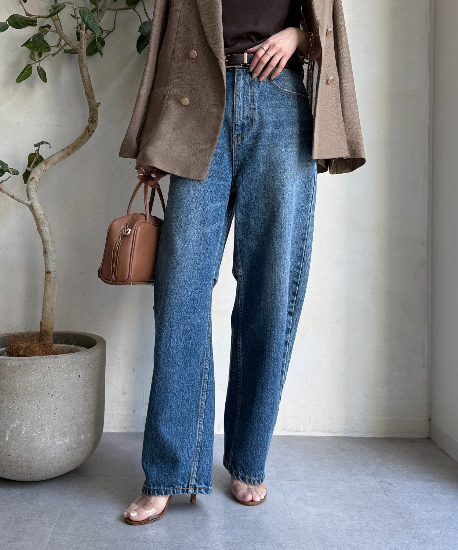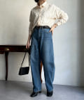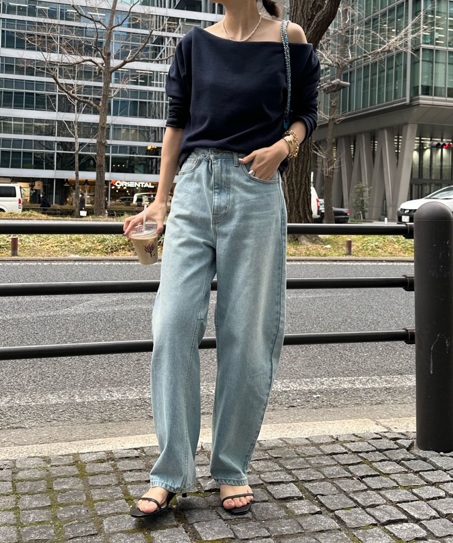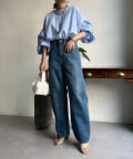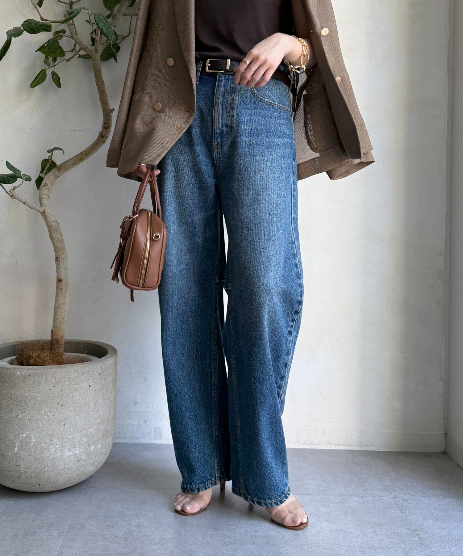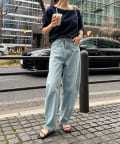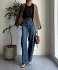 カジュアルなデニムパンツですが、きれいめなアイテムともマッチしてくれるのがこのパンツのうれしいポイント。