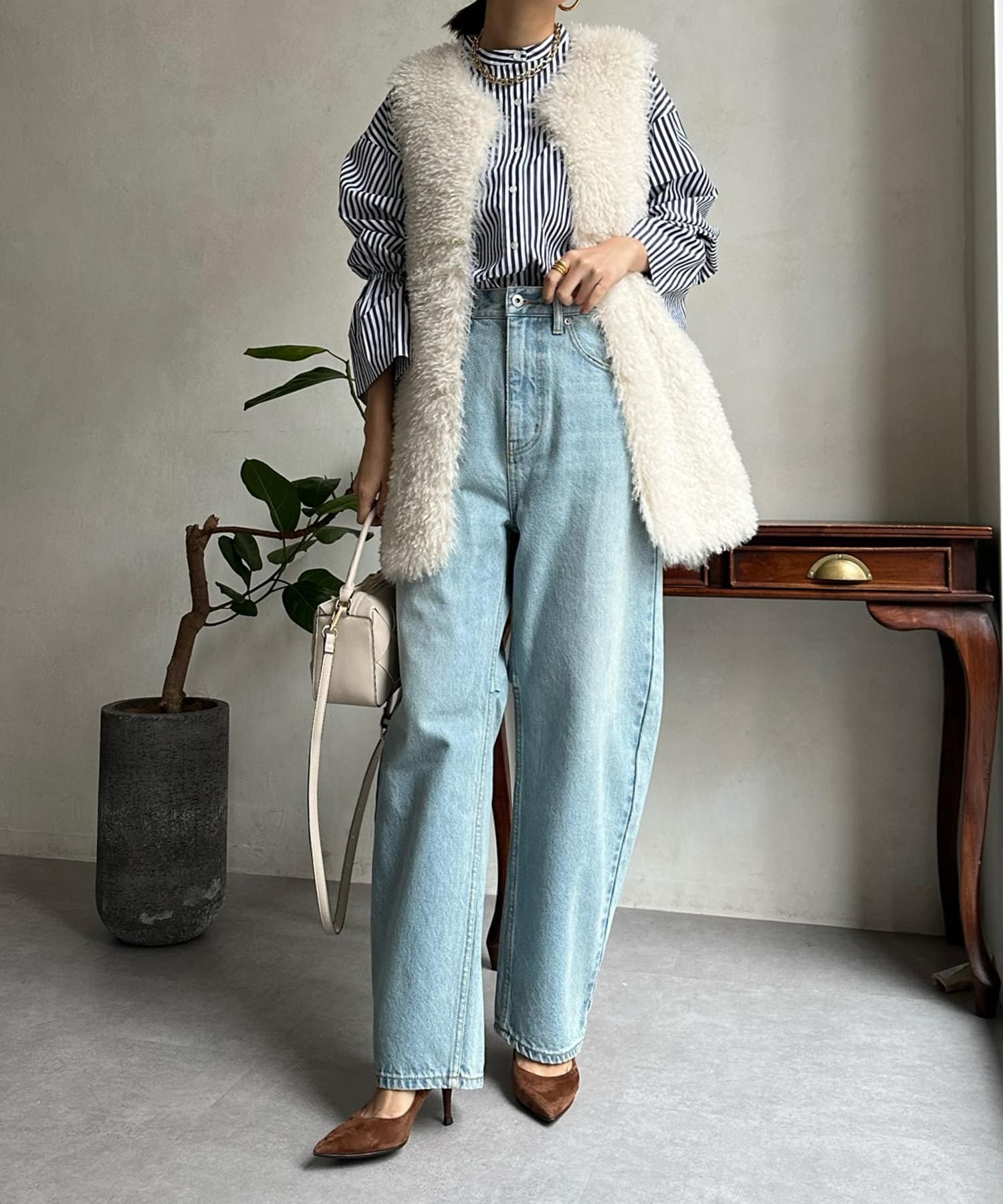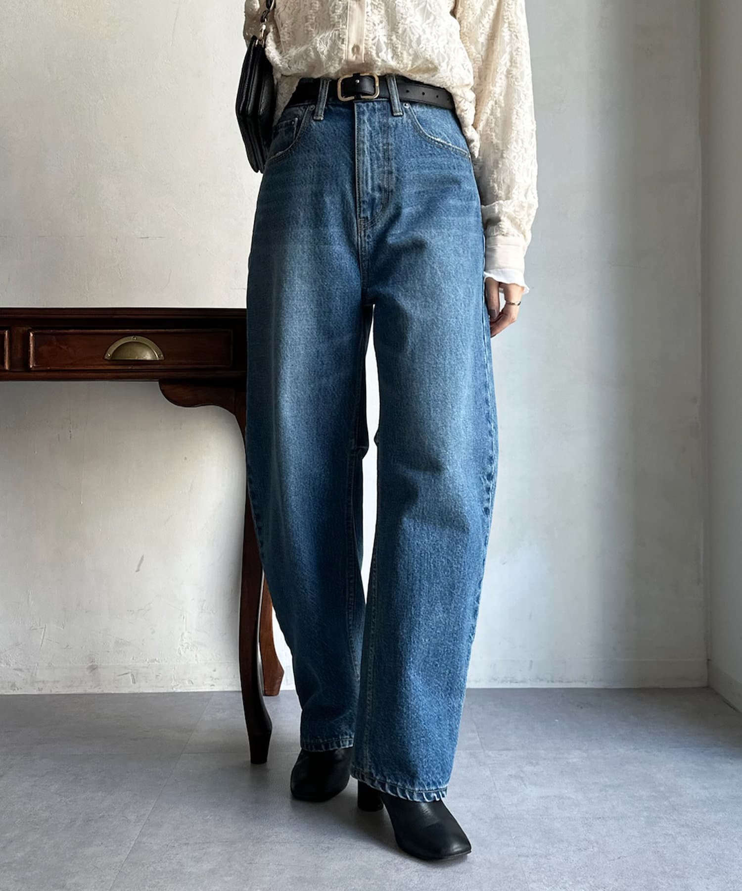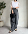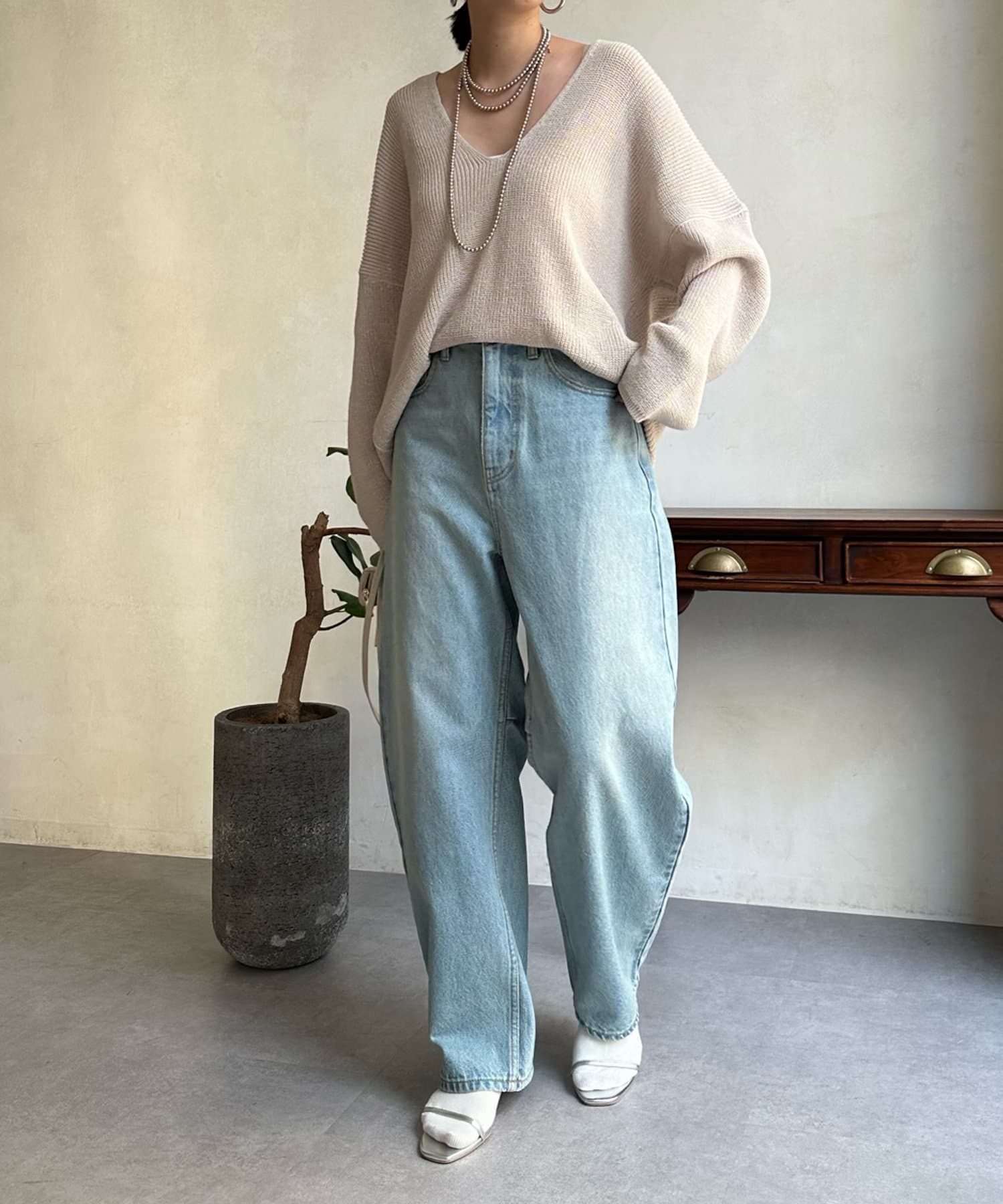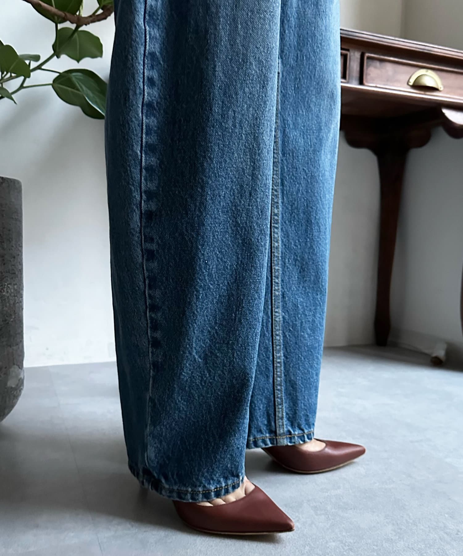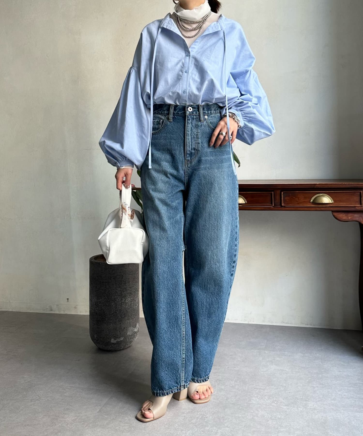 カジュアルなデニムパンツですが、きれいめなアイテムともマッチしてくれるのがこのパンツのうれしいポイント。
