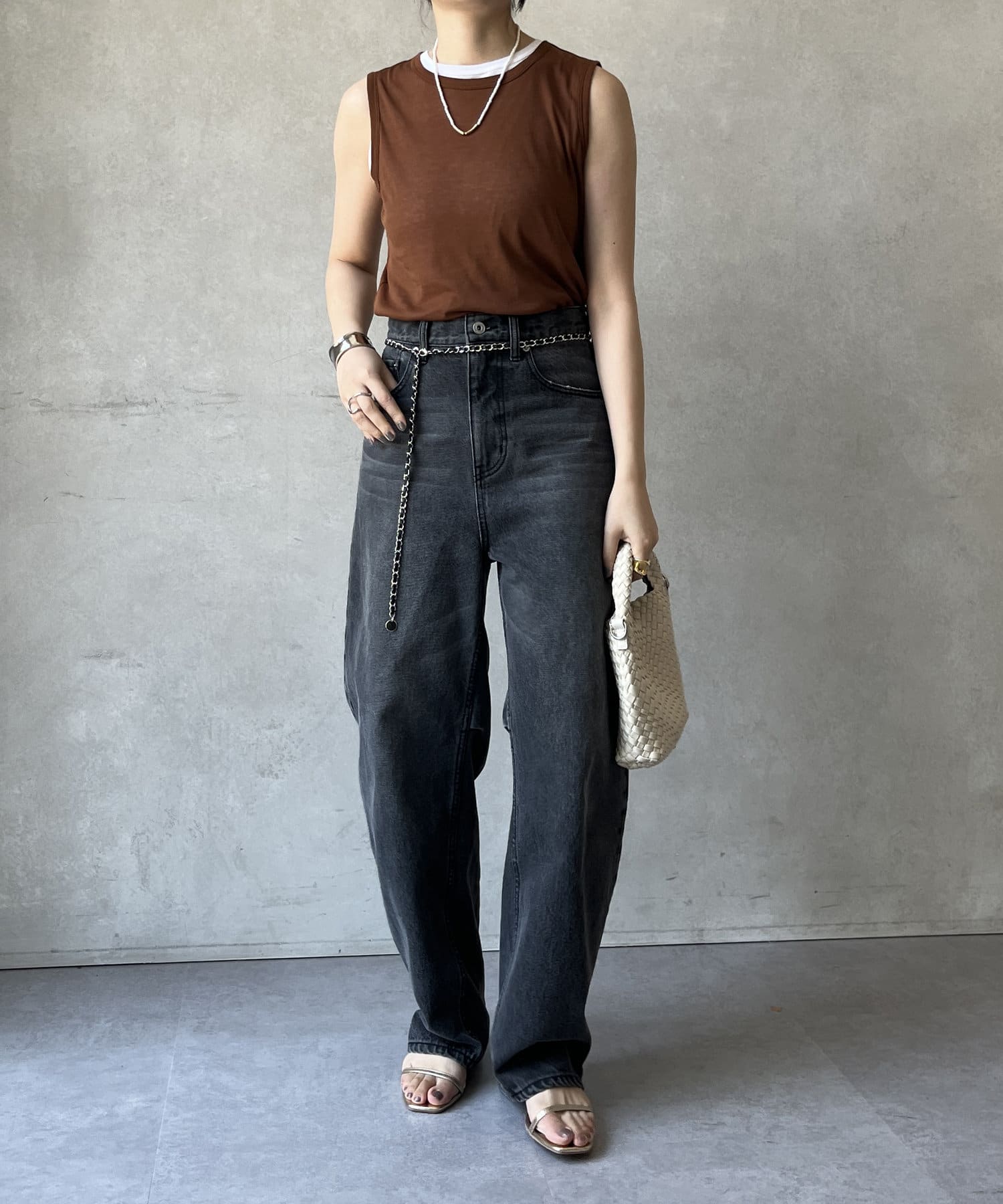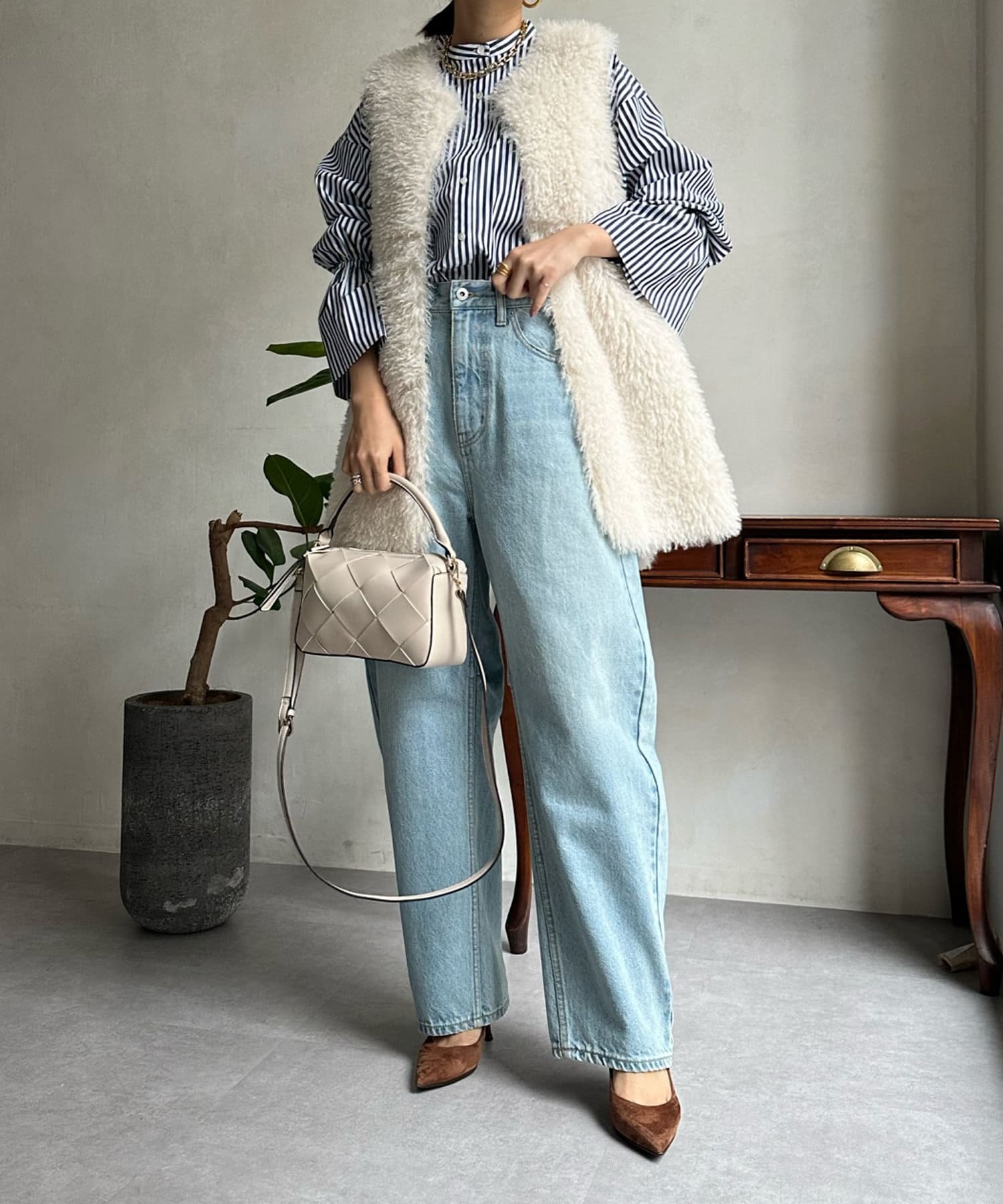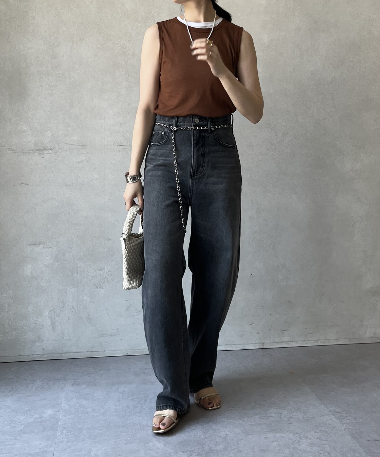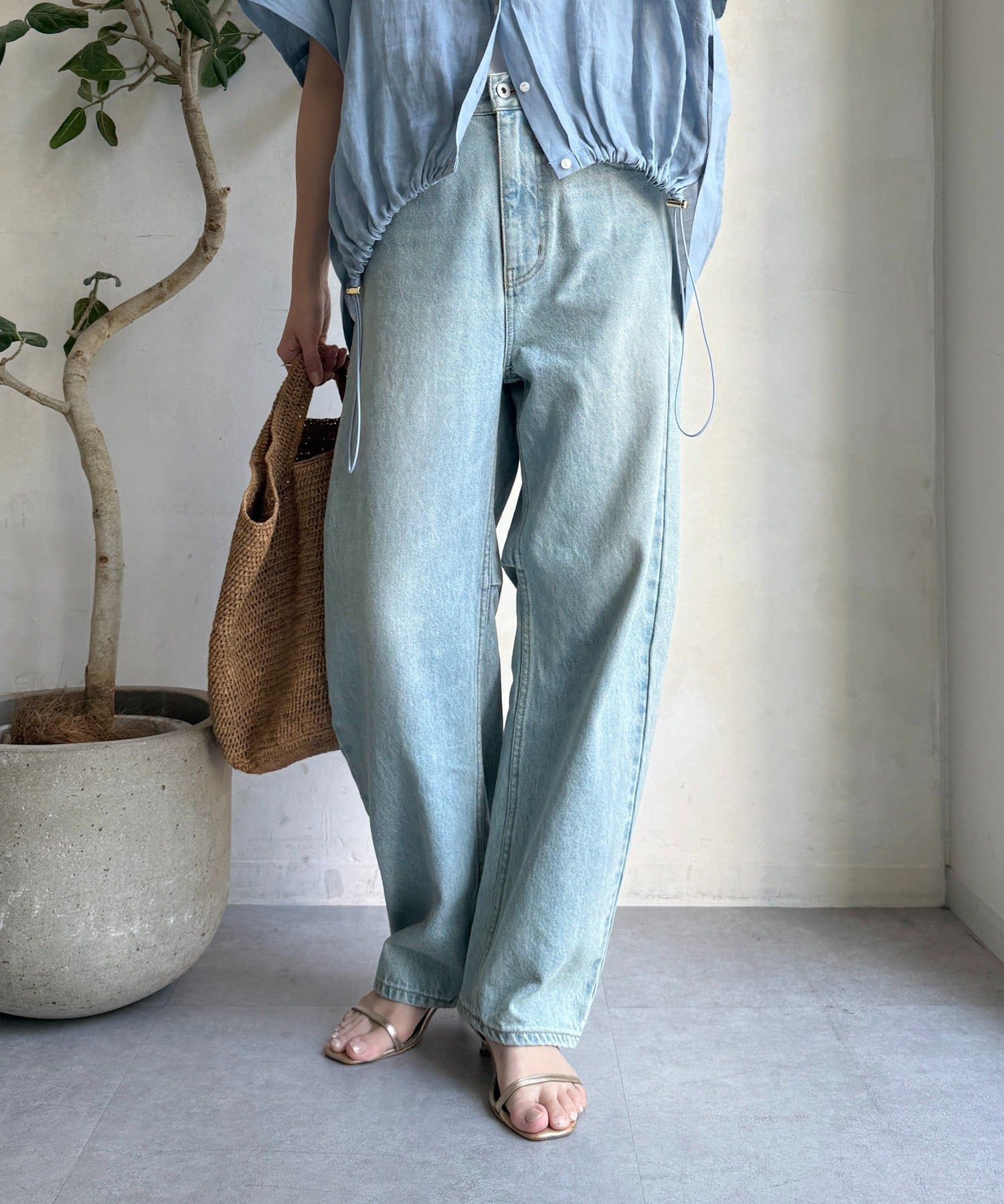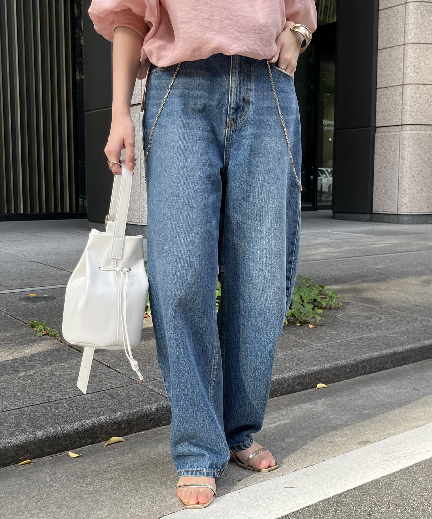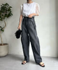 カジュアルなデニムパンツですが、きれいめなアイテムともマッチしてくれるのがこのパンツのうれしいポイント。