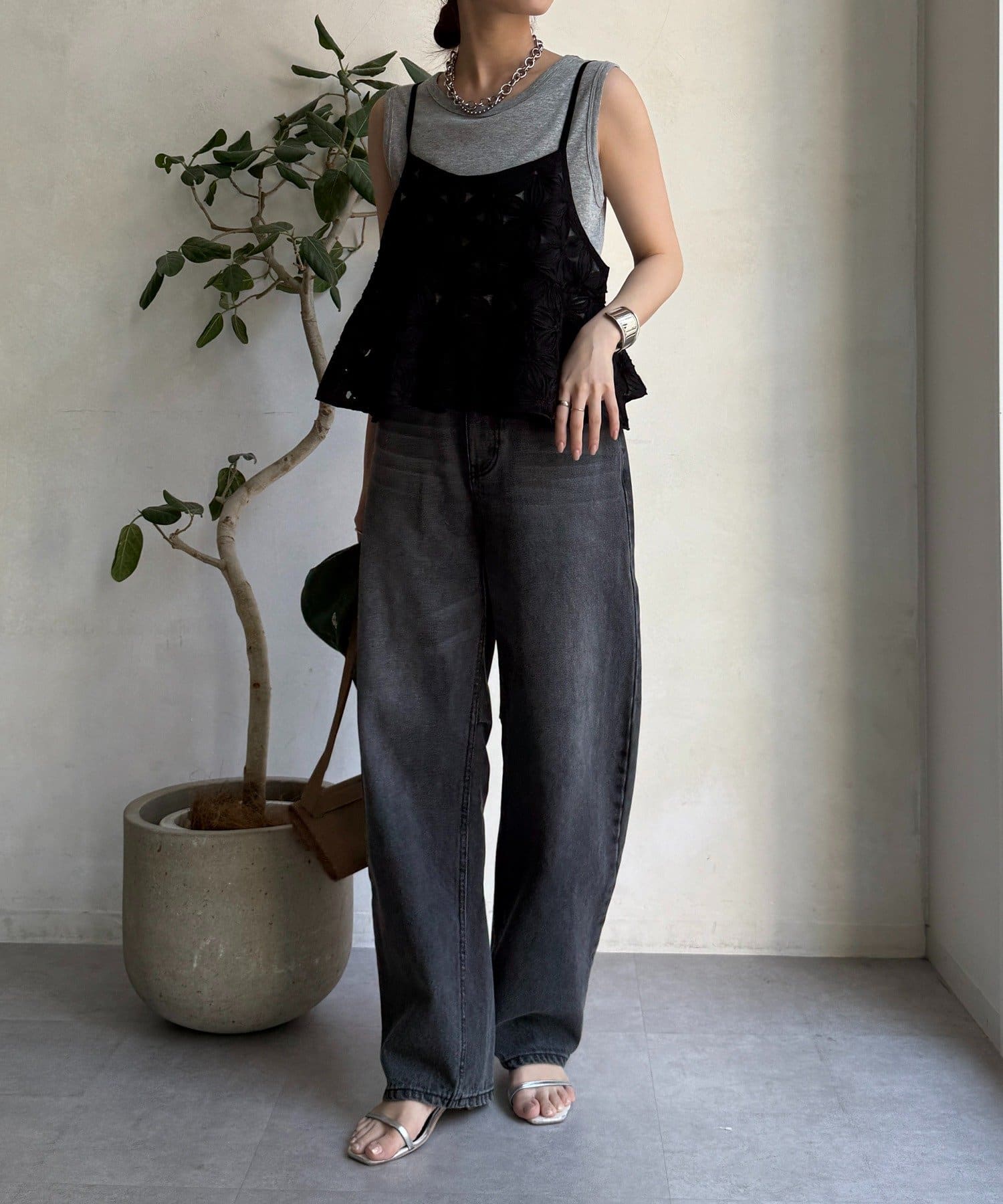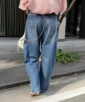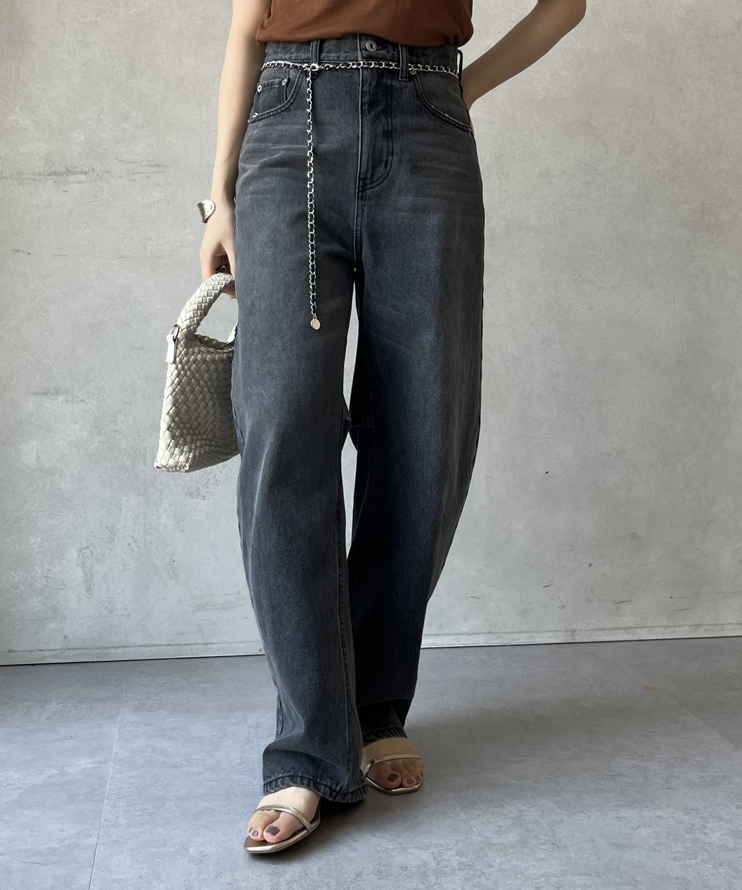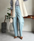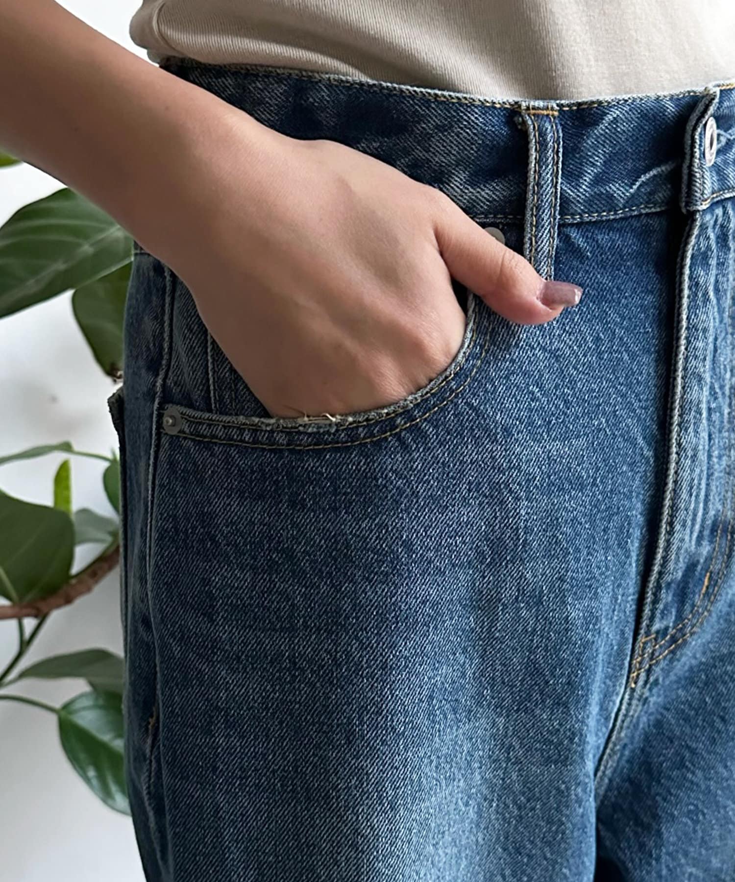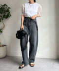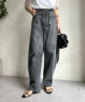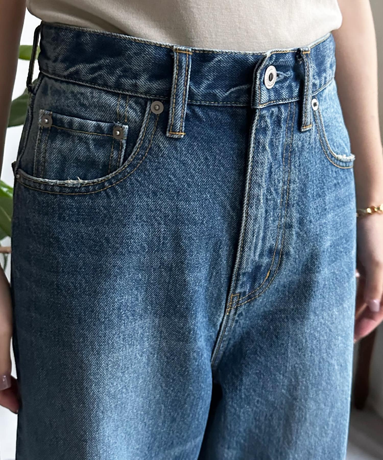 カジュアルなデニムパンツですが、きれいめなアイテムともマッチしてくれるのがこのパンツのうれしいポイント。