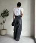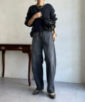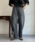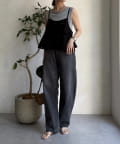 膝位置の内側にタックを入れることで生まれる、カーブのラインがシルエットのポイント。