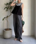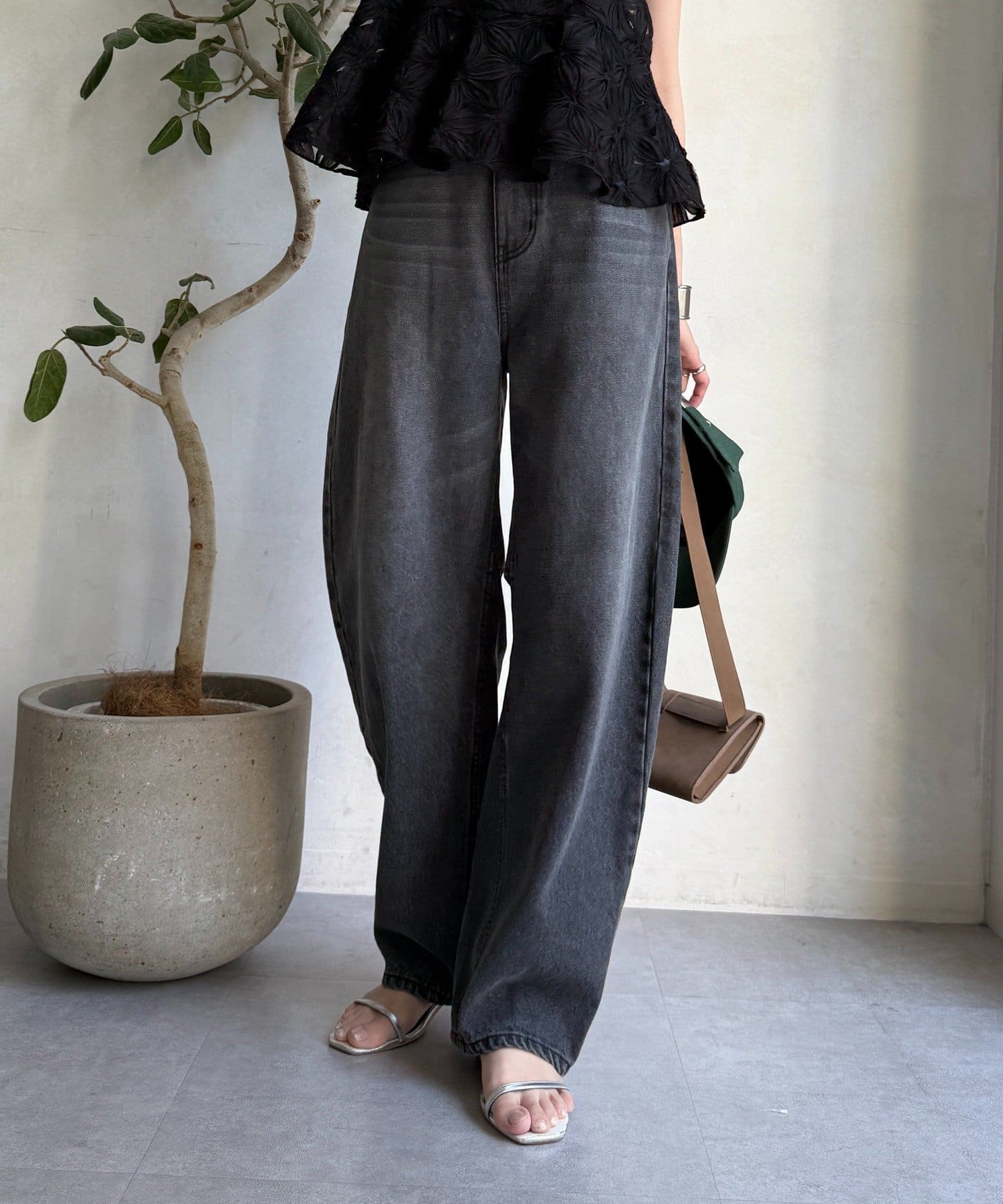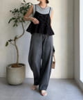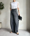 ヒップラインや脚のラインなどの気になる部分をカバーしながら、裾にかけて細身になるシルエットに仕上げています。