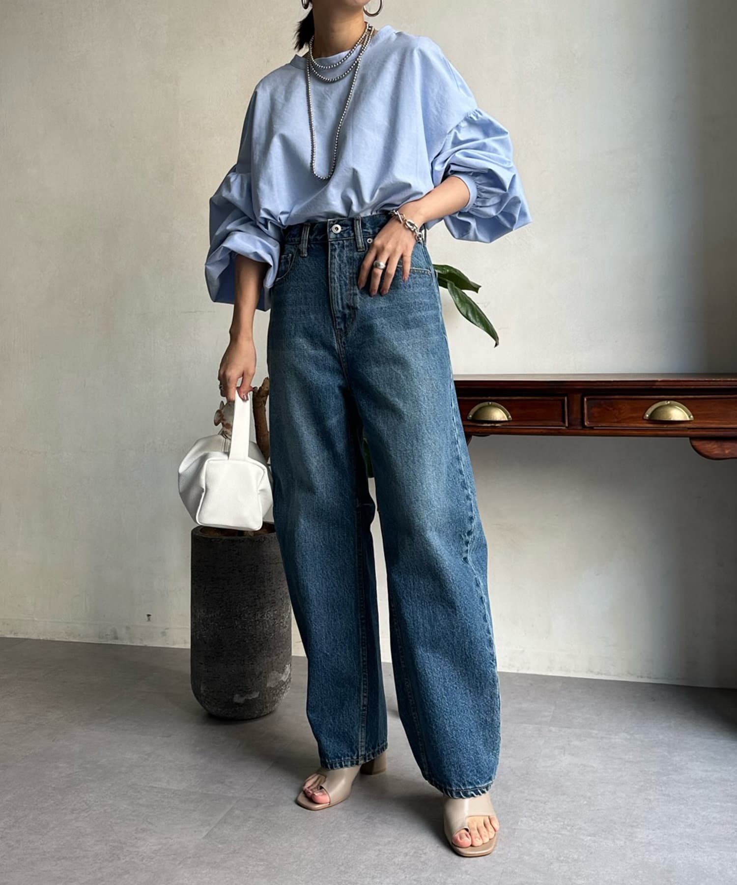 コンパクトなトップスとシンプルにスタイリングするだけでも、ワンランク上のデニムコーデが楽しめる主役級の1着です。