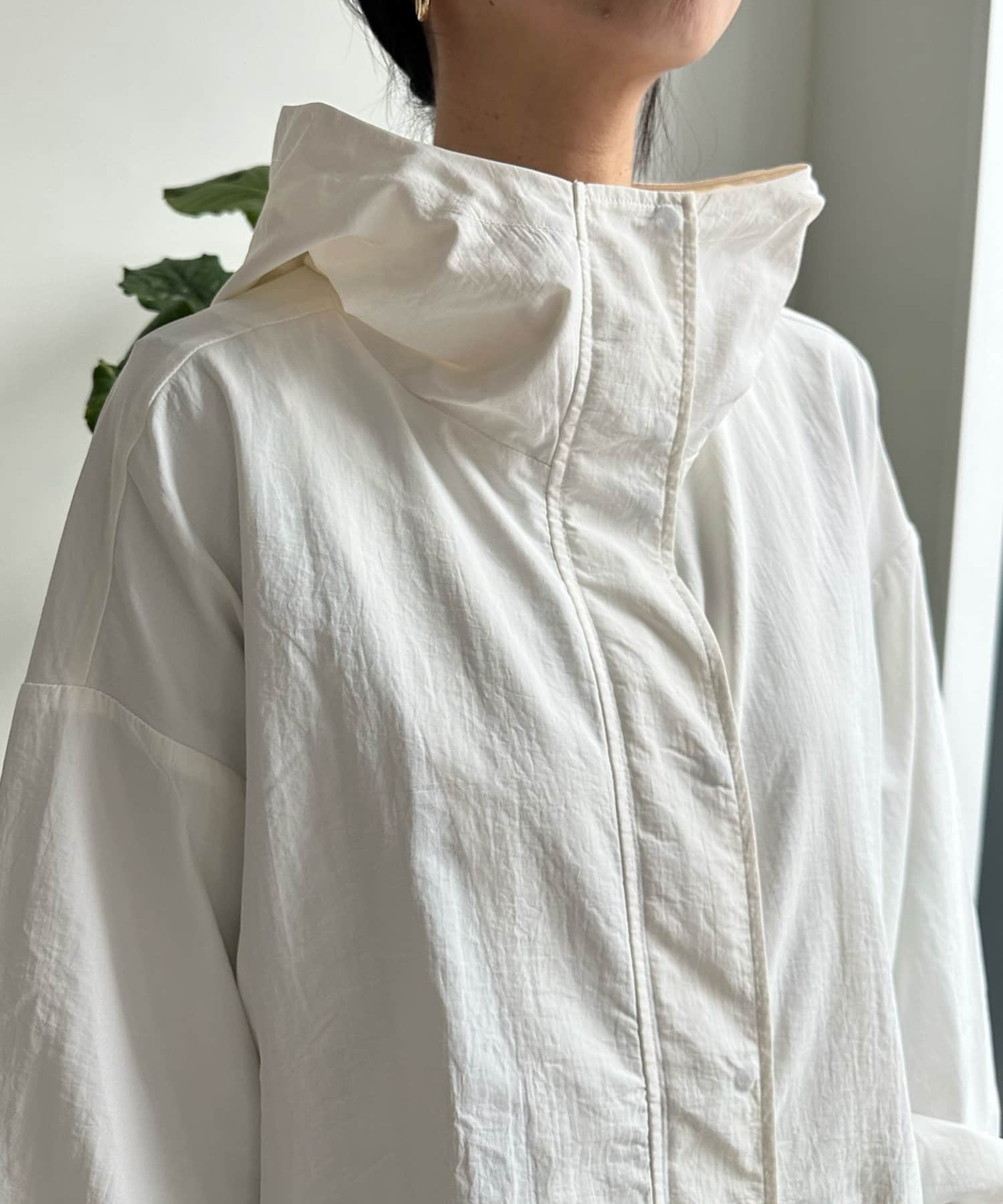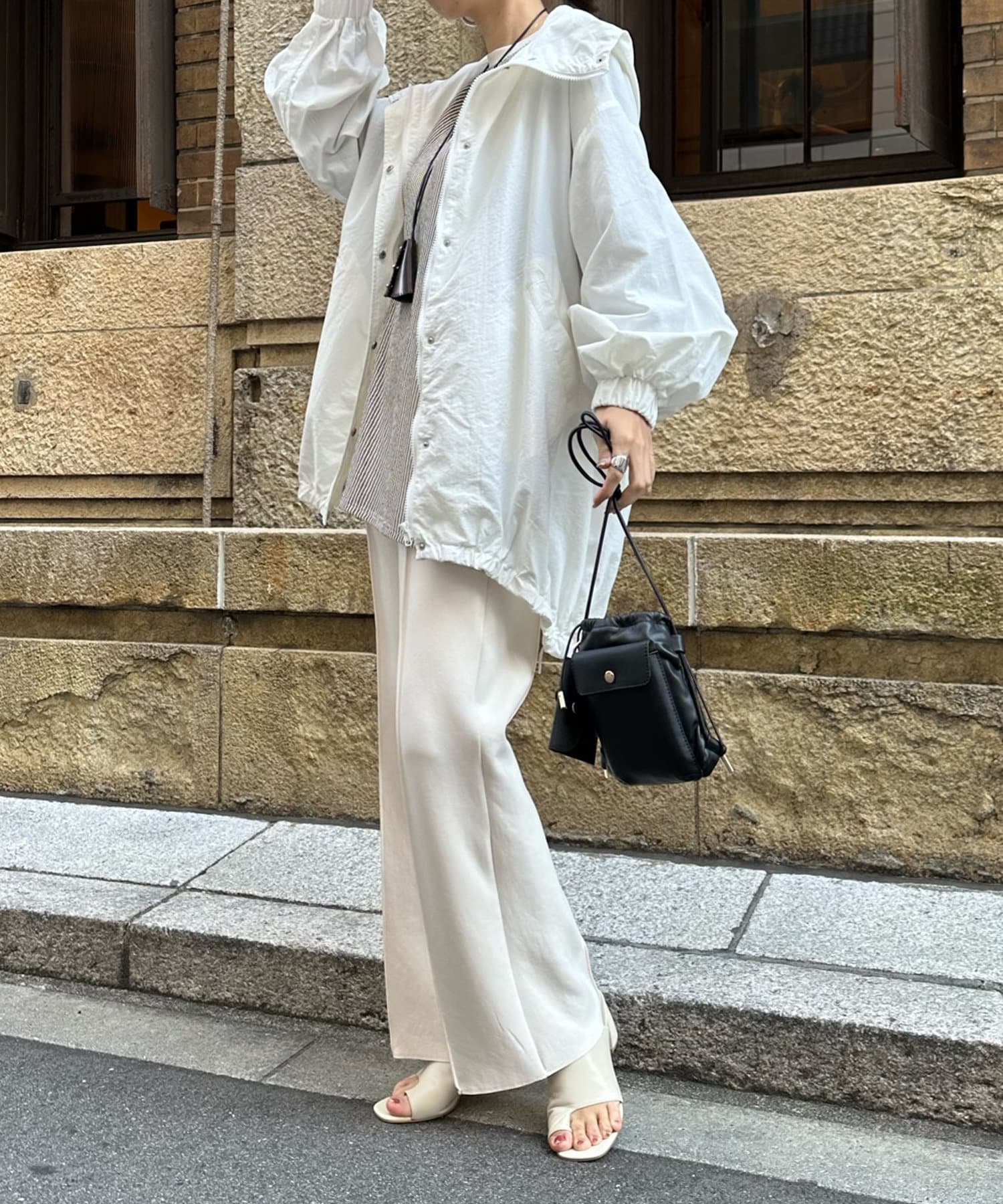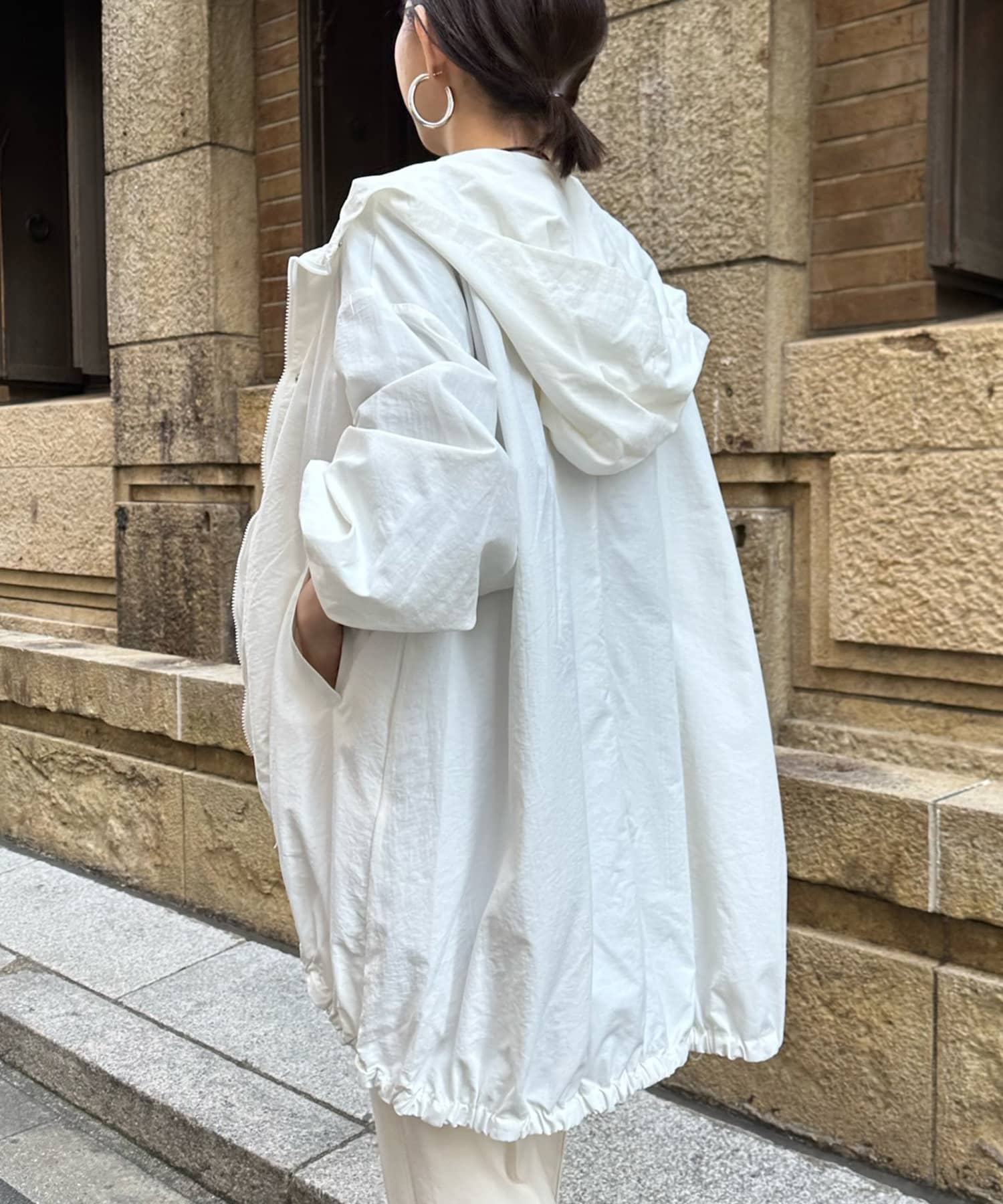 大人な印象で着用頂ける様、ドローコードによる変形シルエットなど細部にこだわった1着。