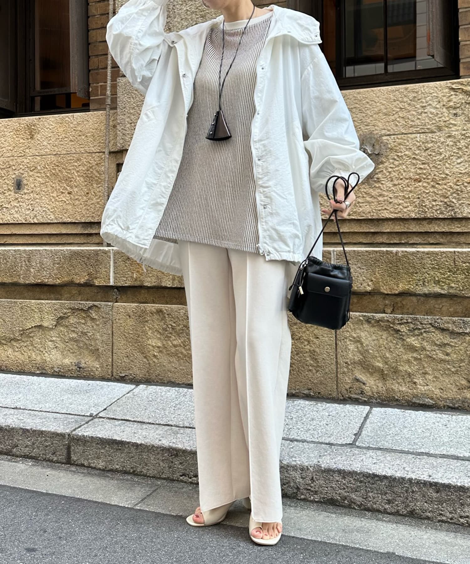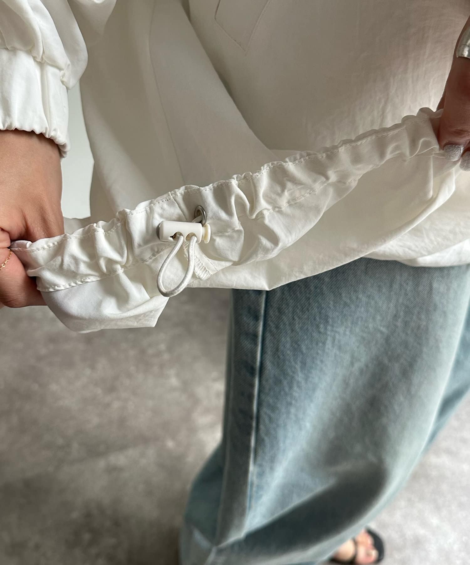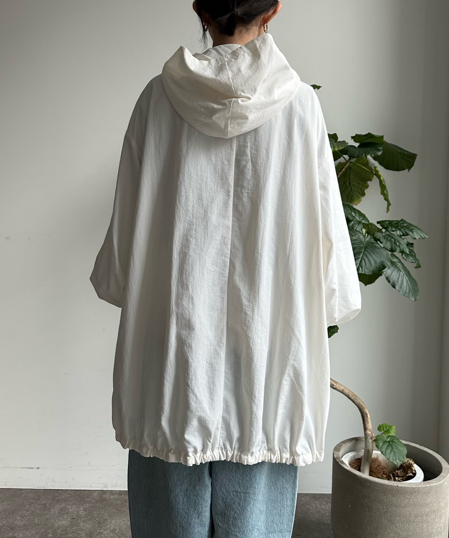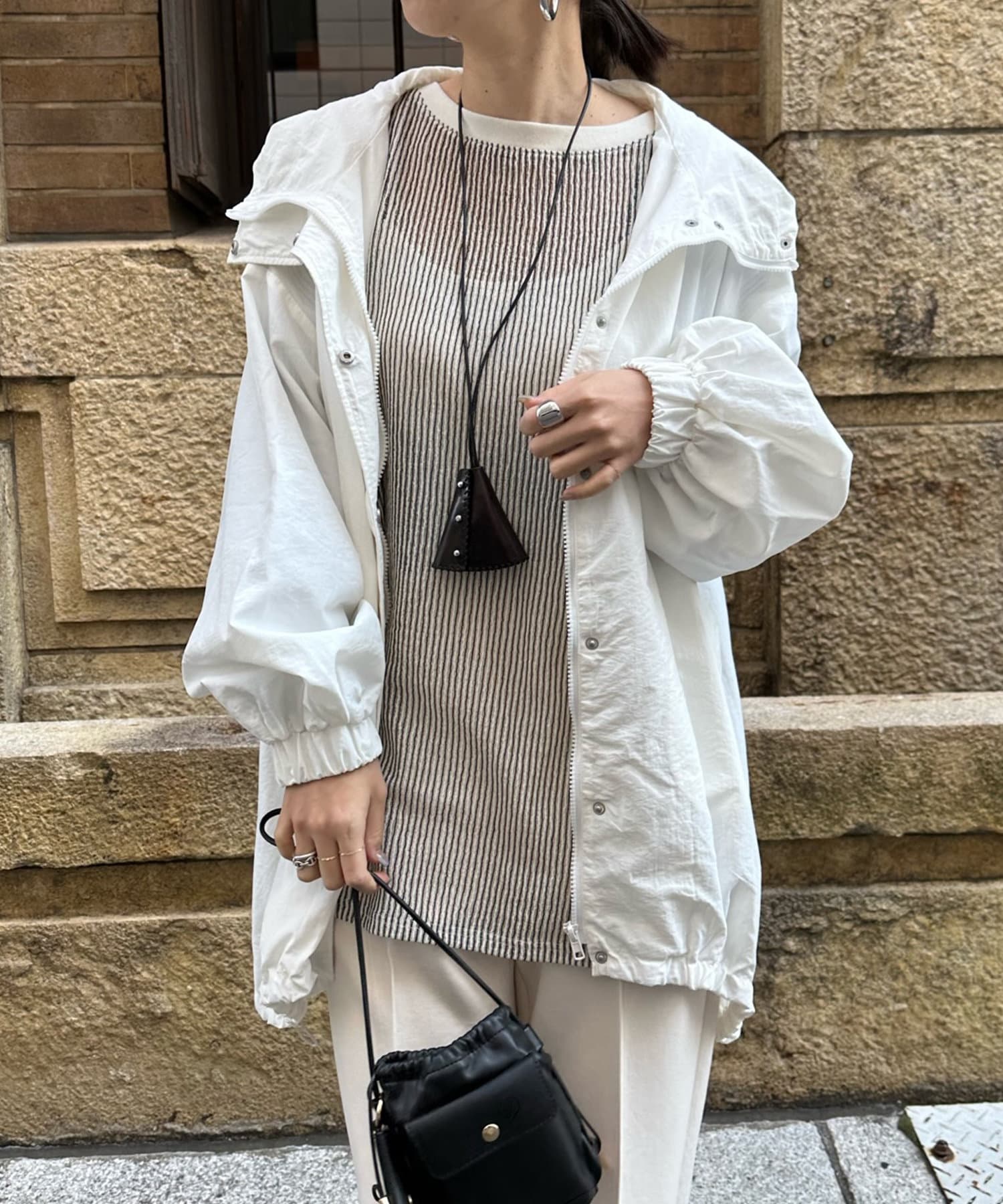 大人な印象で着用頂ける様、ドローコードによる変形シルエットなど細部にこだわった1着。