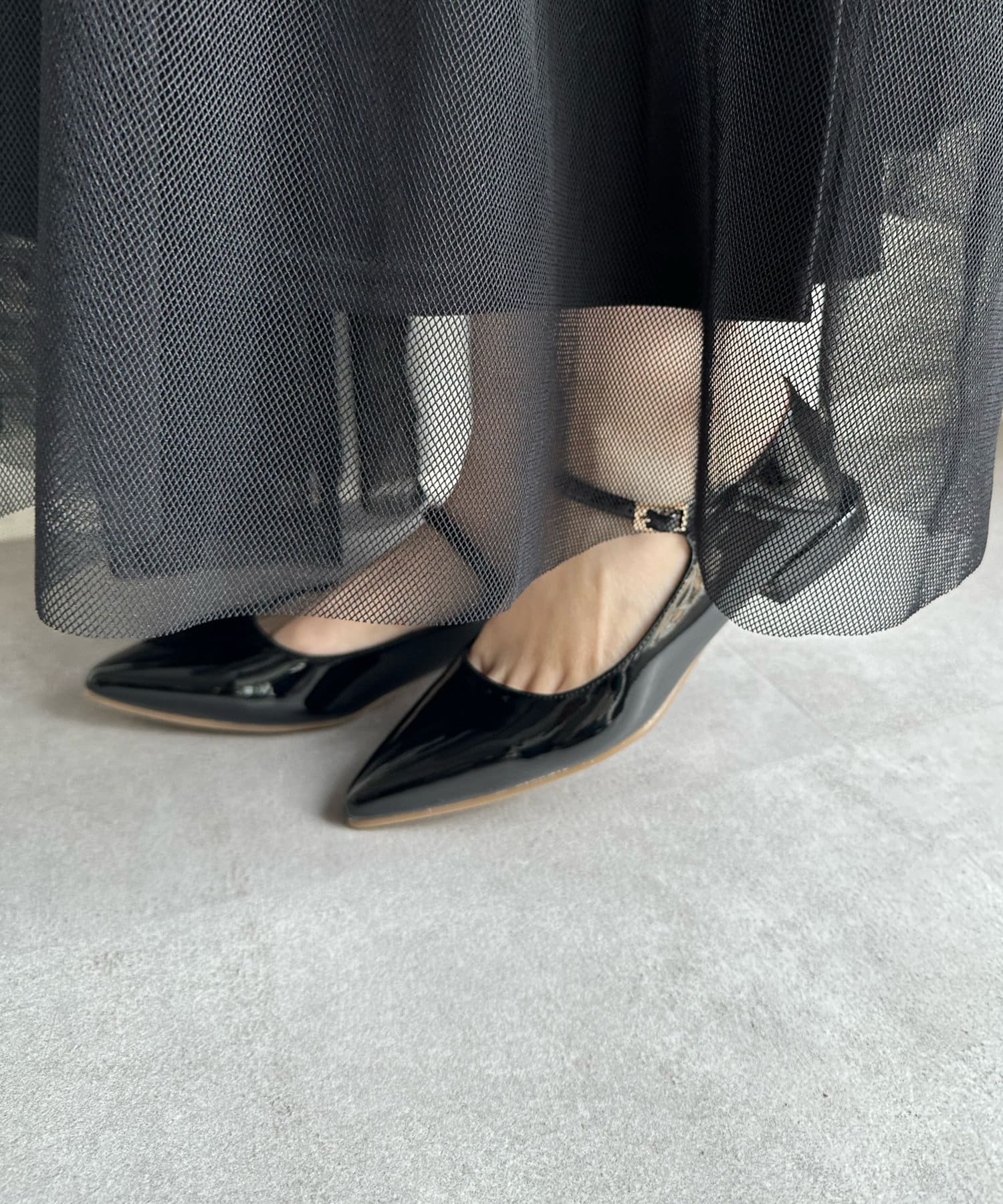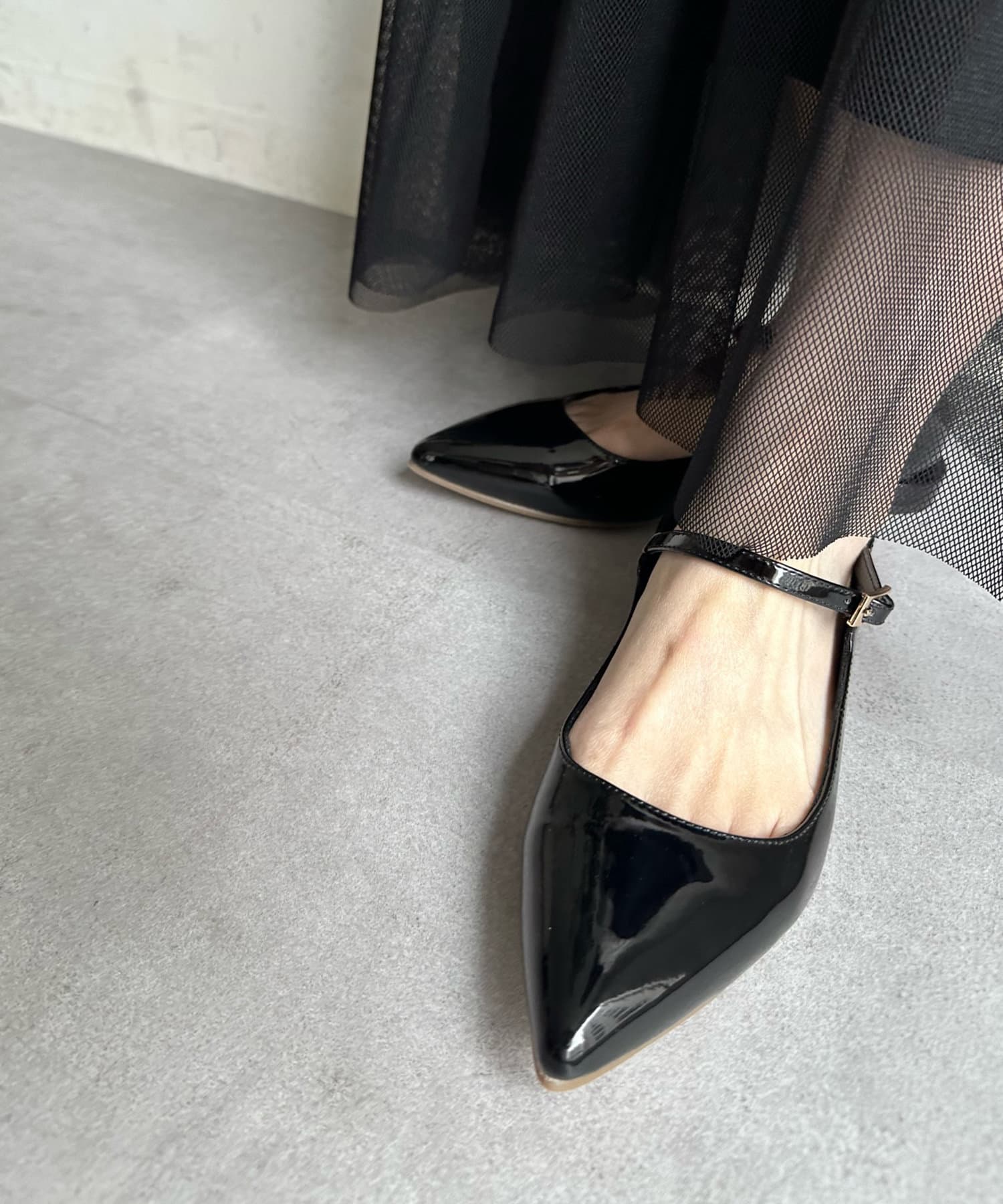 シンプルなシルエットながら細ストラップベルトできちんと感を残しつつ今っぽい足元に!