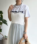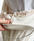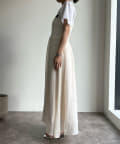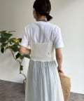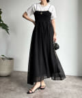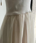 スカート部分は透け感のあるソフトな風合いで、広がりすぎないシルエットに。