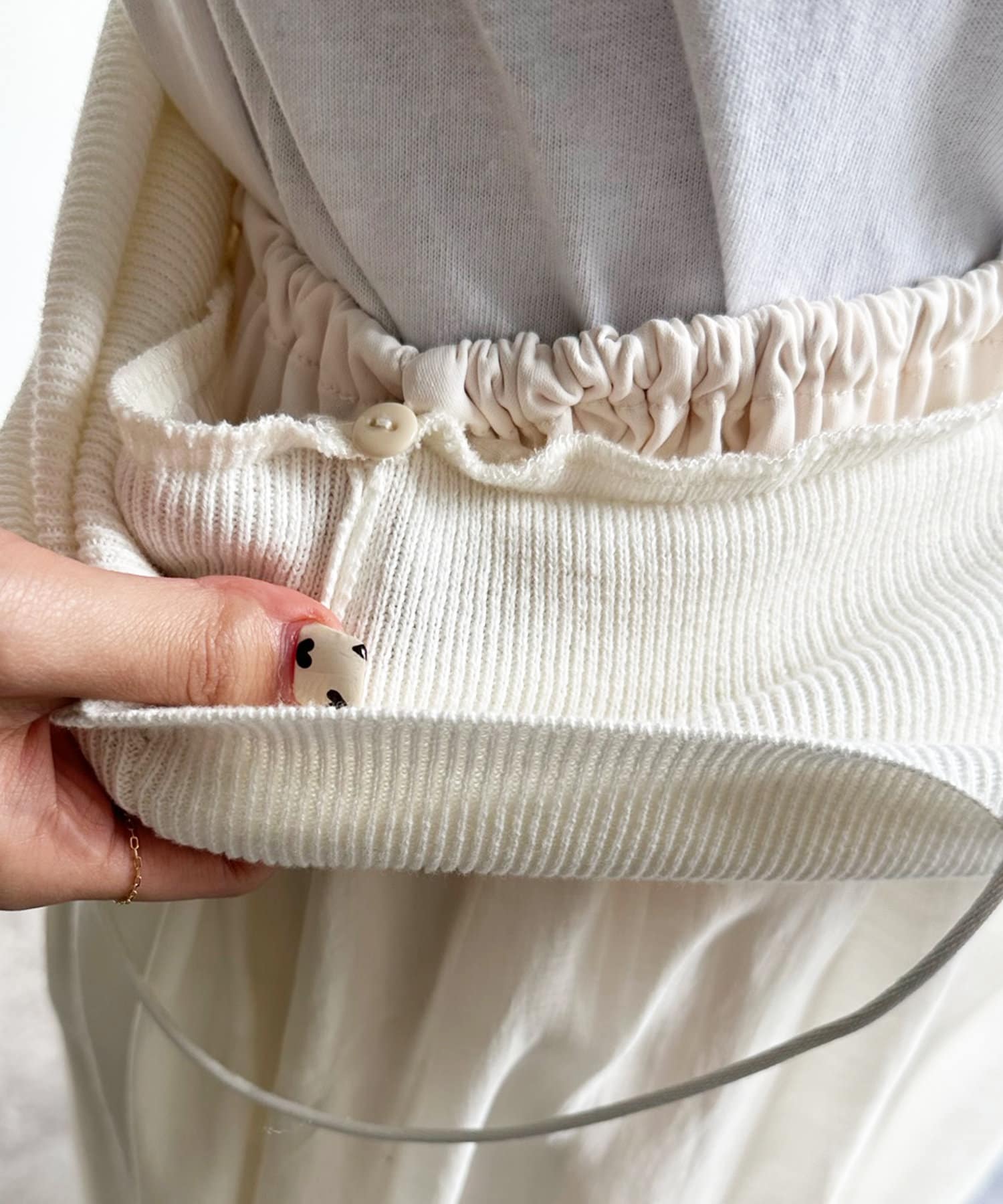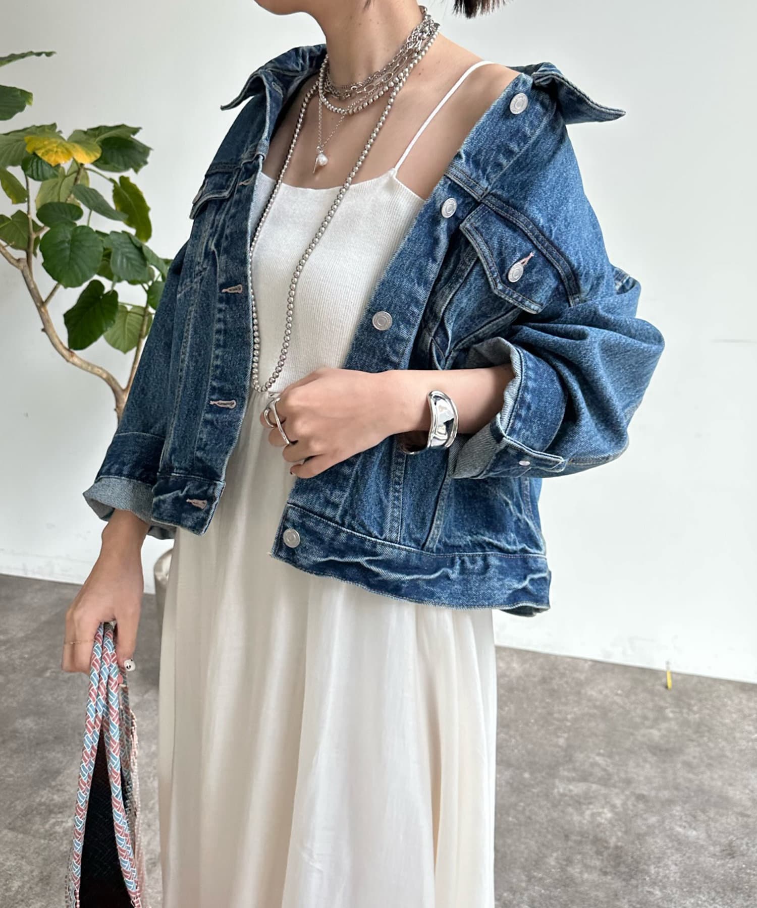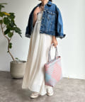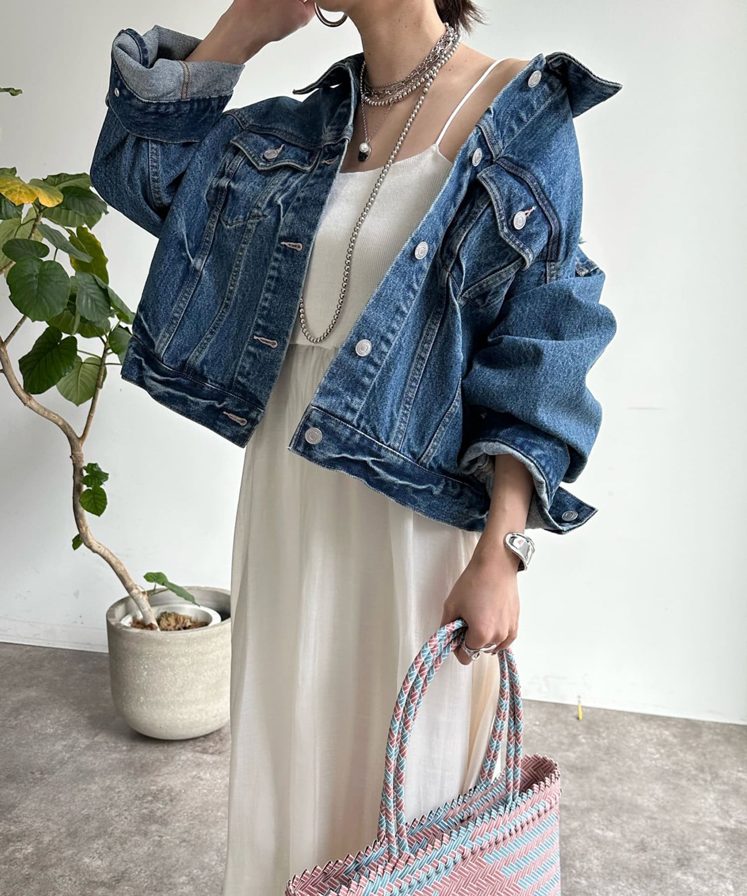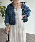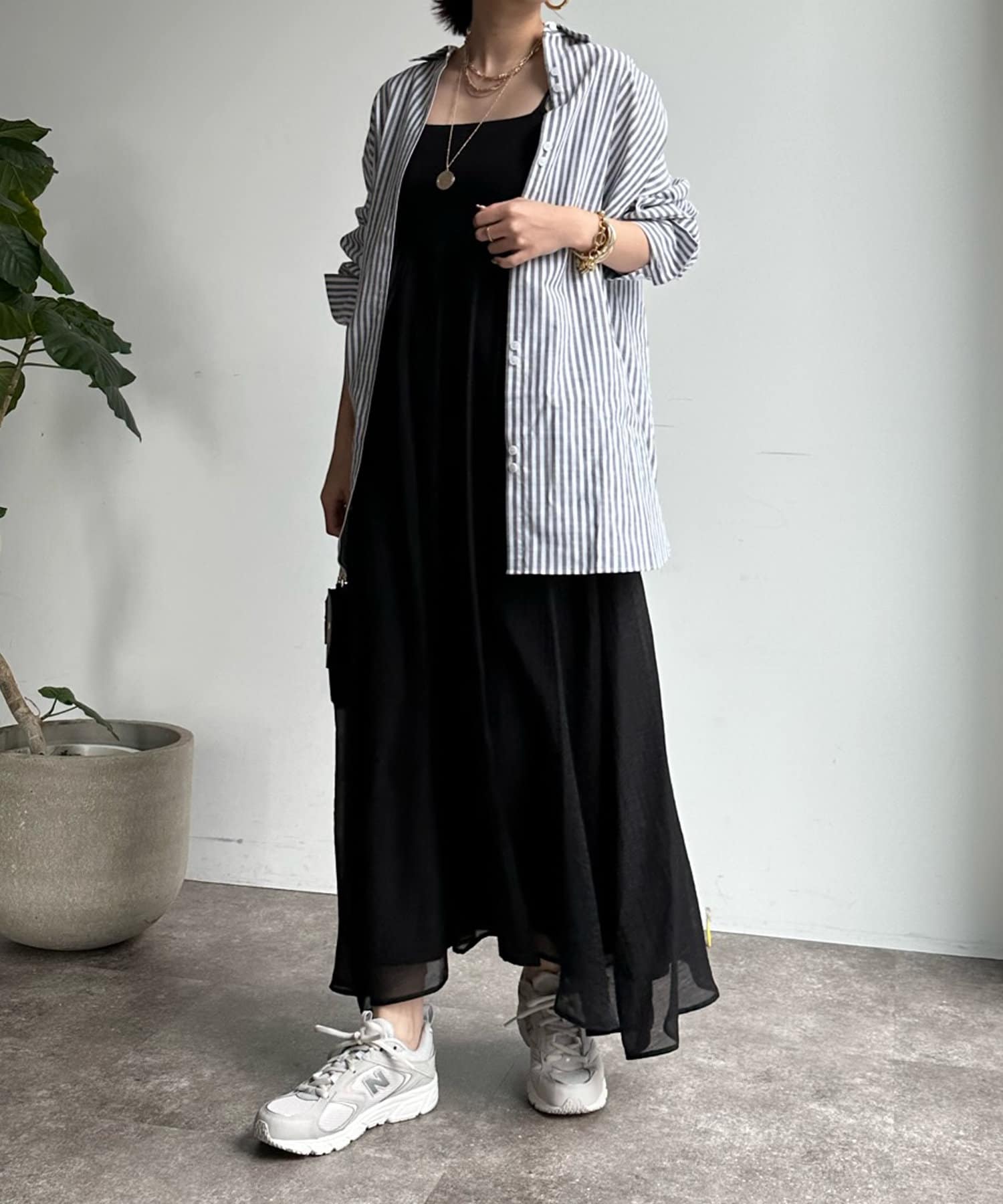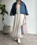 インナーのペチコートはボタンで取り外し可能なため、デニムなどをレイヤードして敢えて透け感を楽しむスタイルもおすすめですよ。
