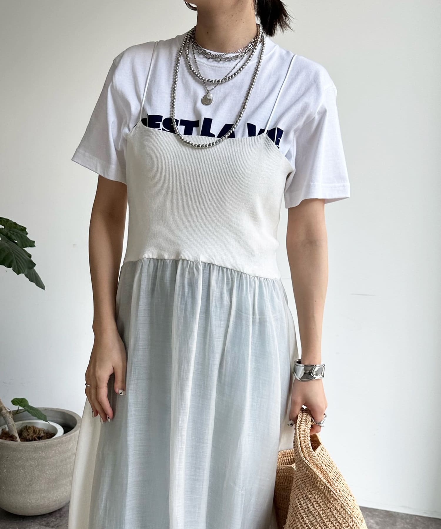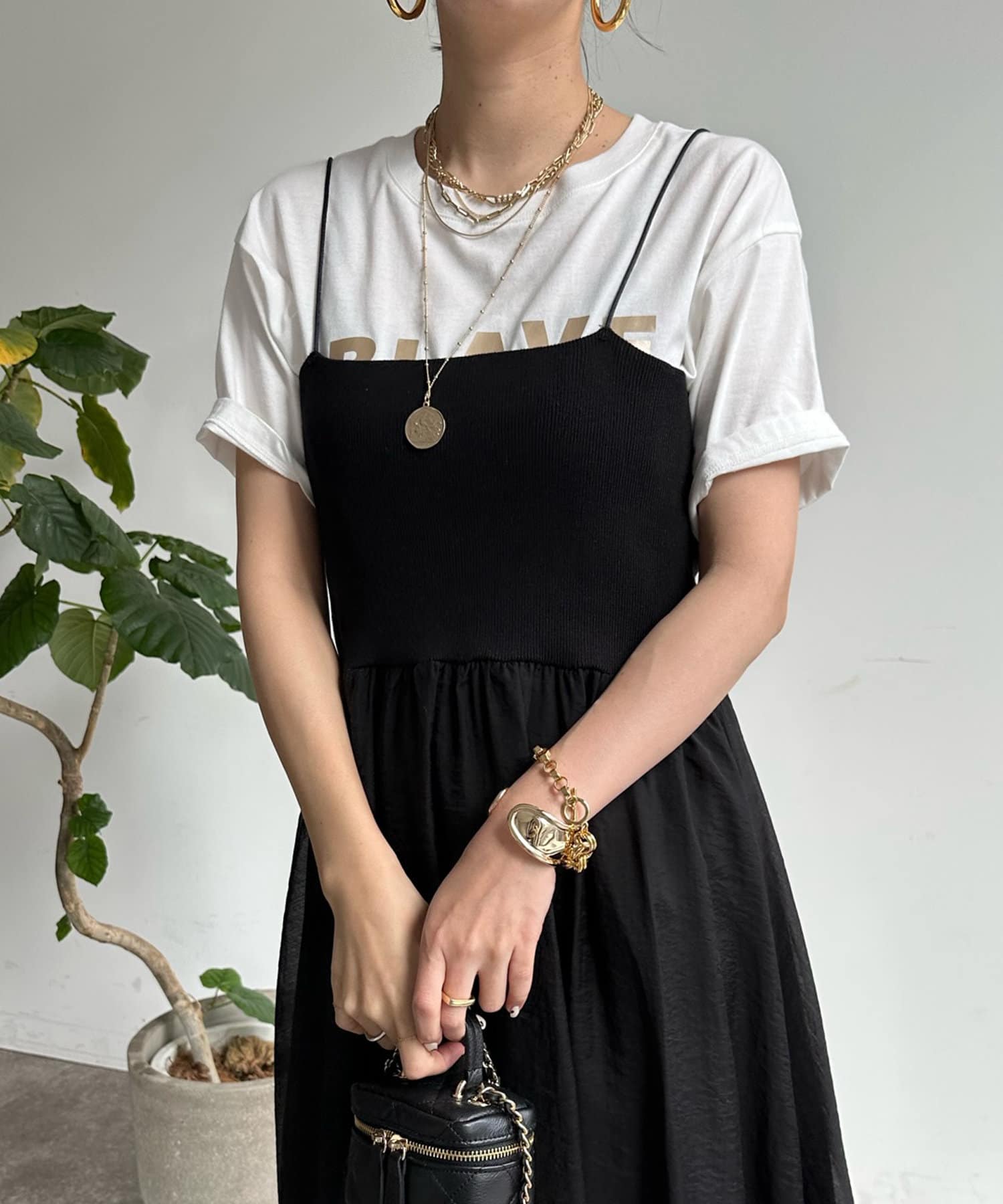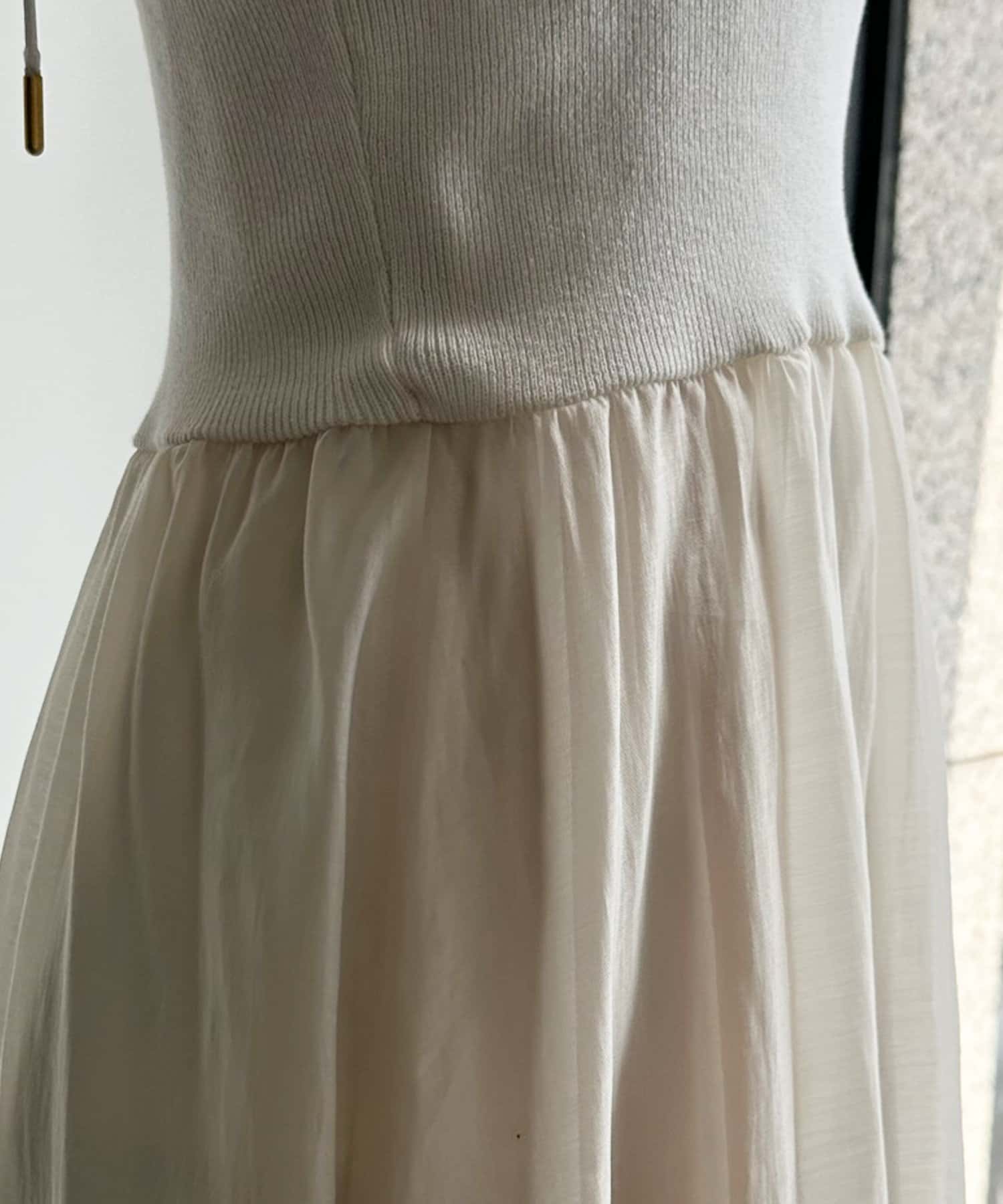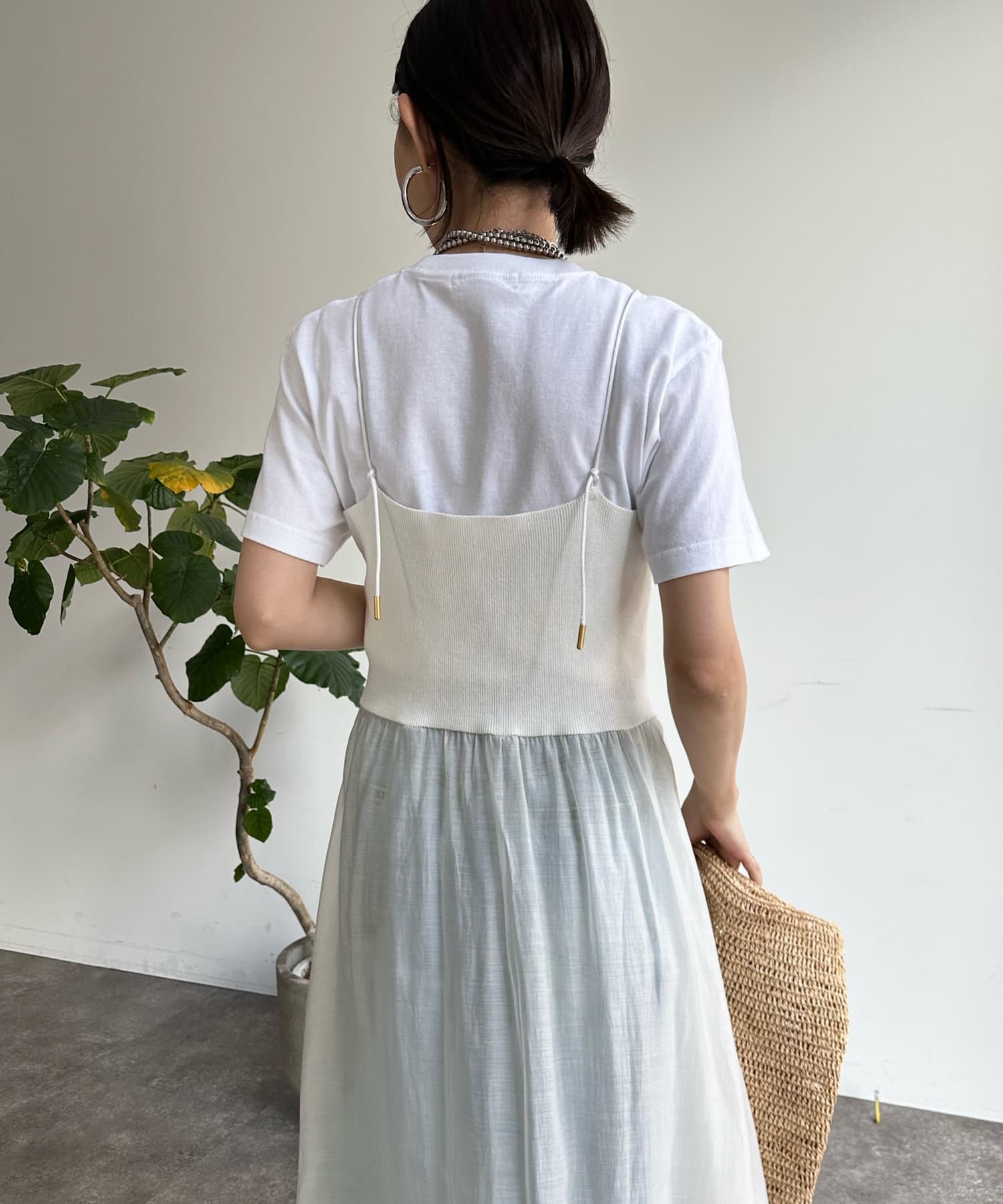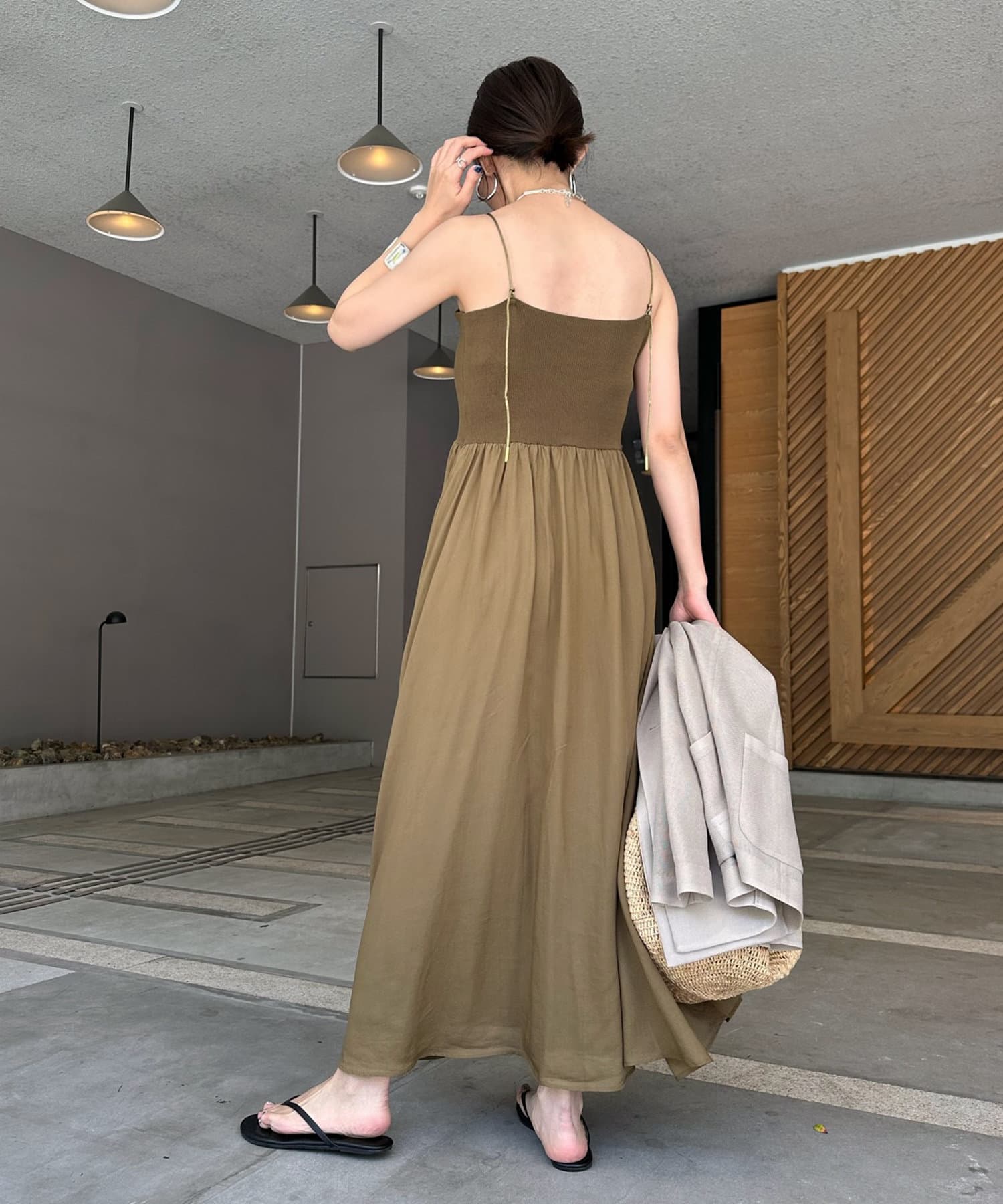 素材の切り替えデザインがポイントのキャミソールワンピース。