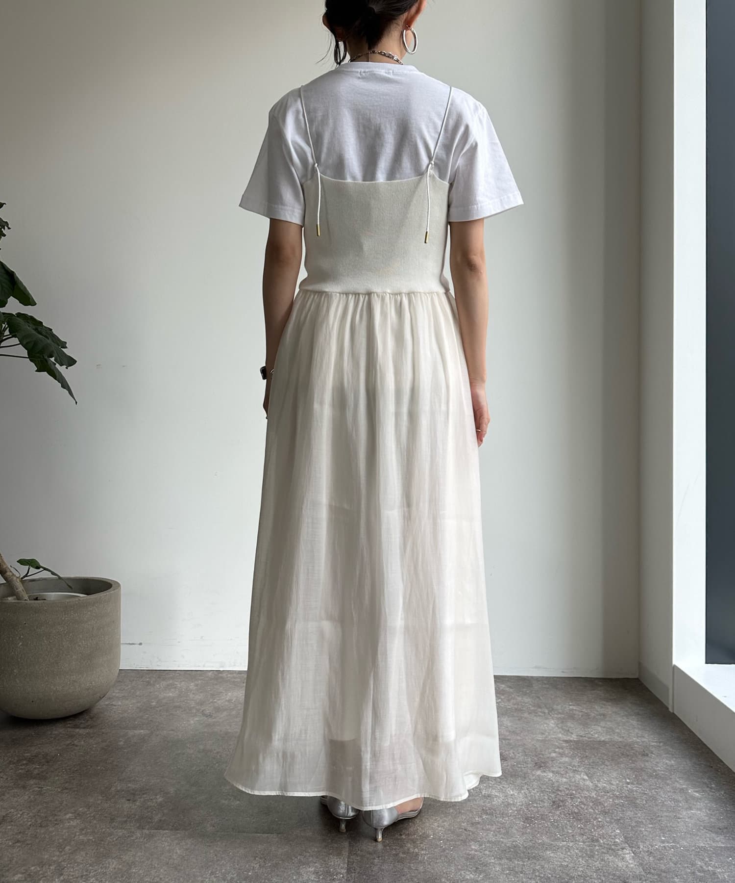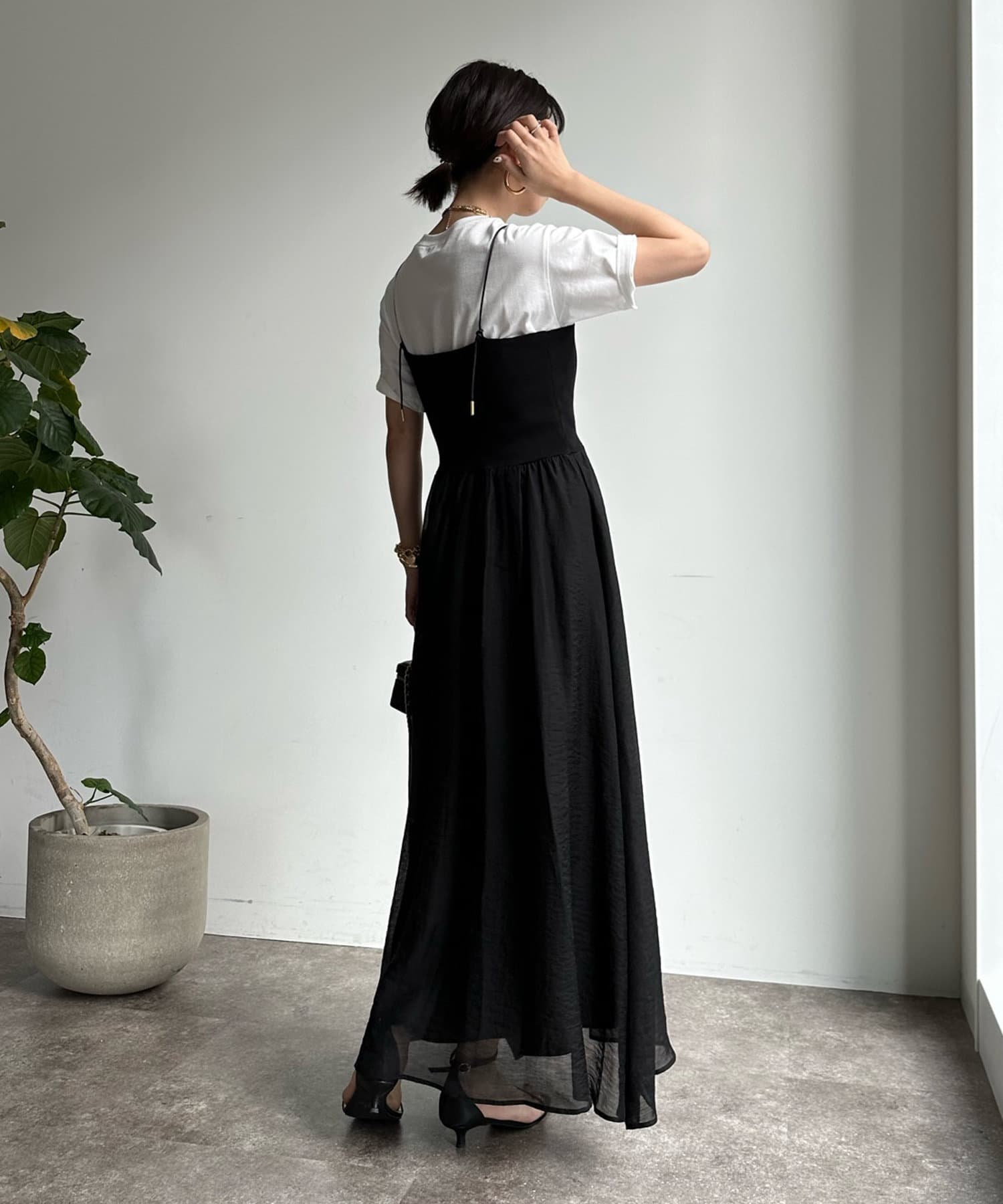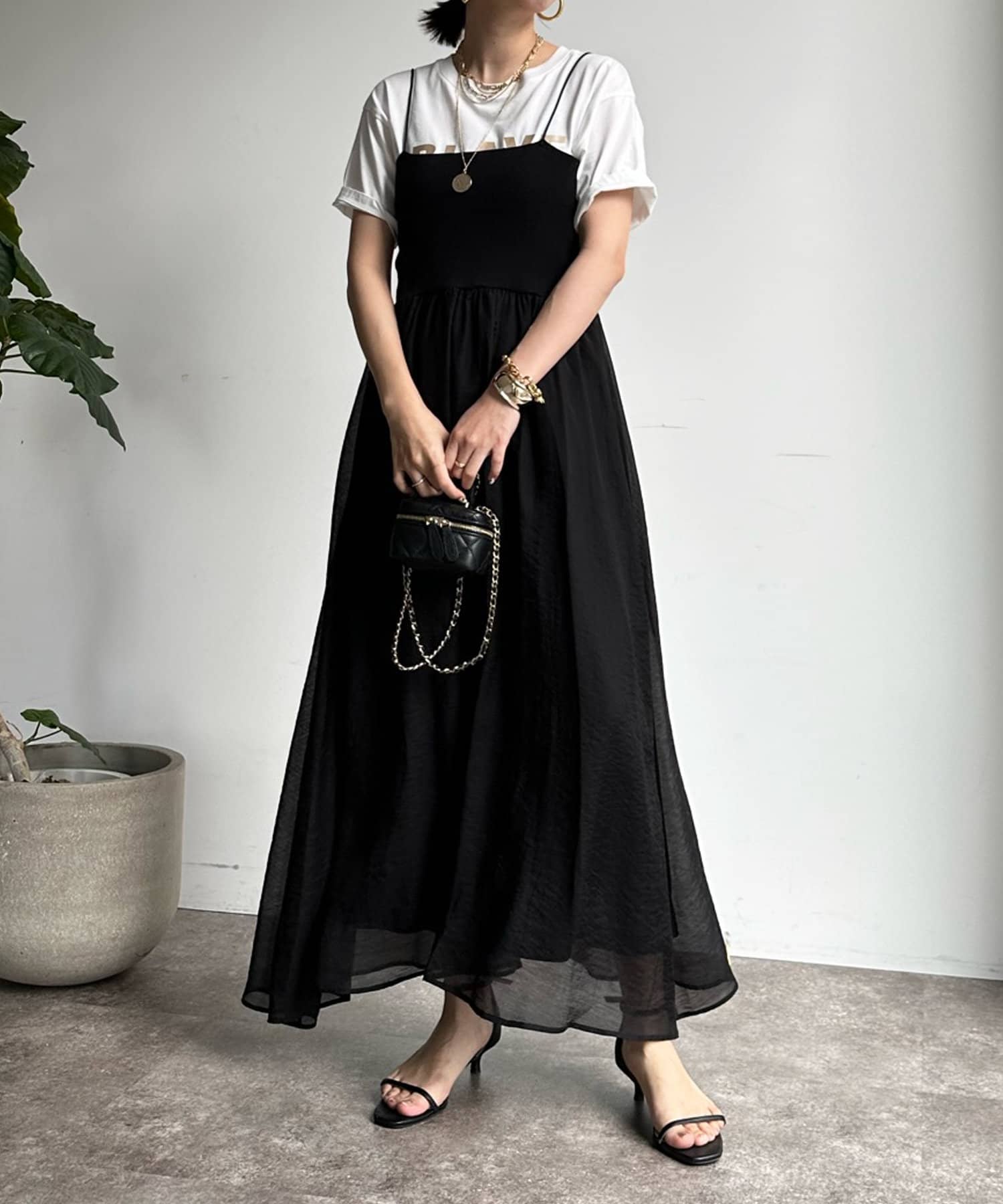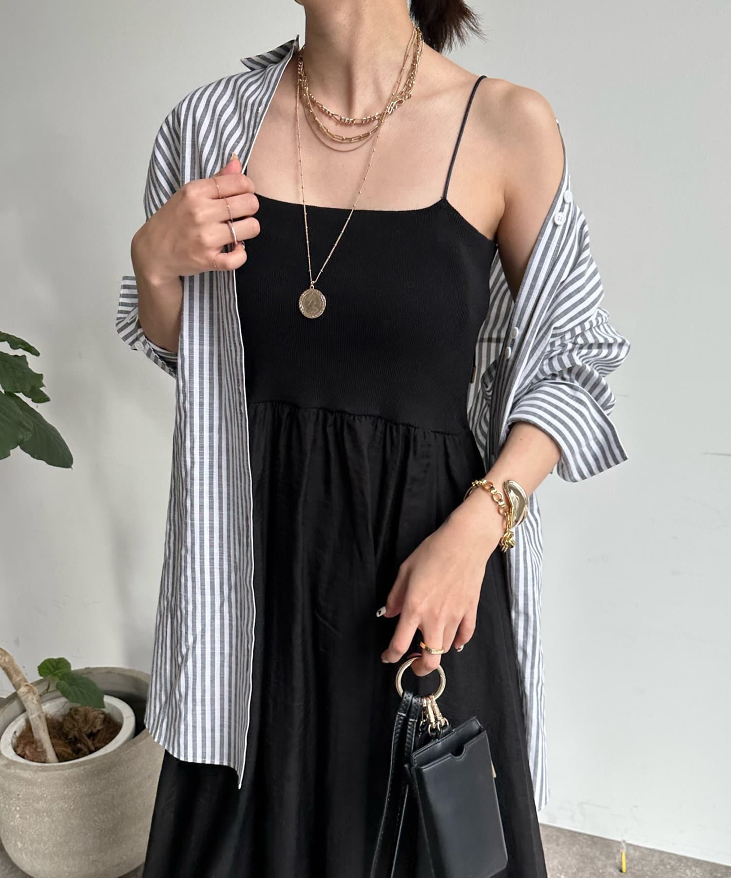 素材の切り替えデザインがポイントのキャミソールワンピース。