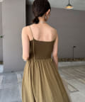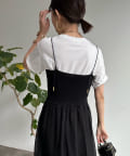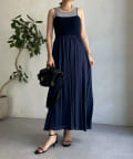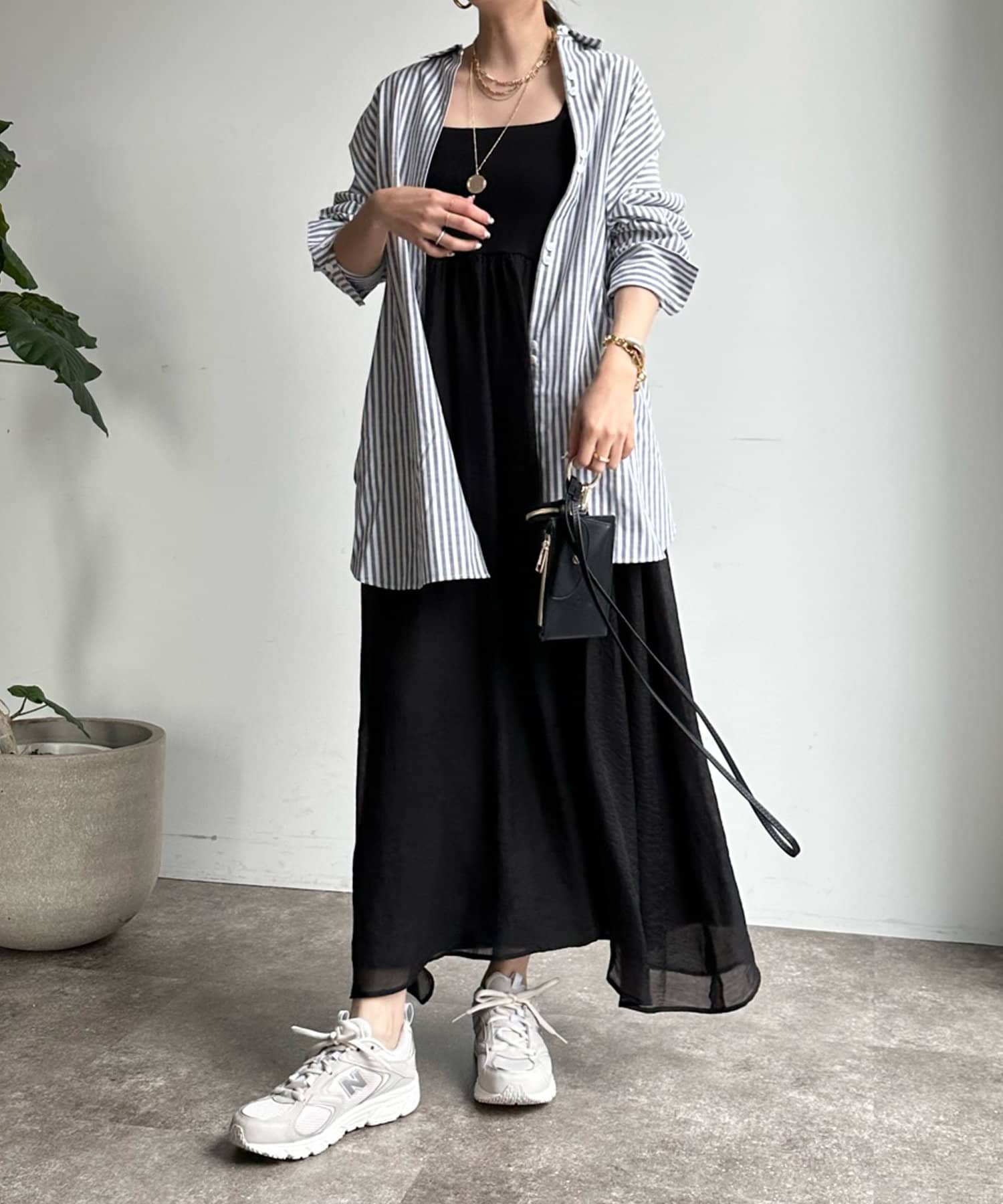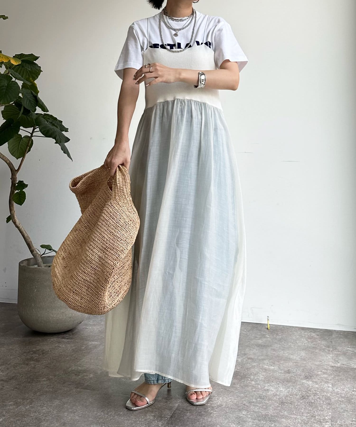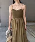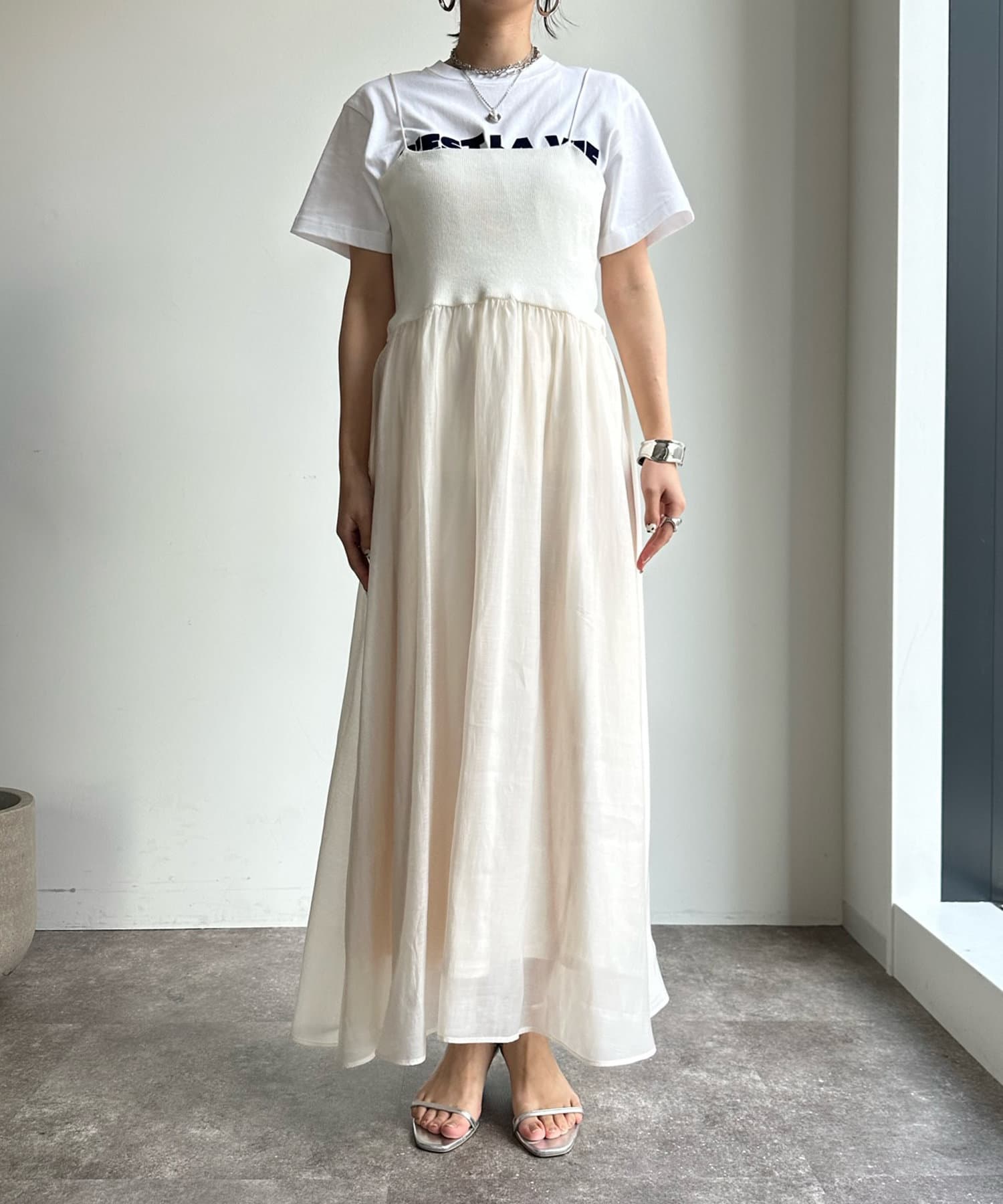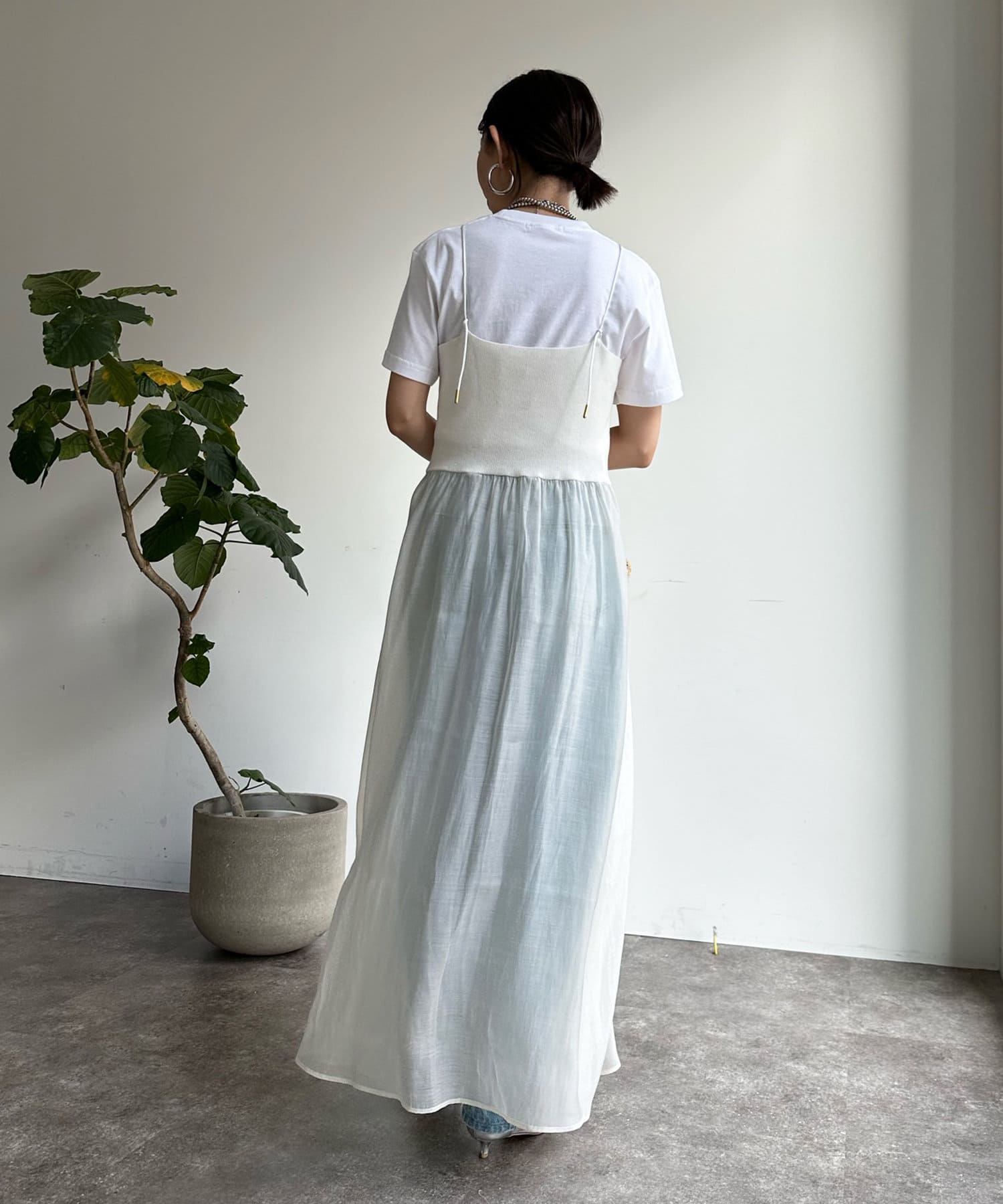 素材の切り替えデザインがポイントのキャミソールワンピース。