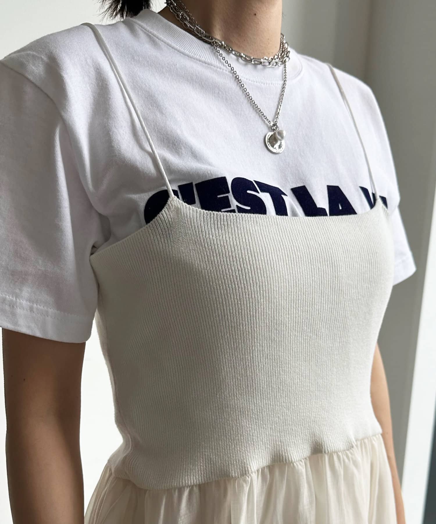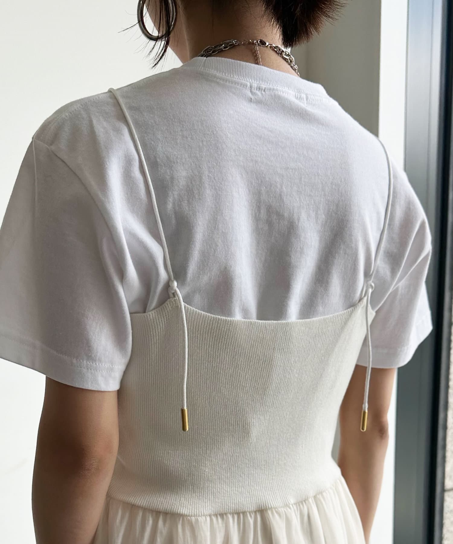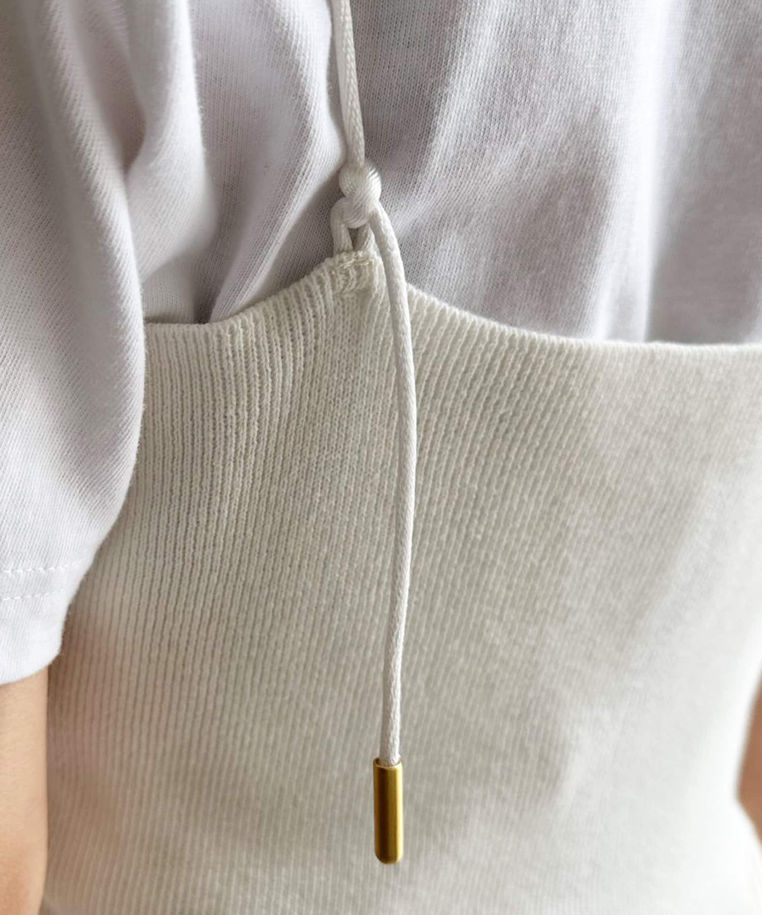 伸縮性抜群のニット部分に、華奢な肩紐をプラス。結ぶ長さ次第で自由に長さ調節が可能です。