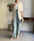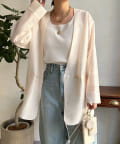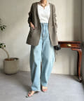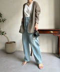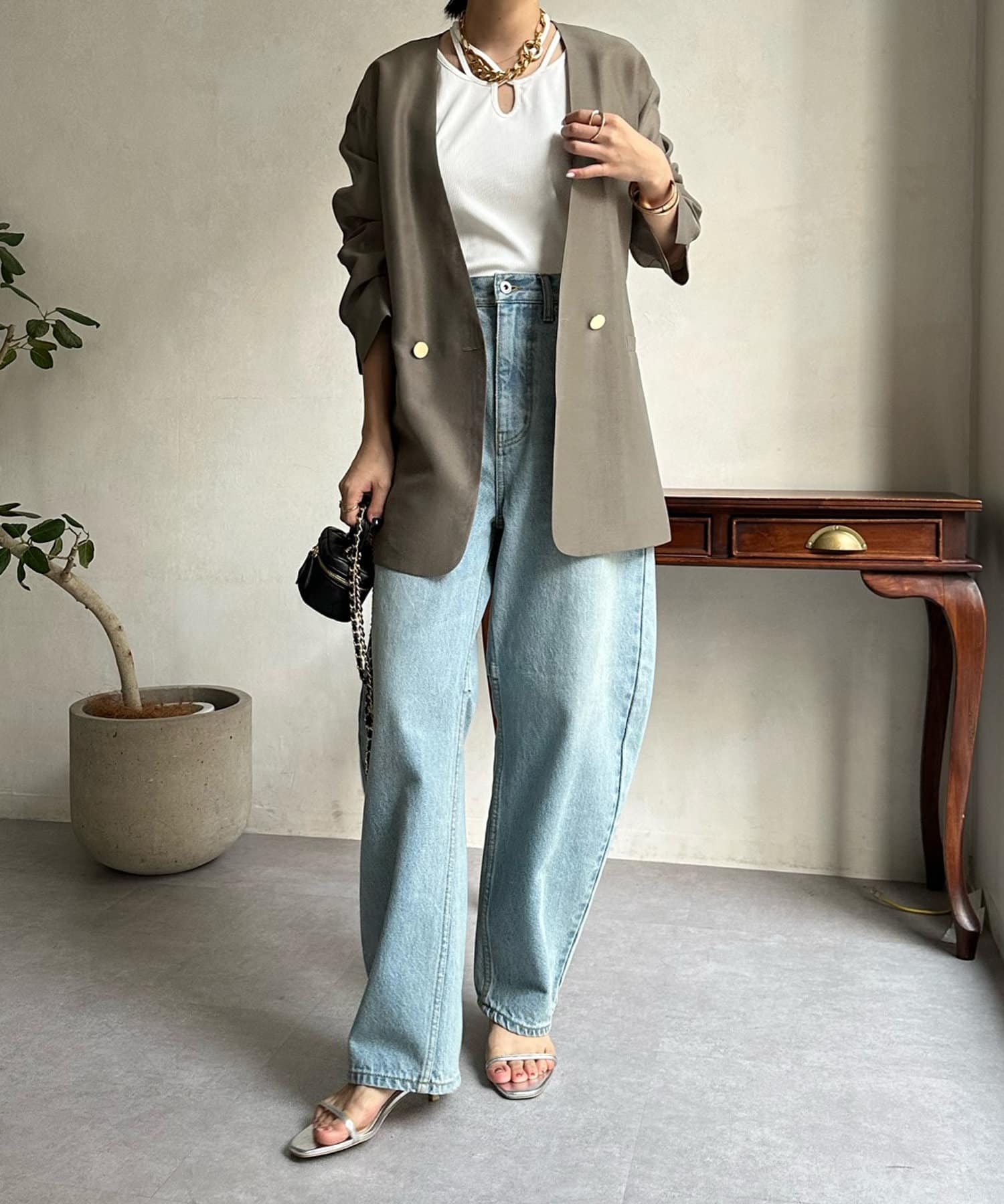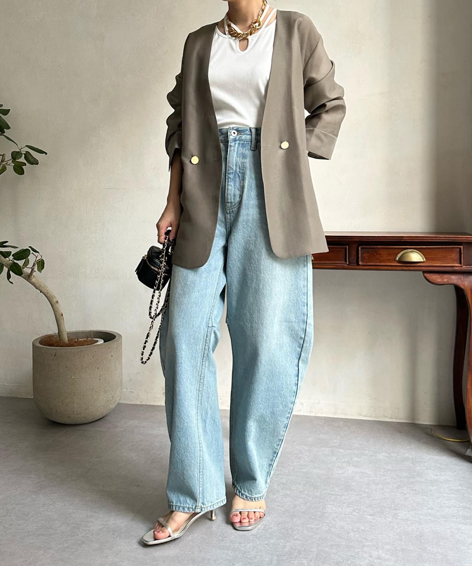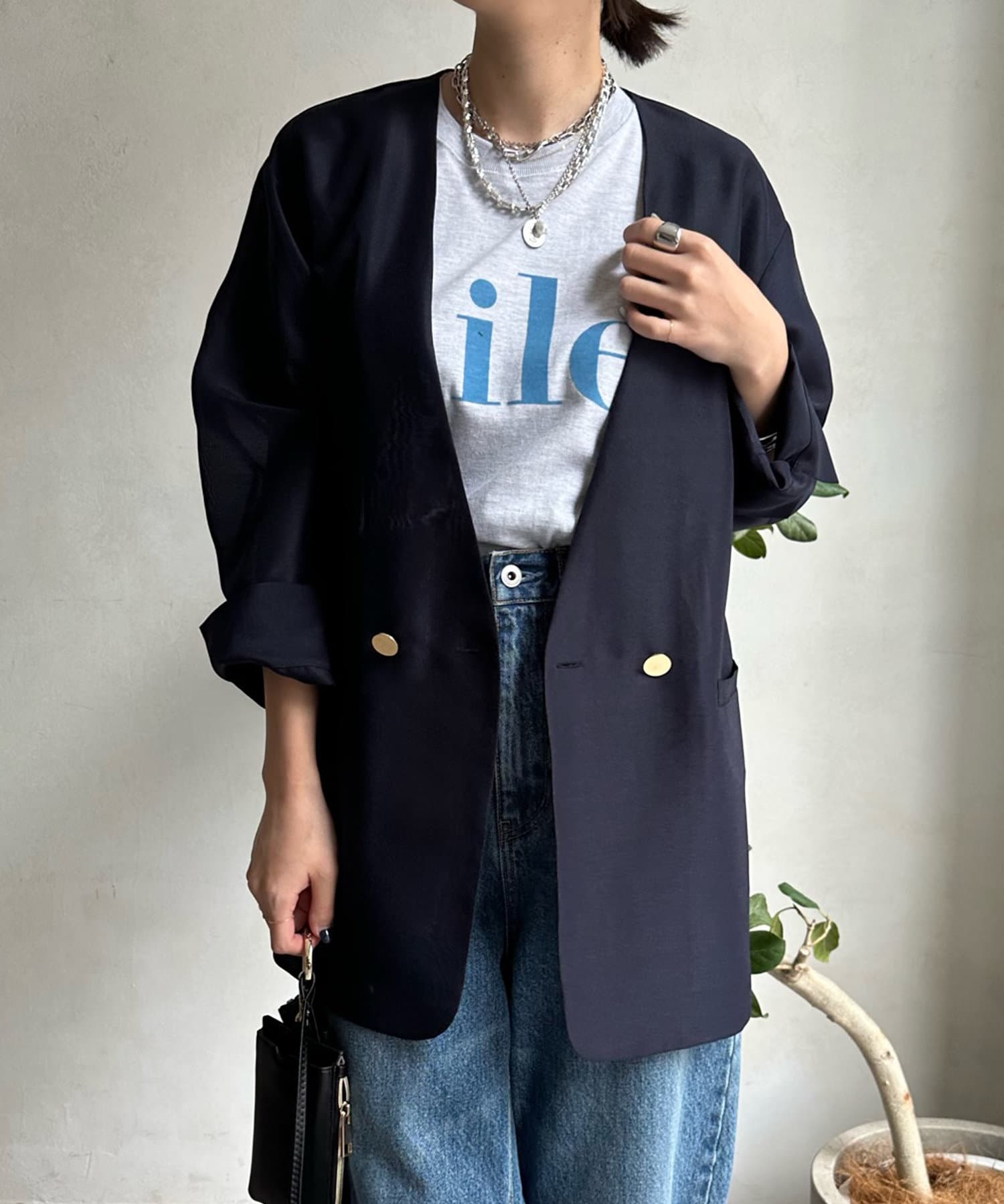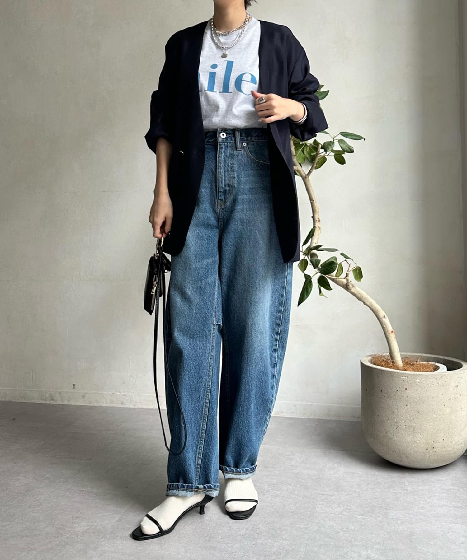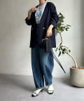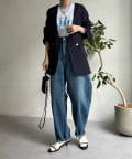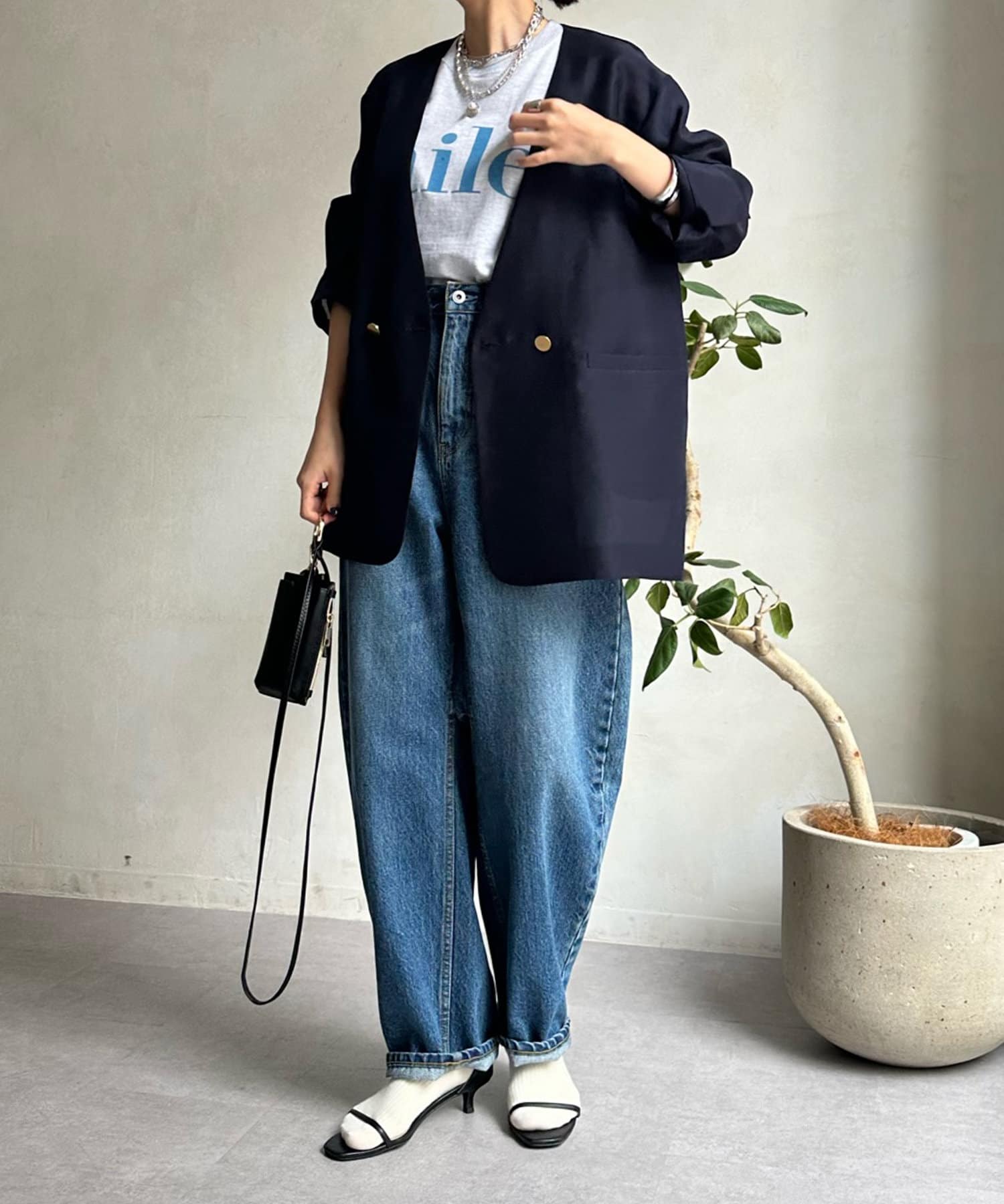 キャミワンピなど女性らしいアイテムとのスタイリングや、ロゴTを覗かせてカジュアルに...などきちんと感のあるディティールだからこそ幅広いスタイリングにマッチしてくれます。