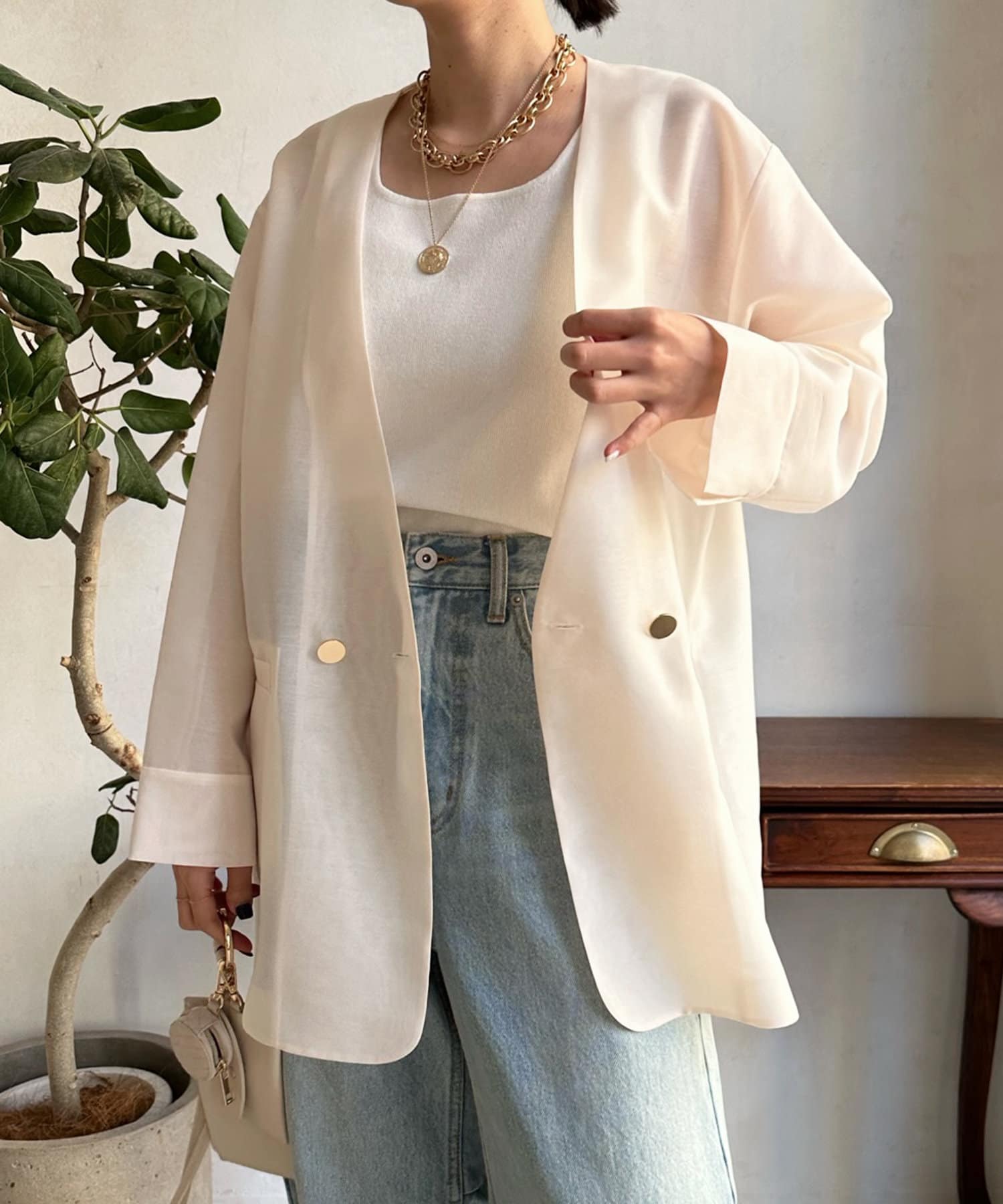 【待望の再入荷!】ノーカラーオーガンジージャケット