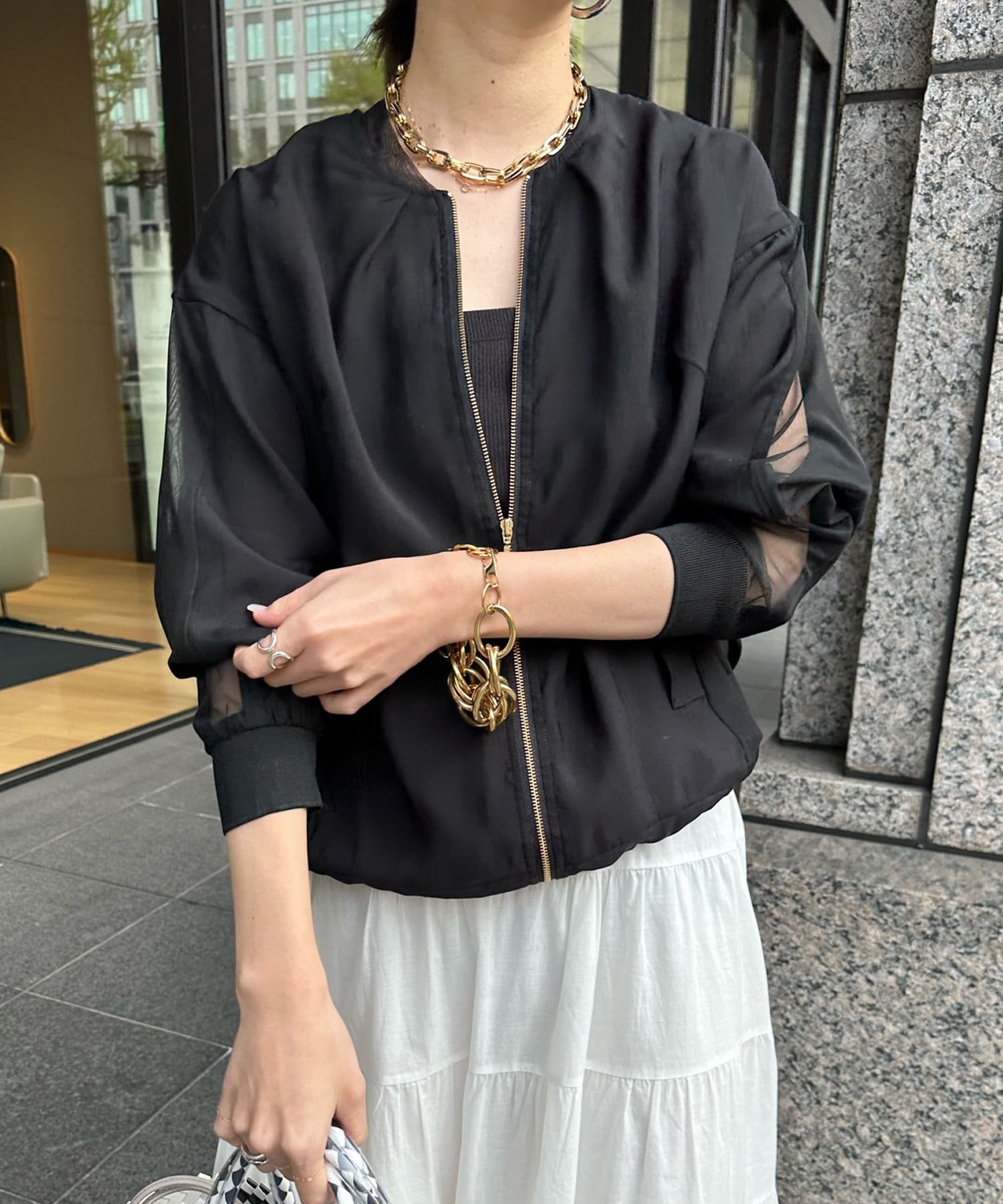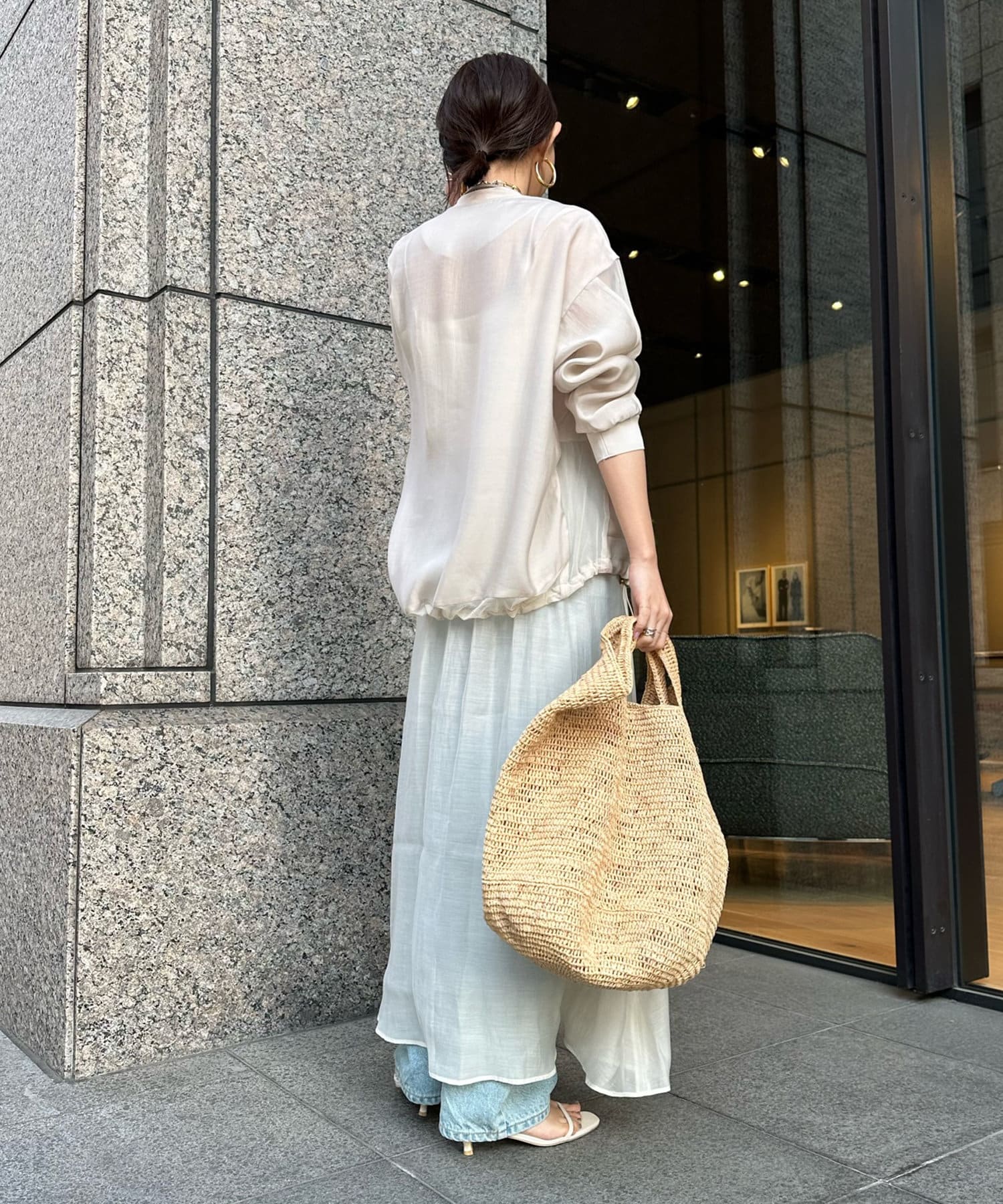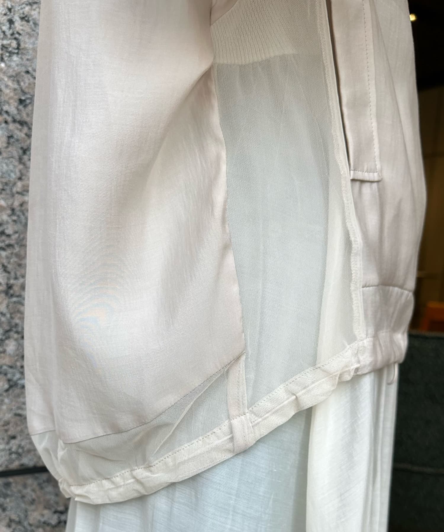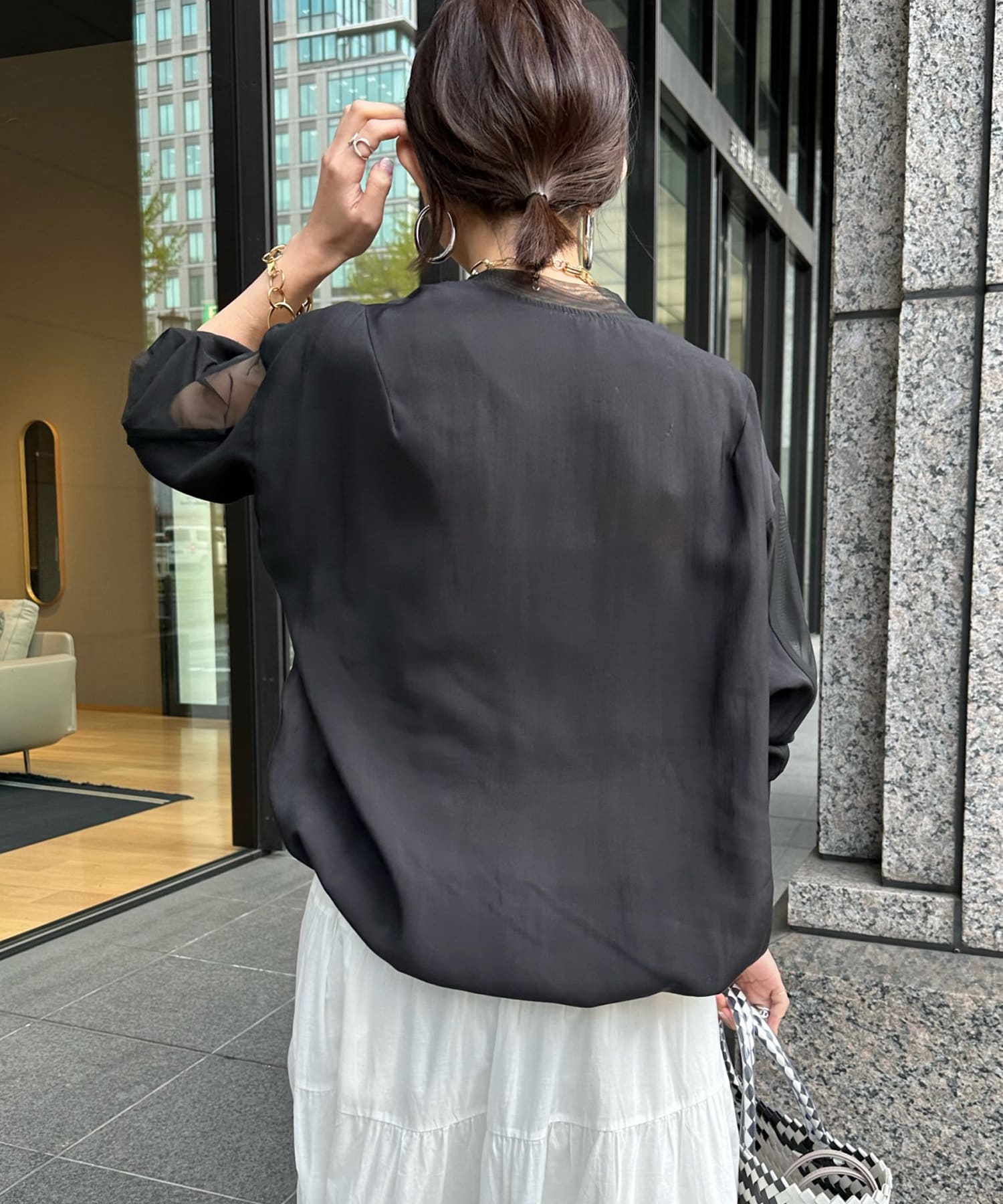 お袖部分や後ろ裾などをシアー素材に切り替え、抜け感たっぷりの雰囲気です。