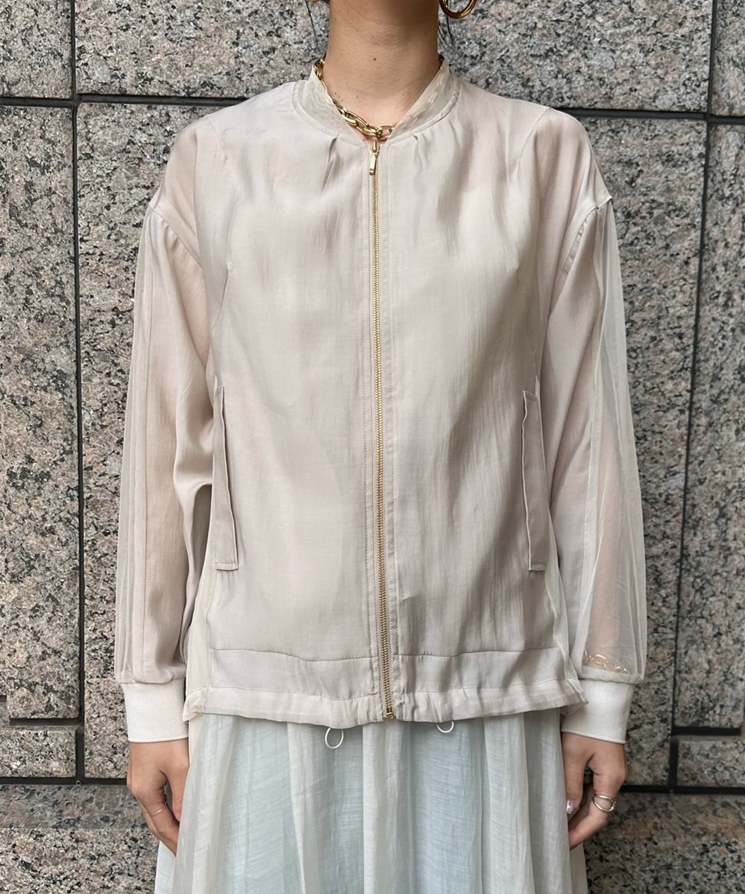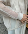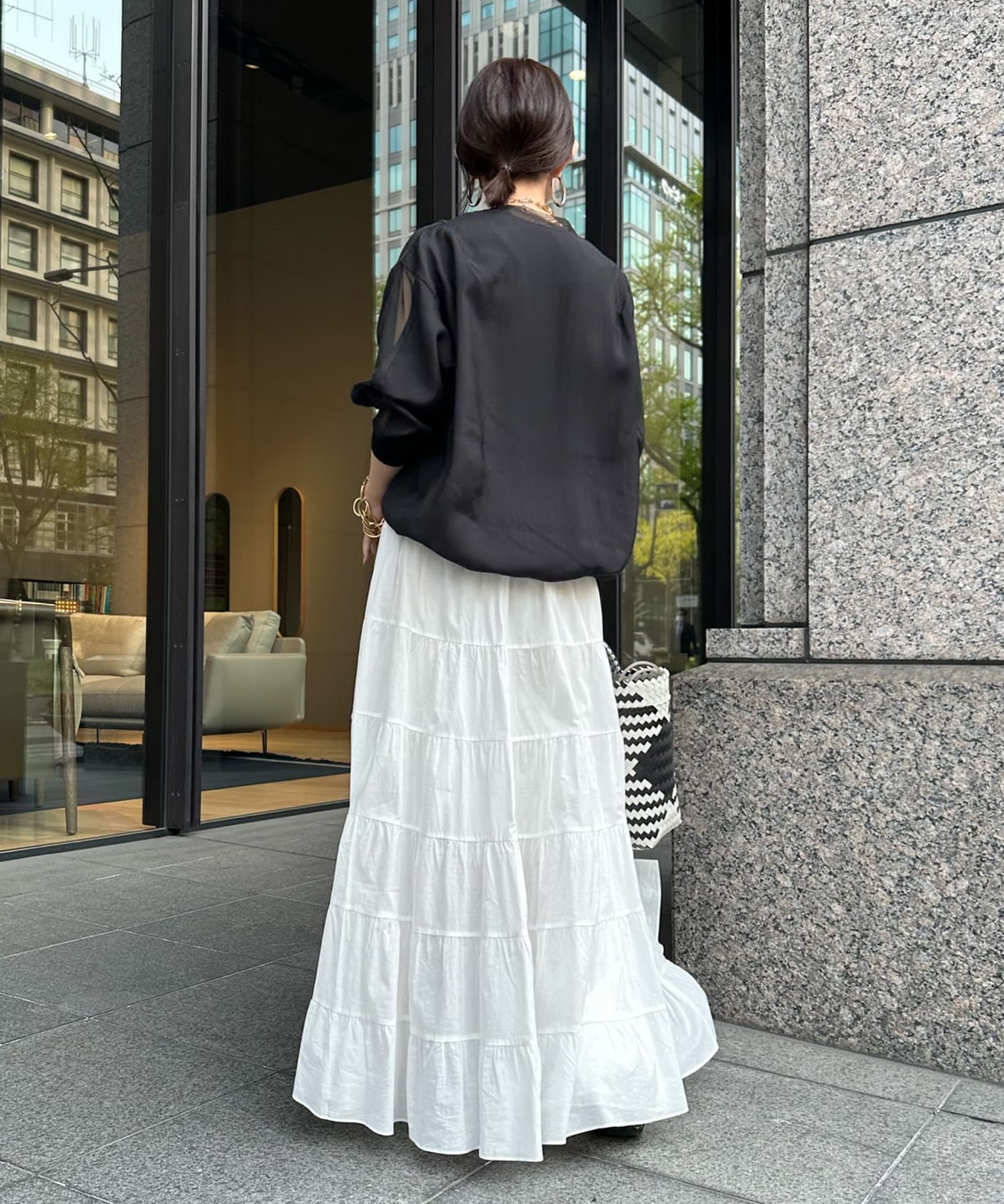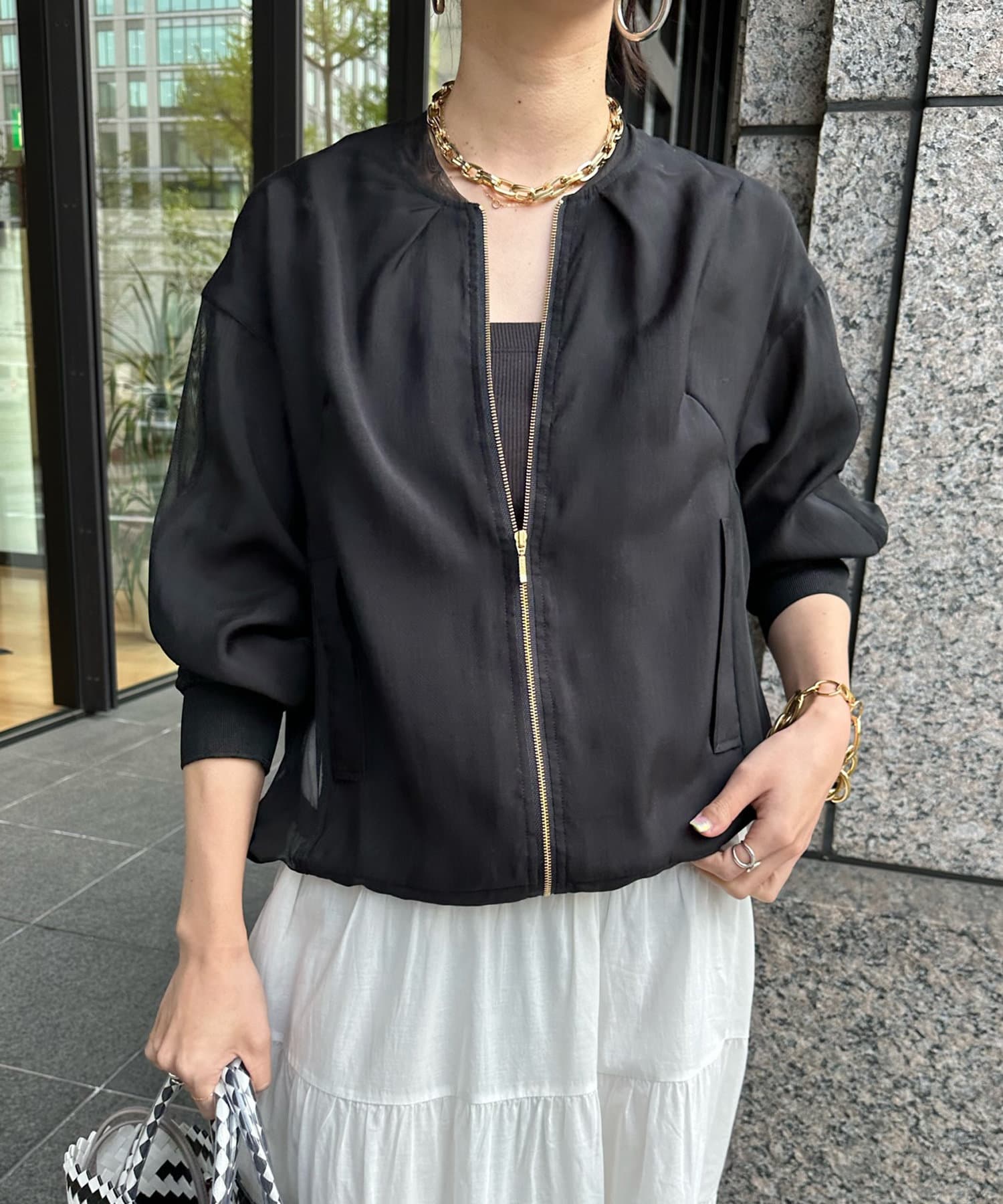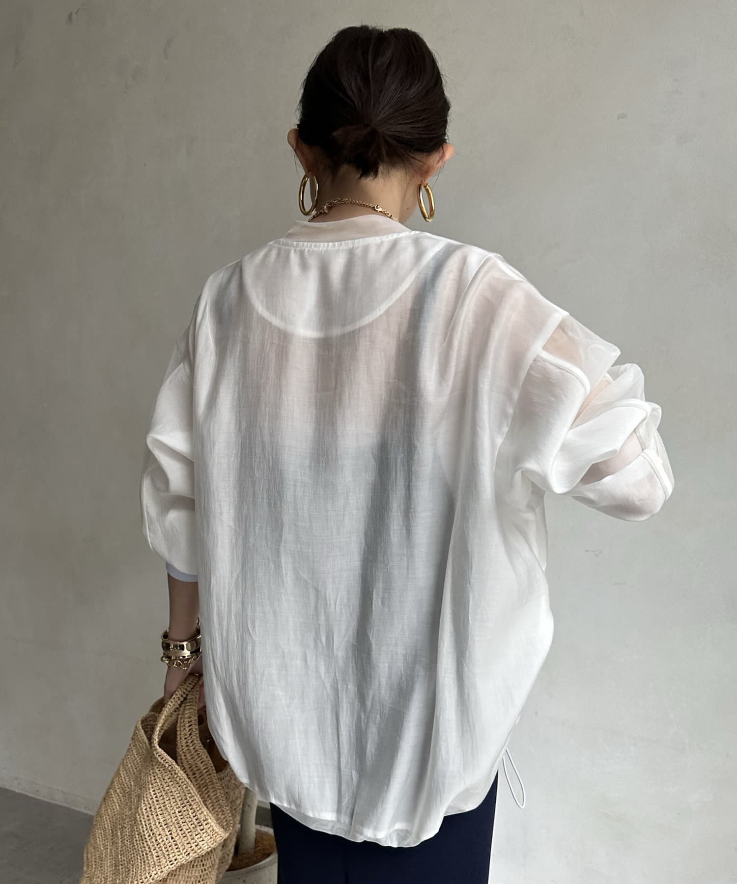 お袖部分や後ろ裾などをシアー素材に切り替え、抜け感たっぷりの雰囲気です。