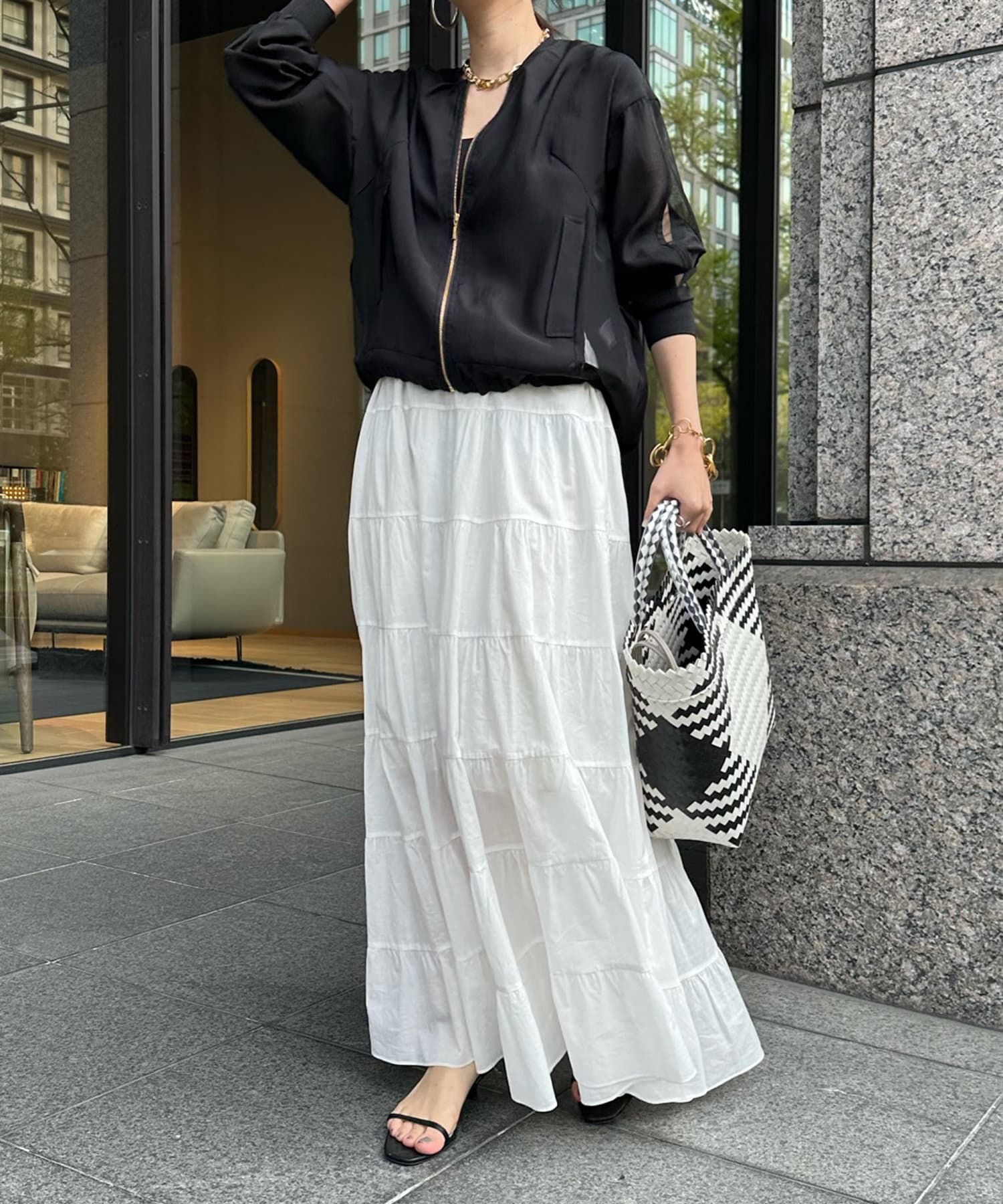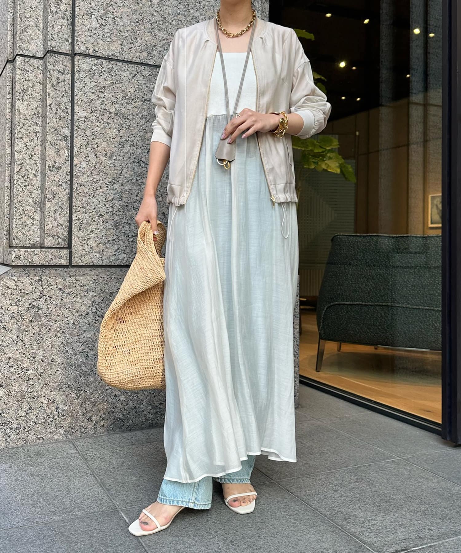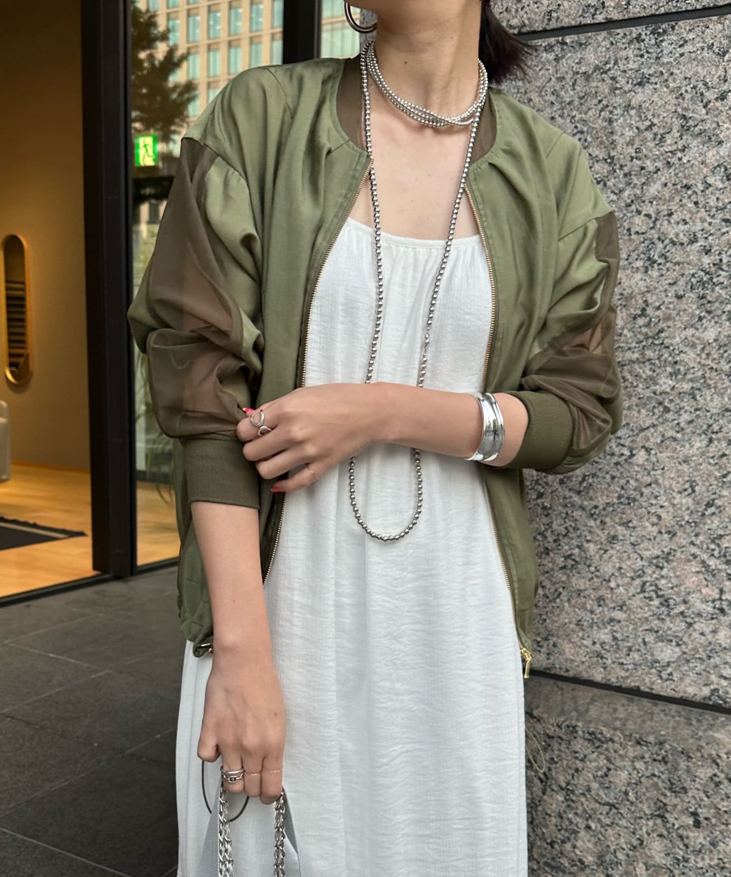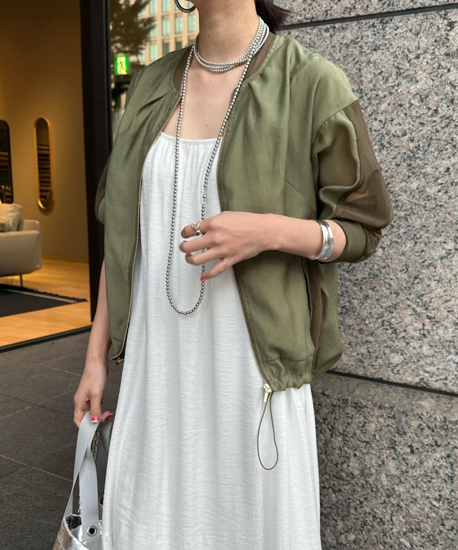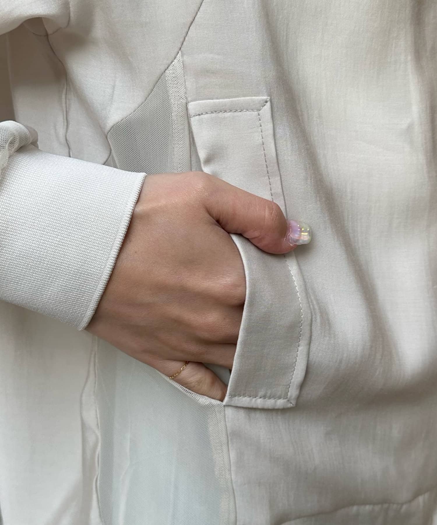 お袖部分や後ろ裾などをシアー素材に切り替え、抜け感たっぷりの雰囲気です。