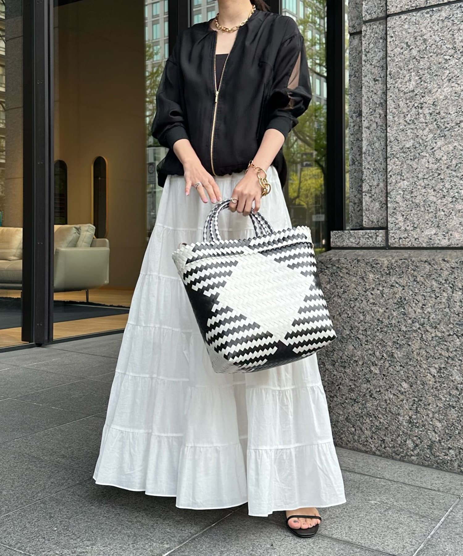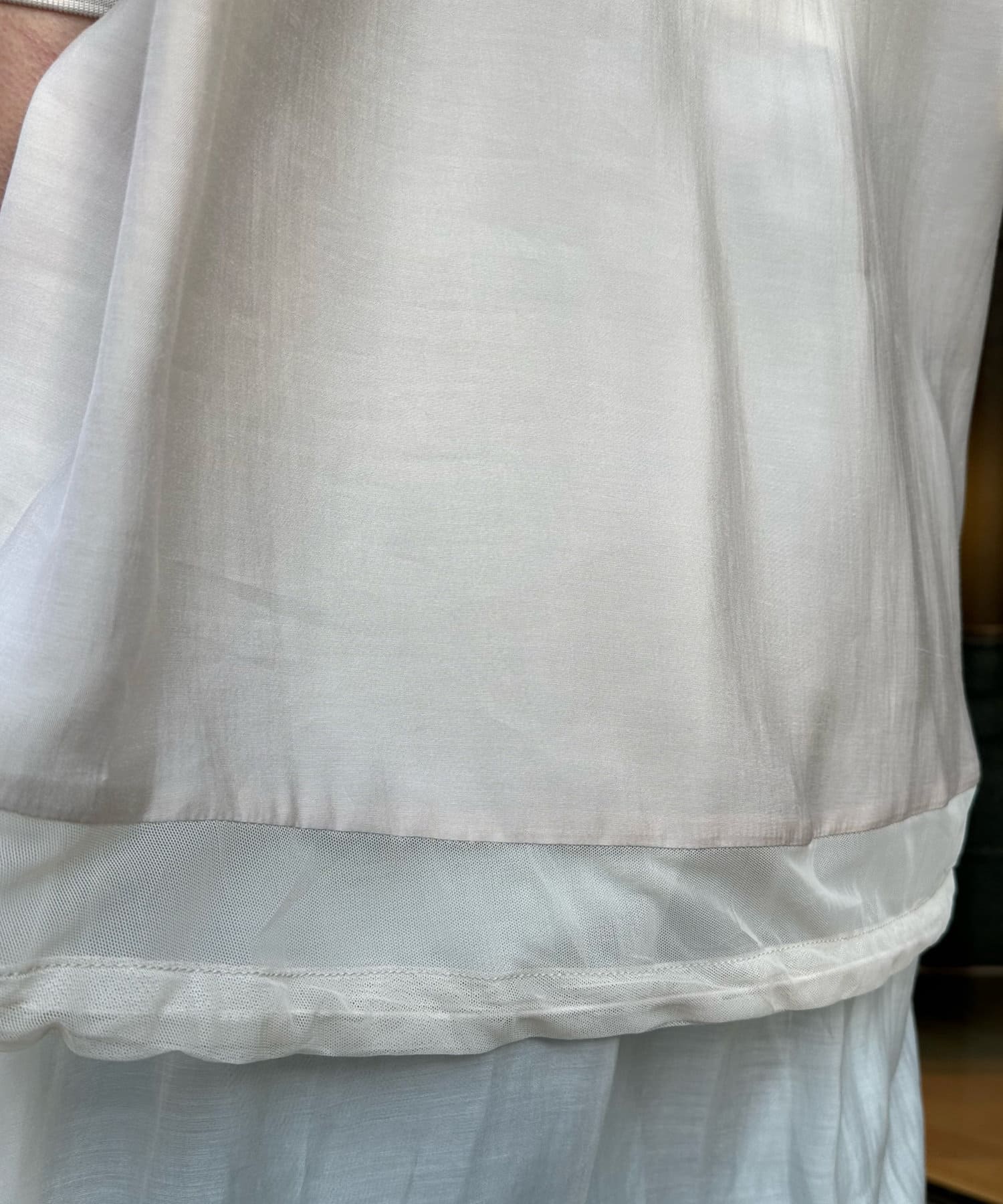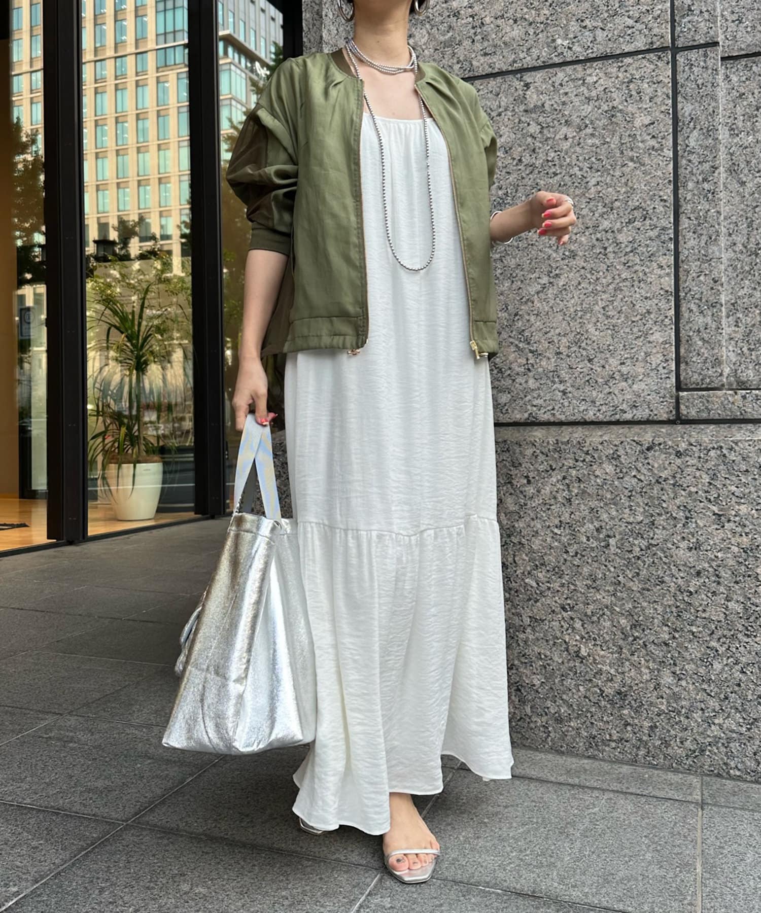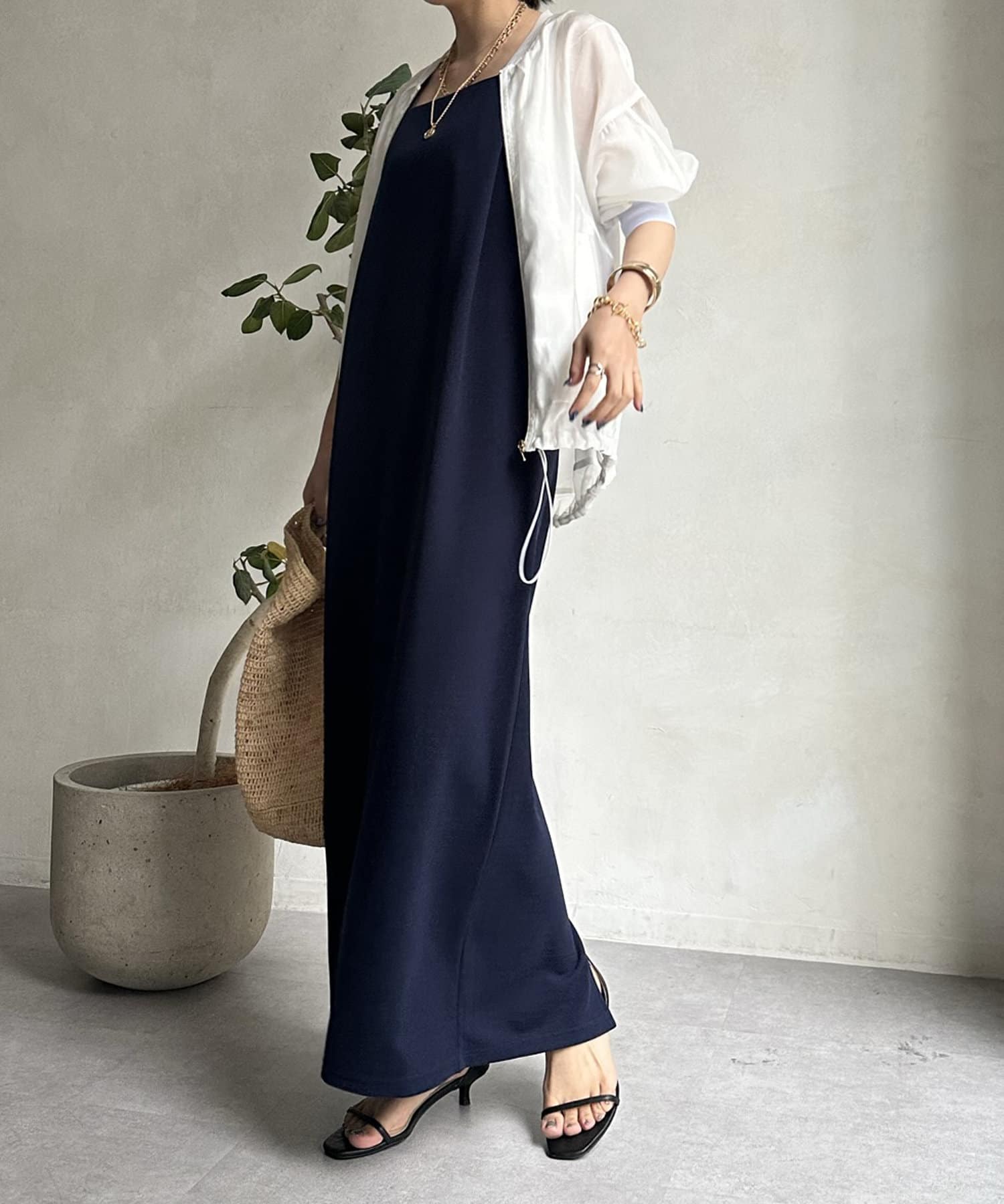 お袖部分や後ろ裾などをシアー素材に切り替え、抜け感たっぷりの雰囲気です。
