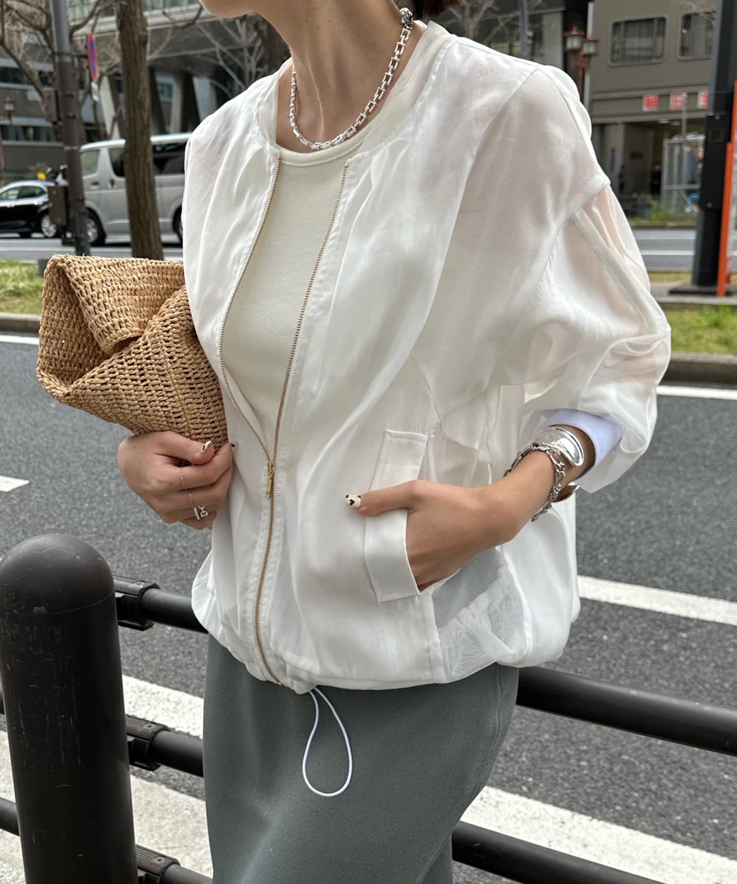 肩にはさりげなくタックを施し、ふんわりと立体感の出るシルエットを演出。羽織るだけで着映えるアイテムになってくれます。