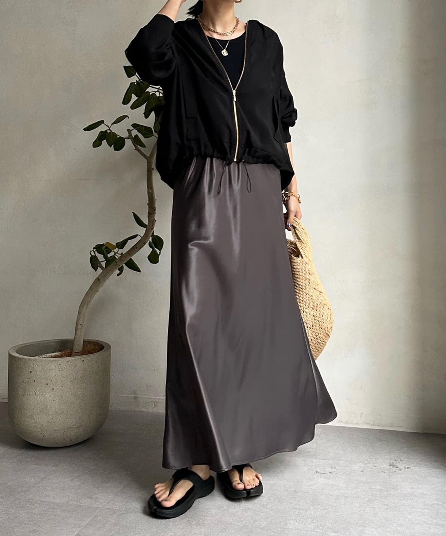 また、裾をドロストコードで絞ってシルエットを変えられるのもうれしいポイント。