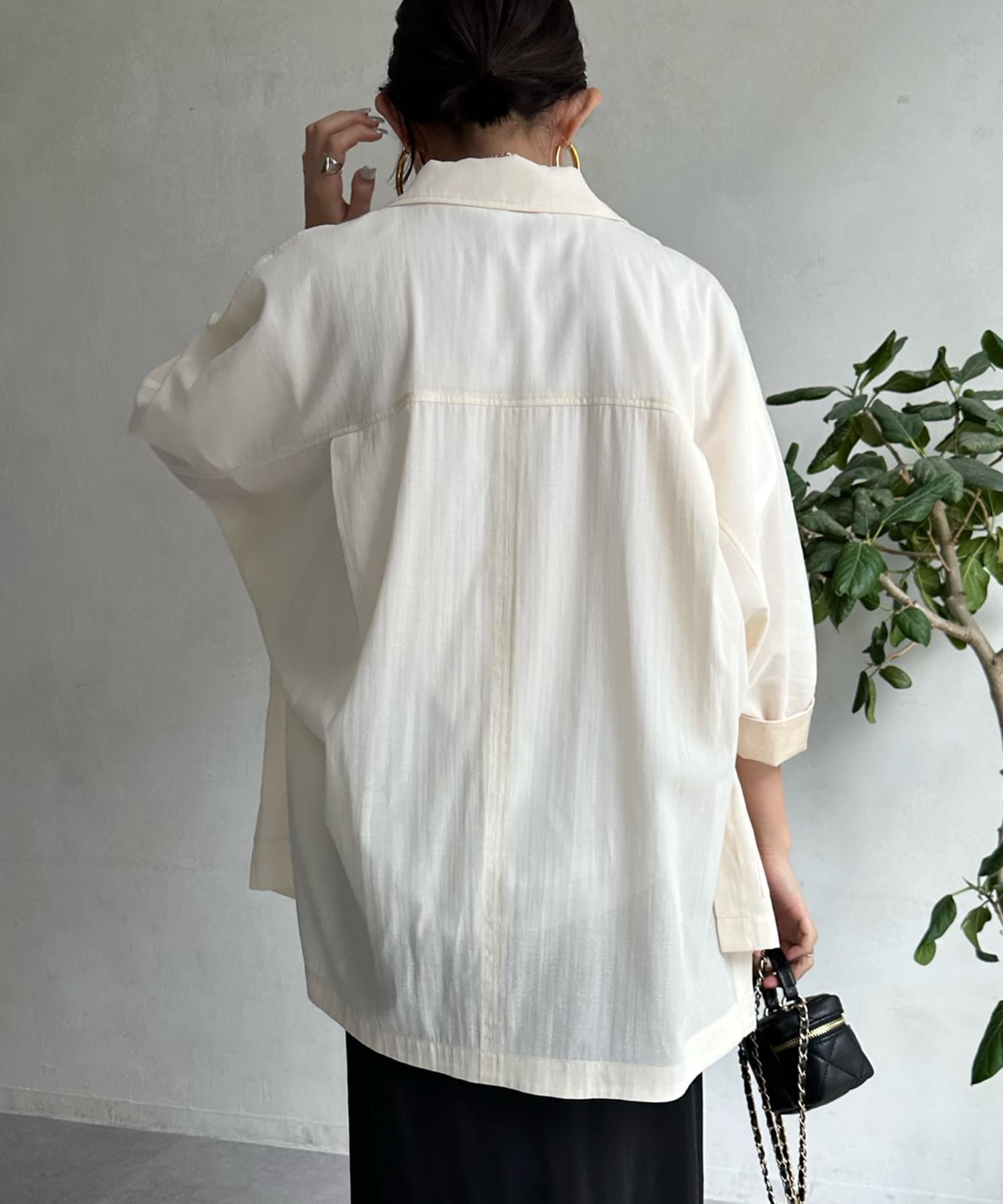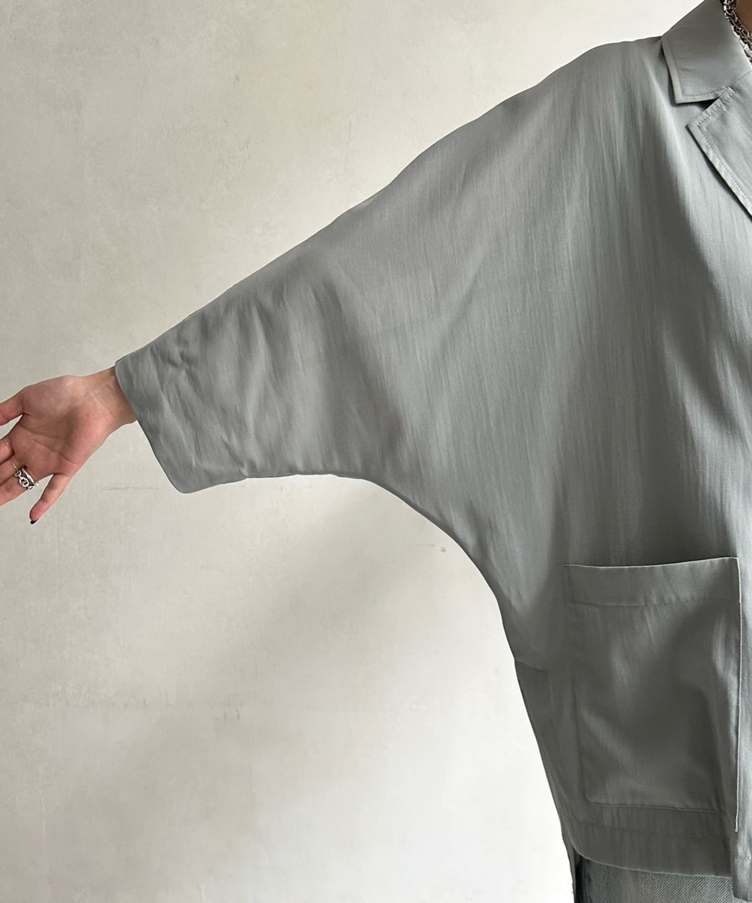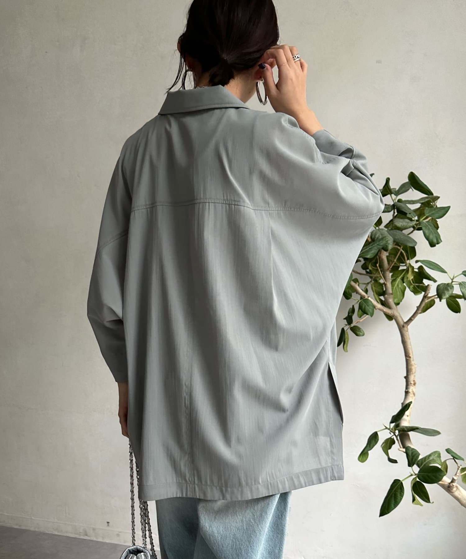透けすぎない、品のあるシアー感が大人らしさを演出。そして、お袖のドルマンシルエットで抜け感をプラスしました。
