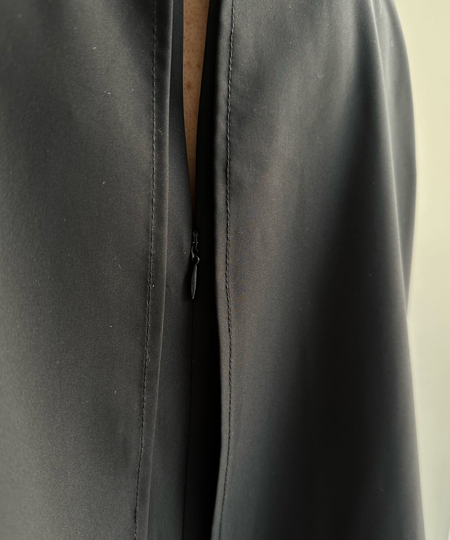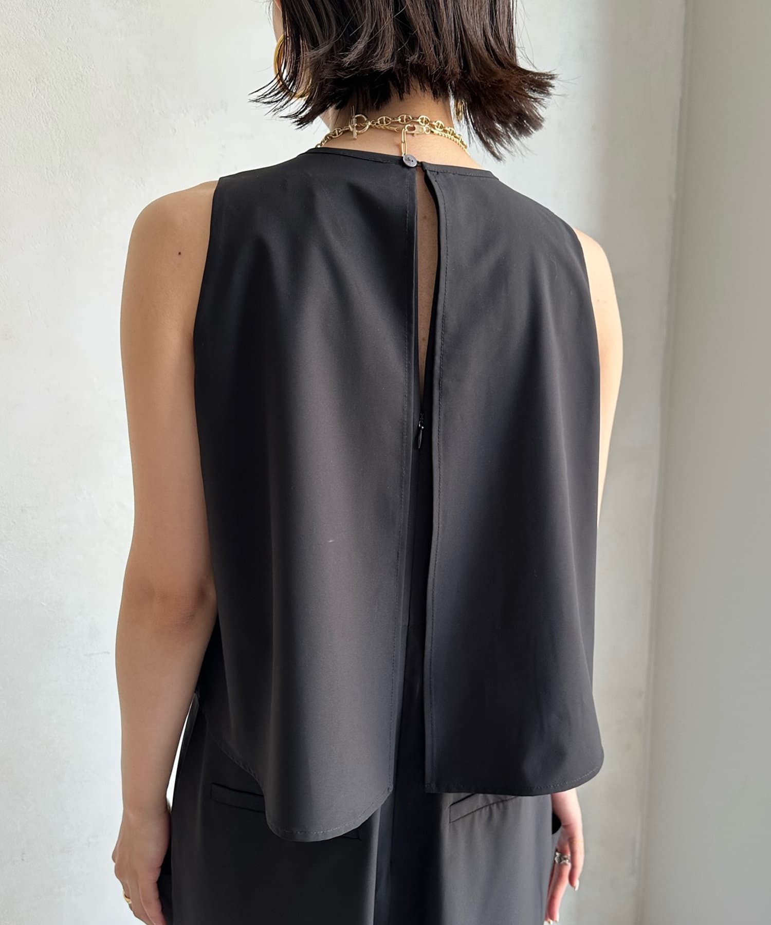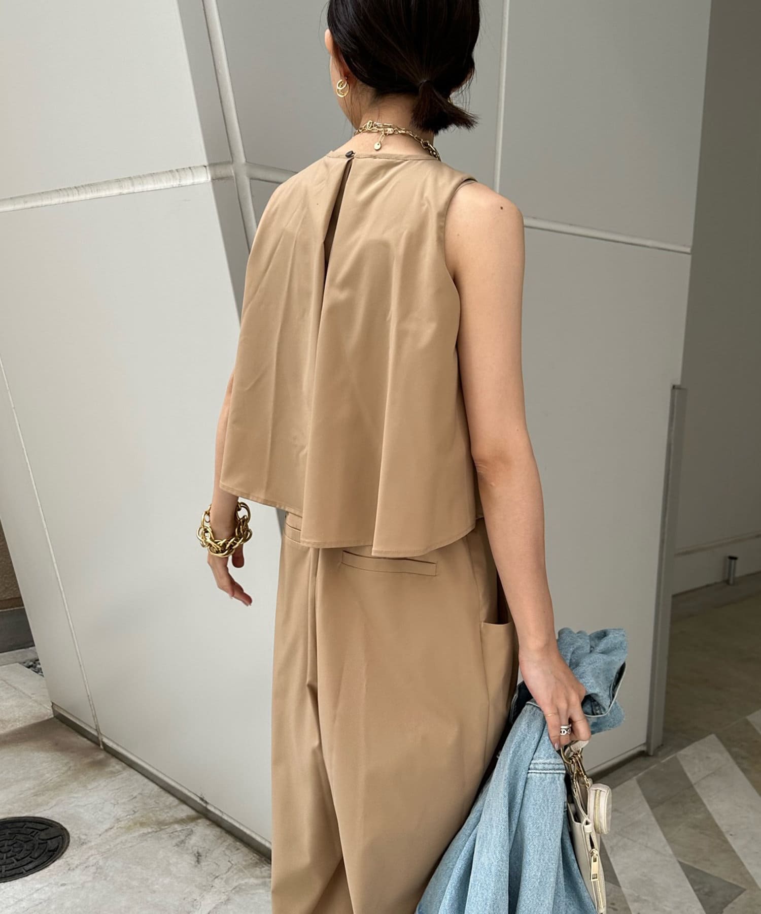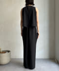 とろみのある素材感に、後ろはドレープが効いたエレガントなシルエットが上品な印象に!