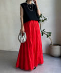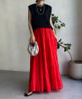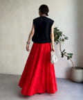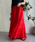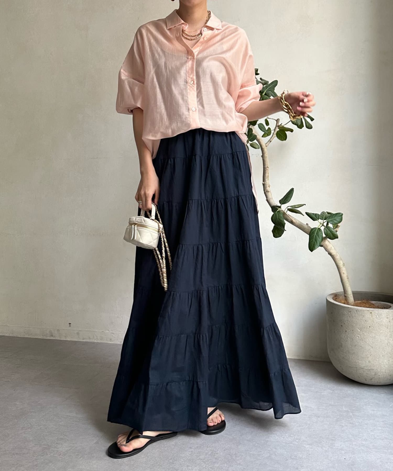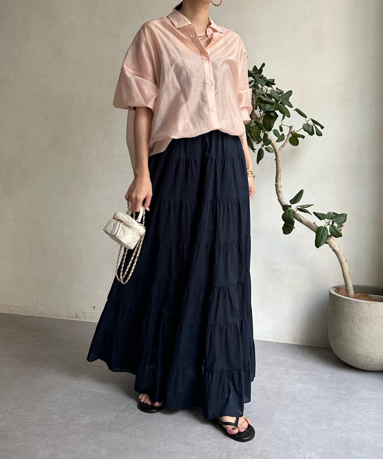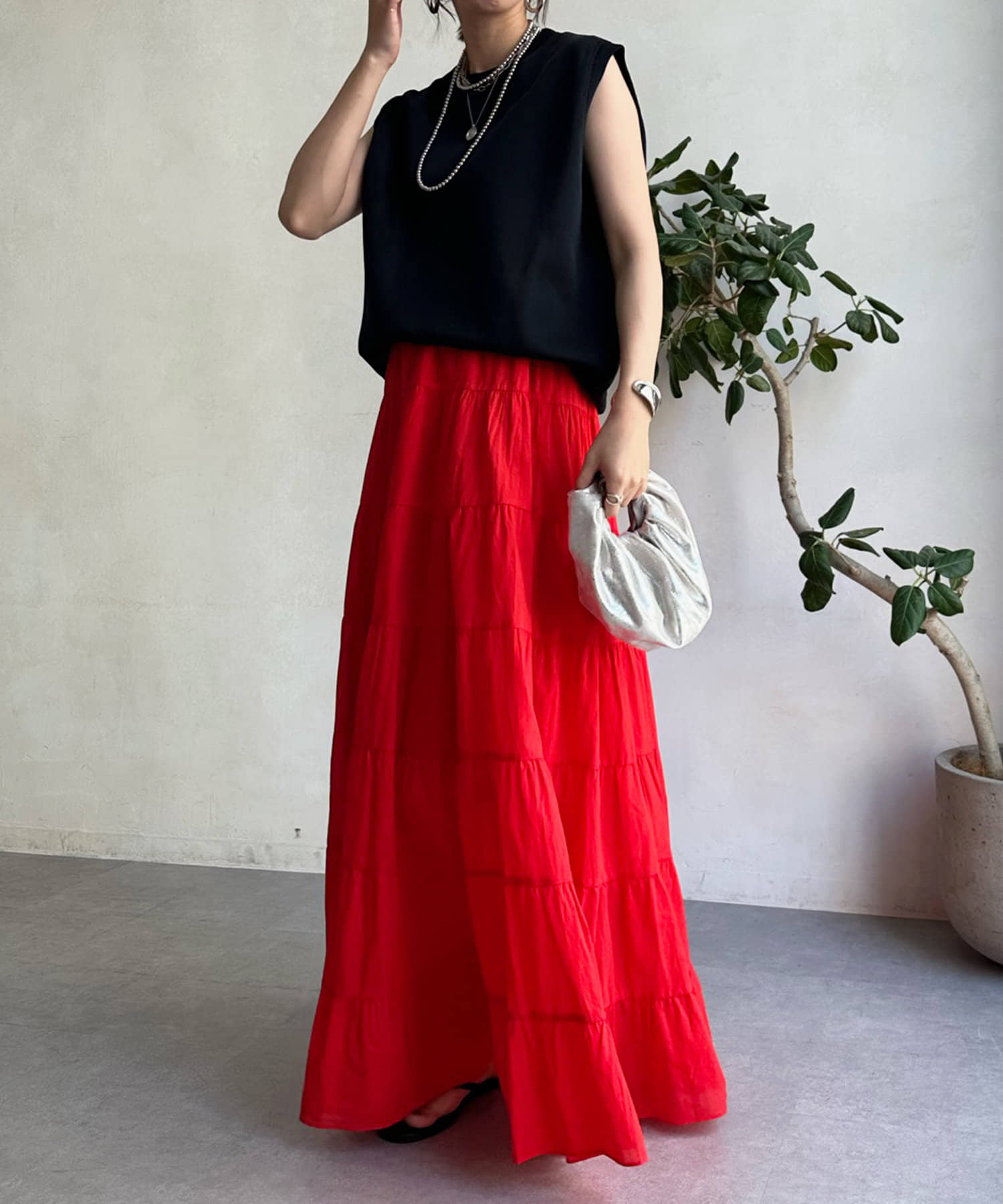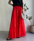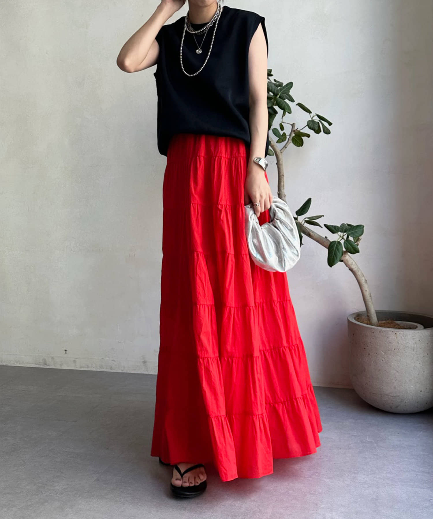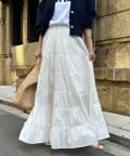 たっぷりのティアードが、歩くたびに揺れるシルエットを作ります。