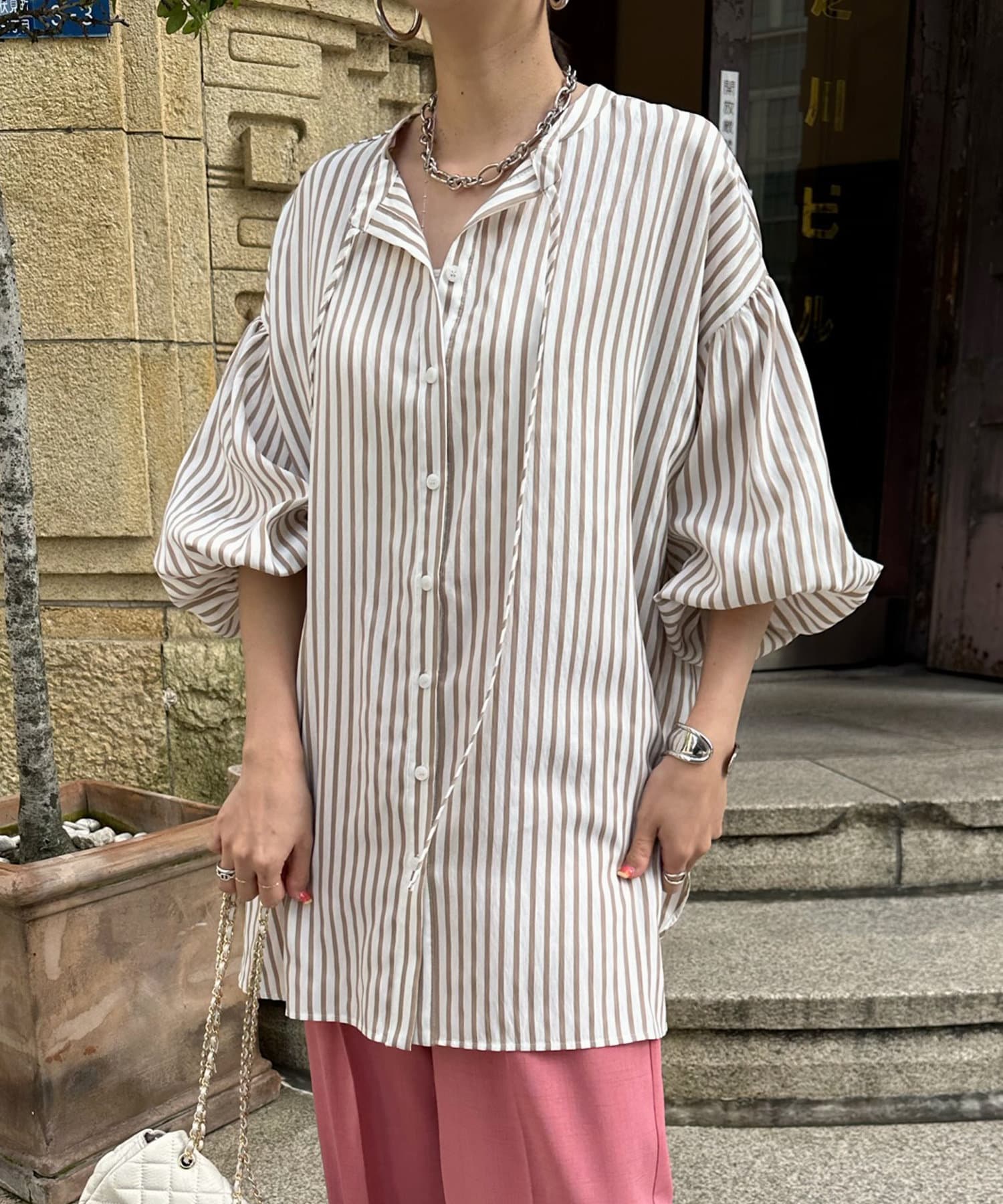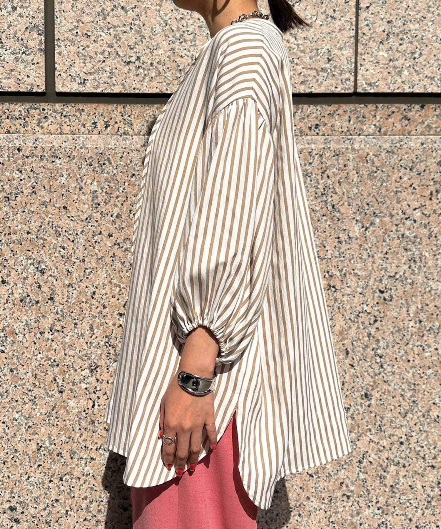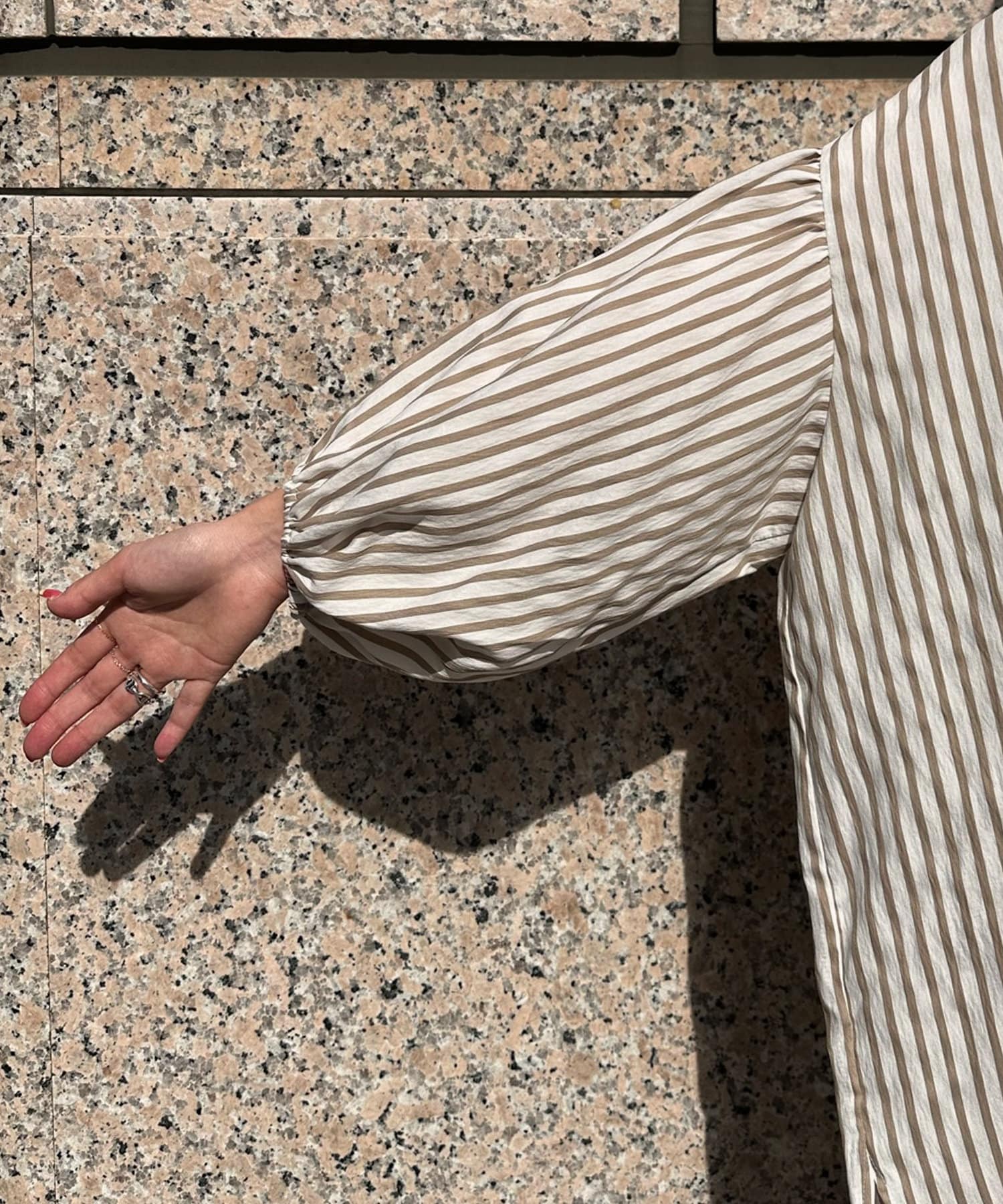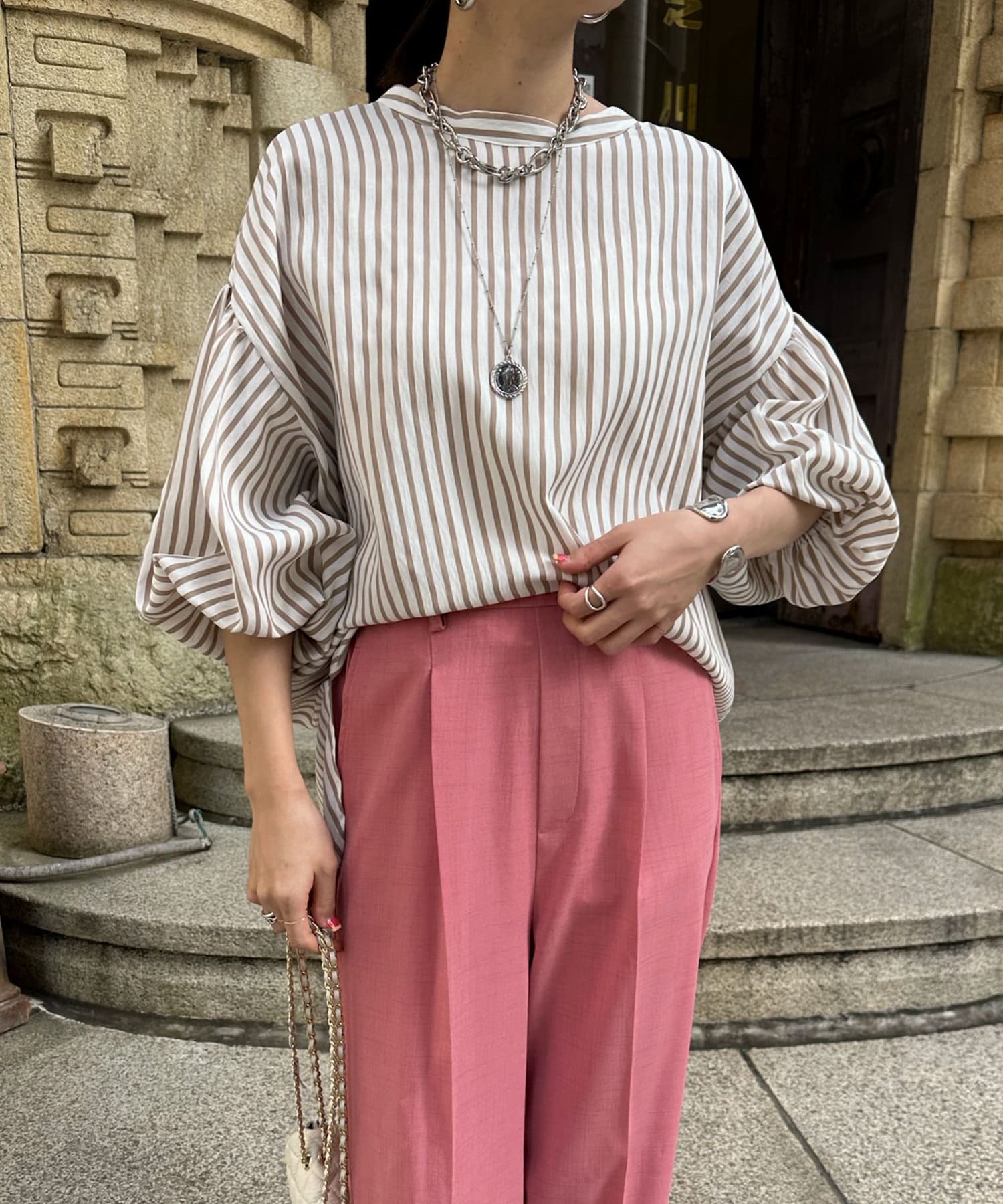 ショルダーラインと袖口にギャザーを寄せ、ボリューム感を作った袖シルエットがポイントです。