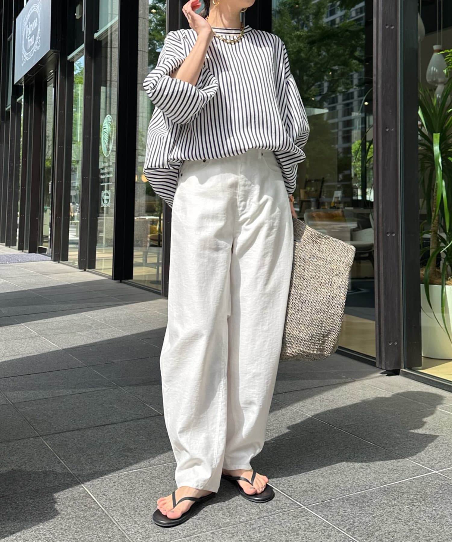 人気のブラウスを薄手の素材で爽やかな印象に。
