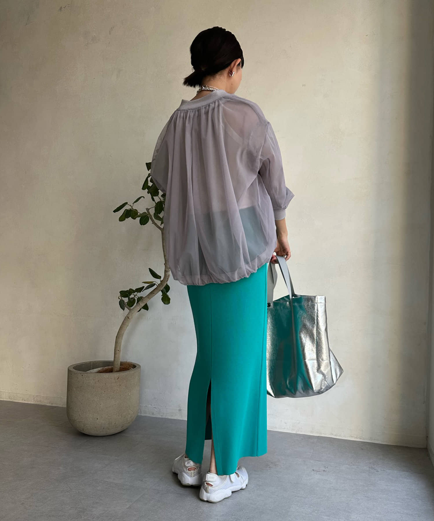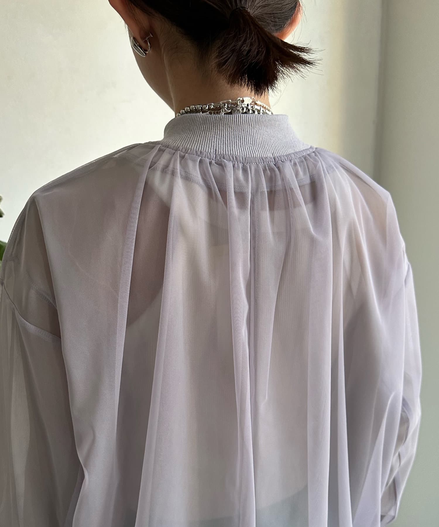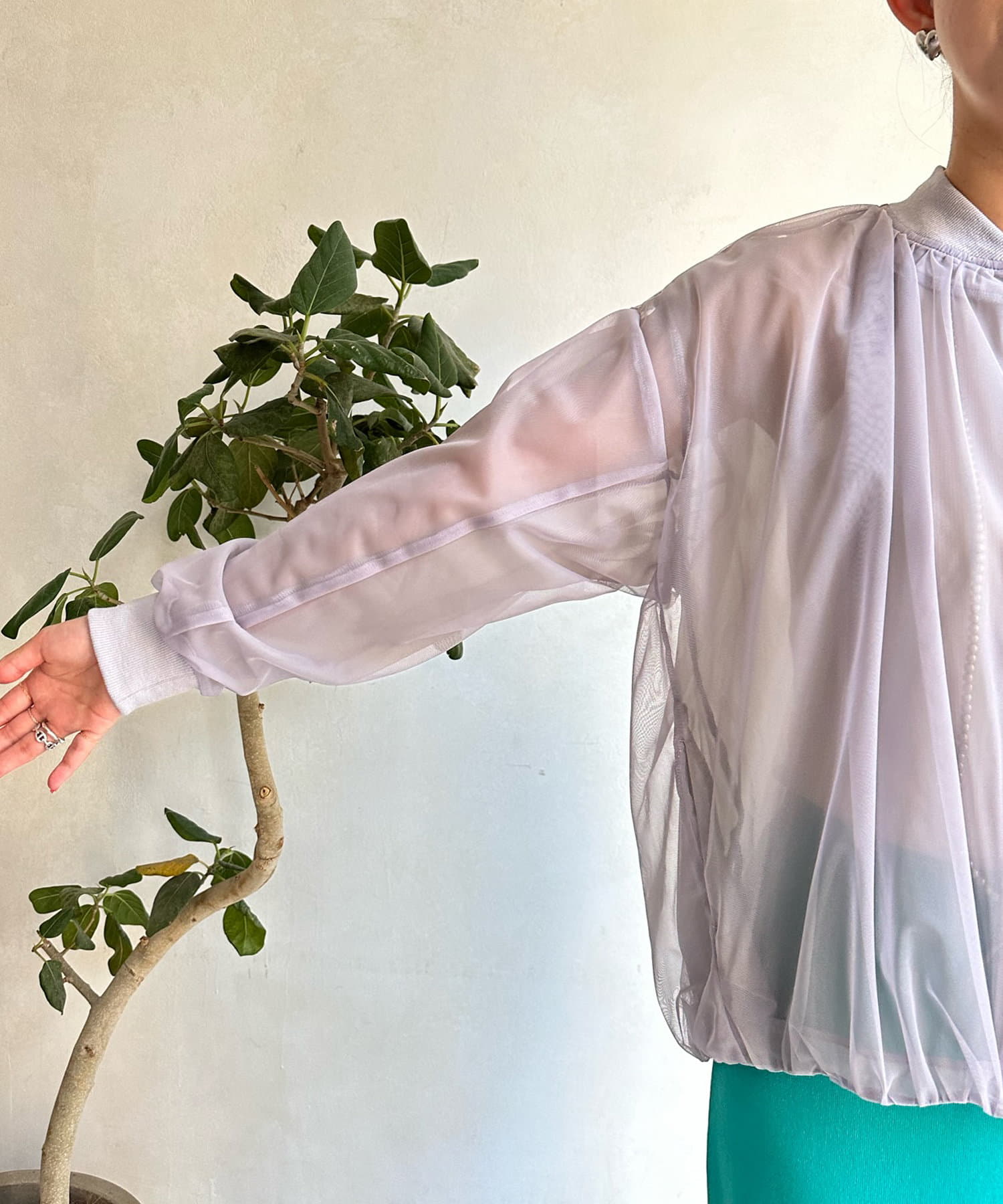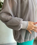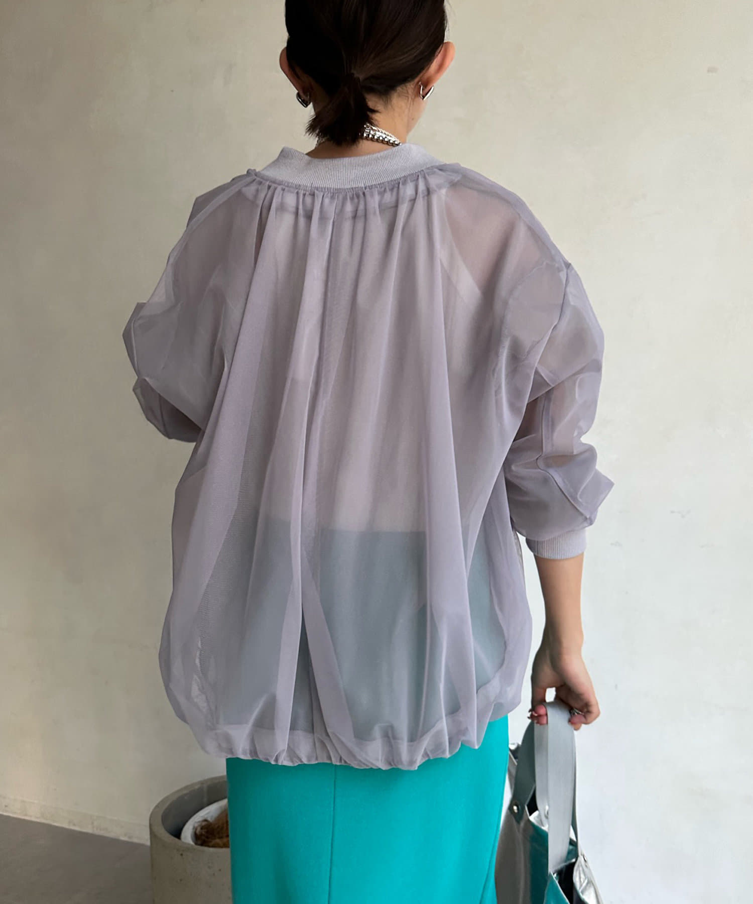 チュール素材にたっぷりのギャザーを加えることでふんわり感を残しつつ、袖口はリブ仕様でメリハリのあるシルエットを実現!