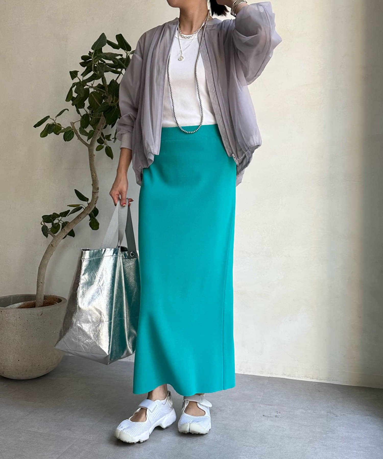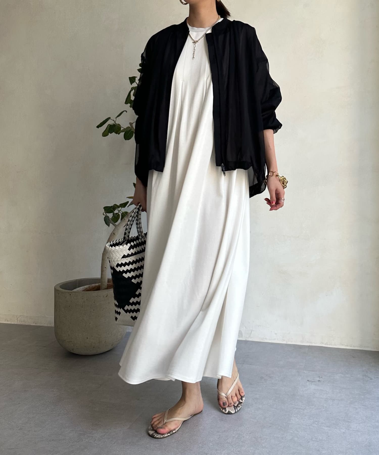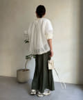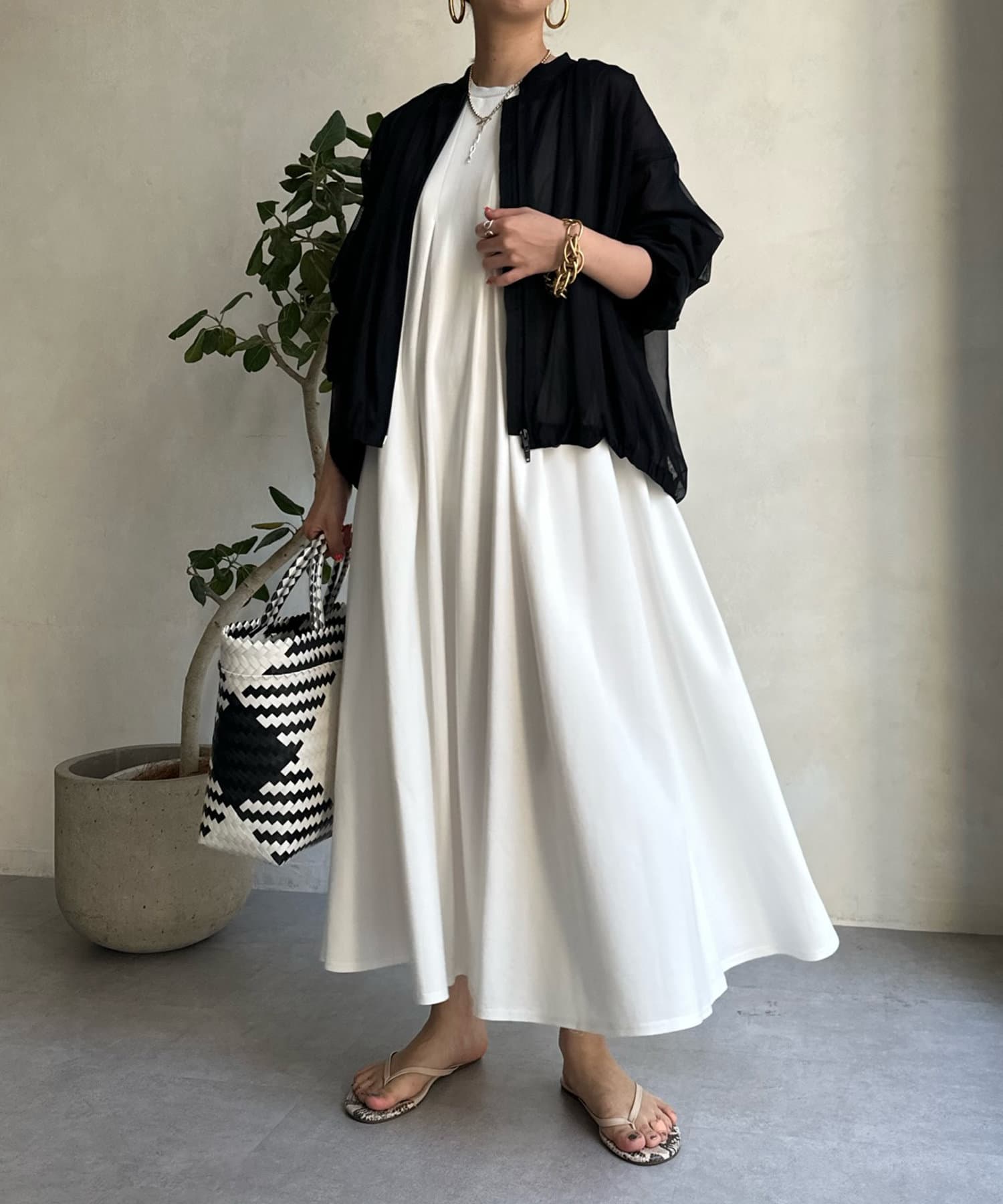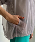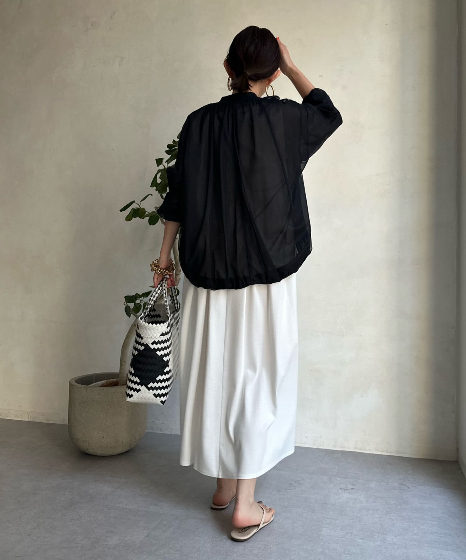 チュール素材にたっぷりのギャザーを加えることでふんわり感を残しつつ、袖口はリブ仕様でメリハリのあるシルエットを実現!