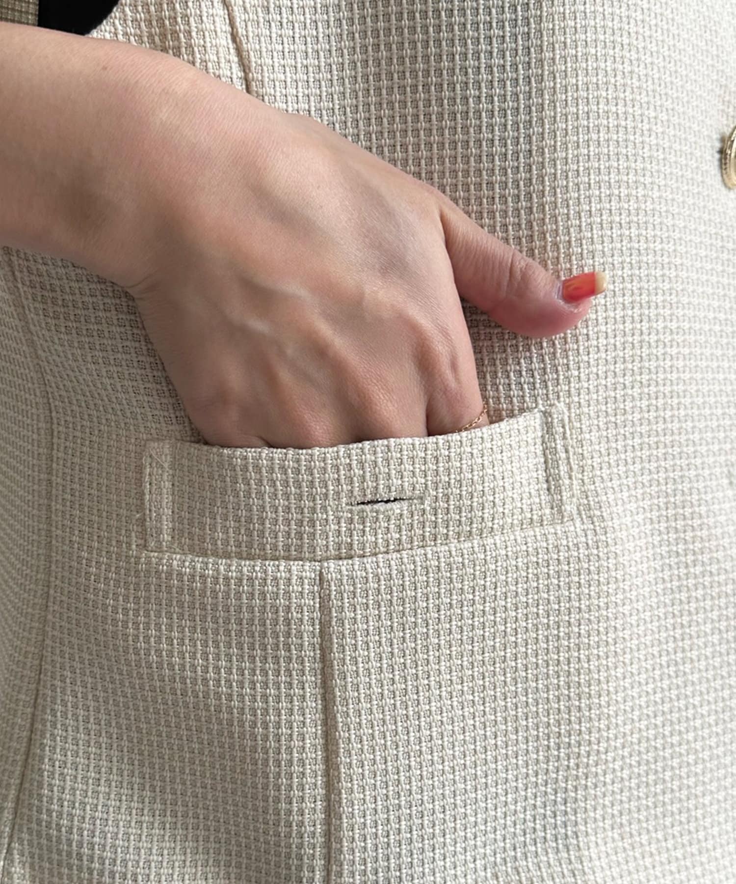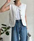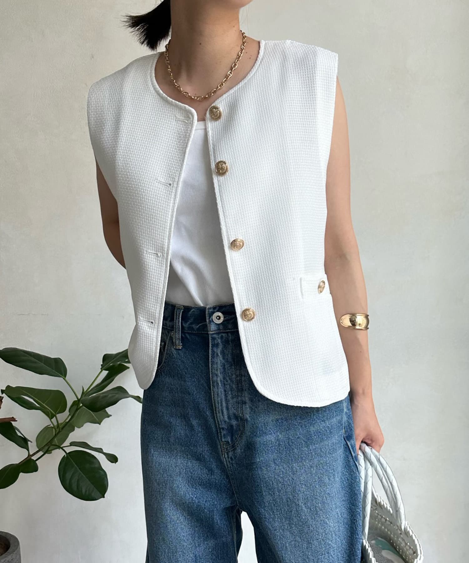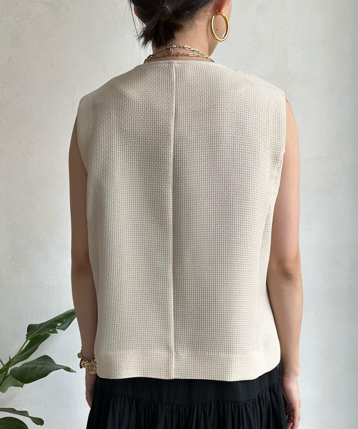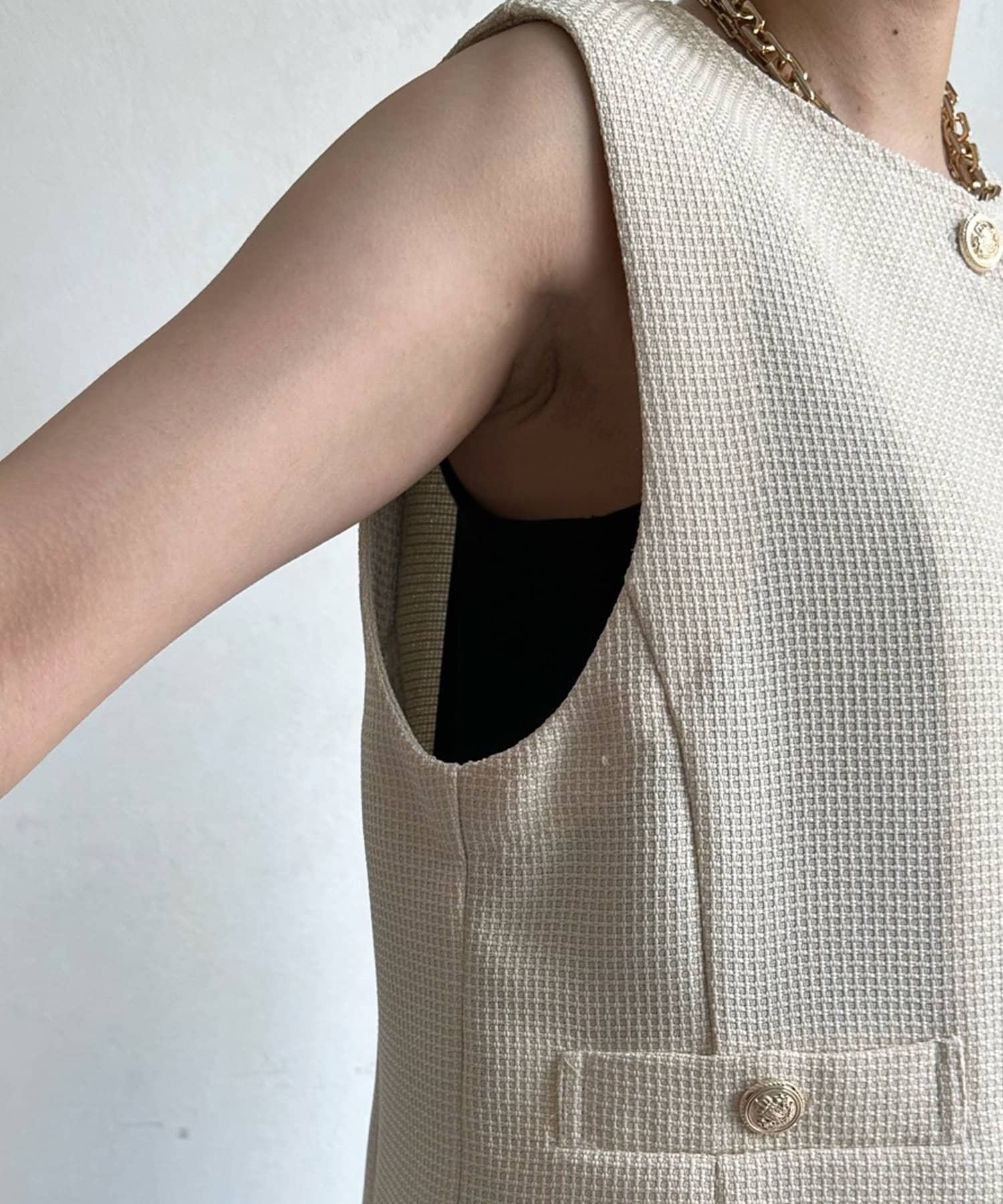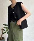トレンドのツイード素材を使ったショート丈ベスト。