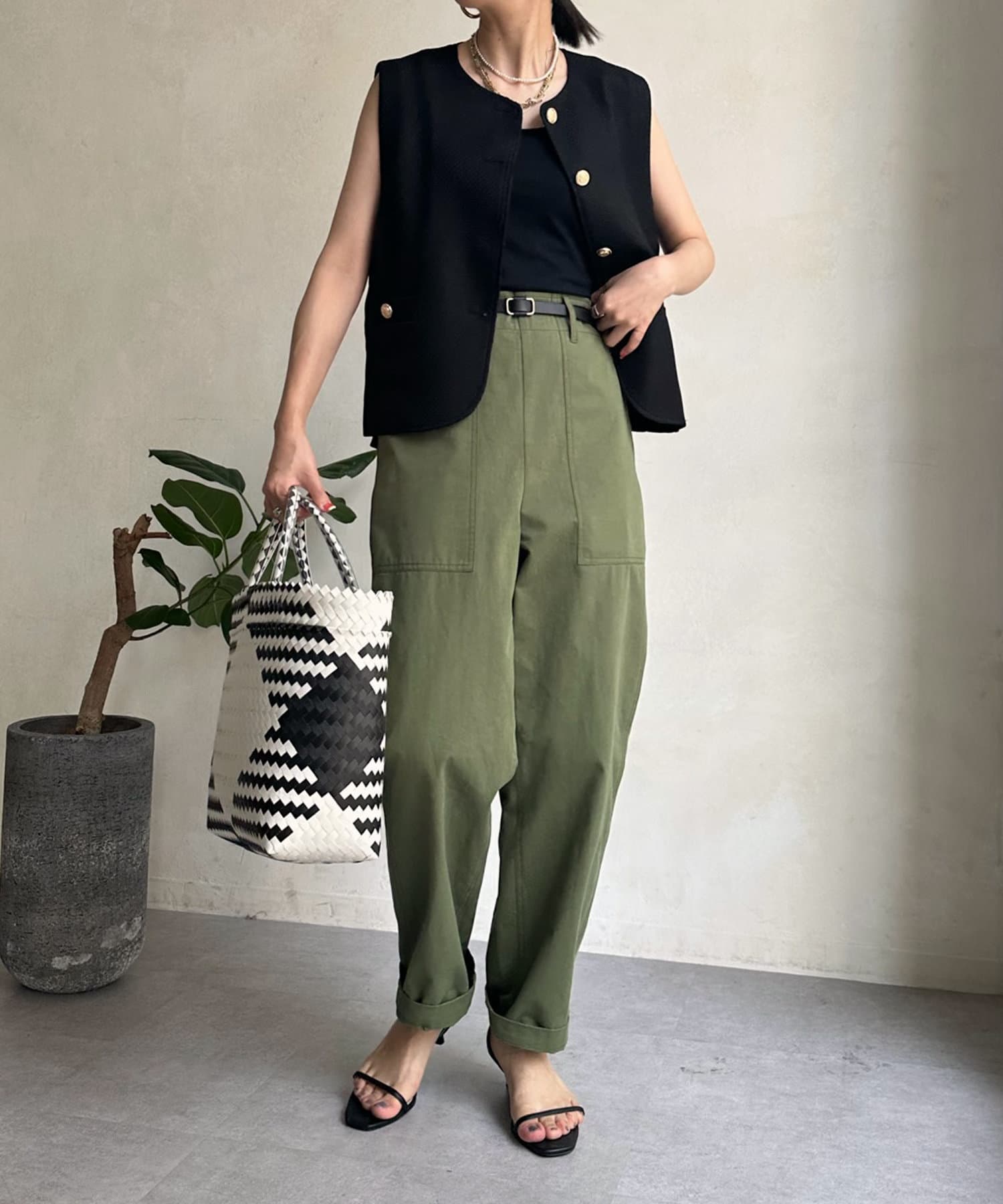 合わせるアイテムはパンツはもちろん、ワンピース・ボリューム感のあるスカートなど幅広くマッチ。