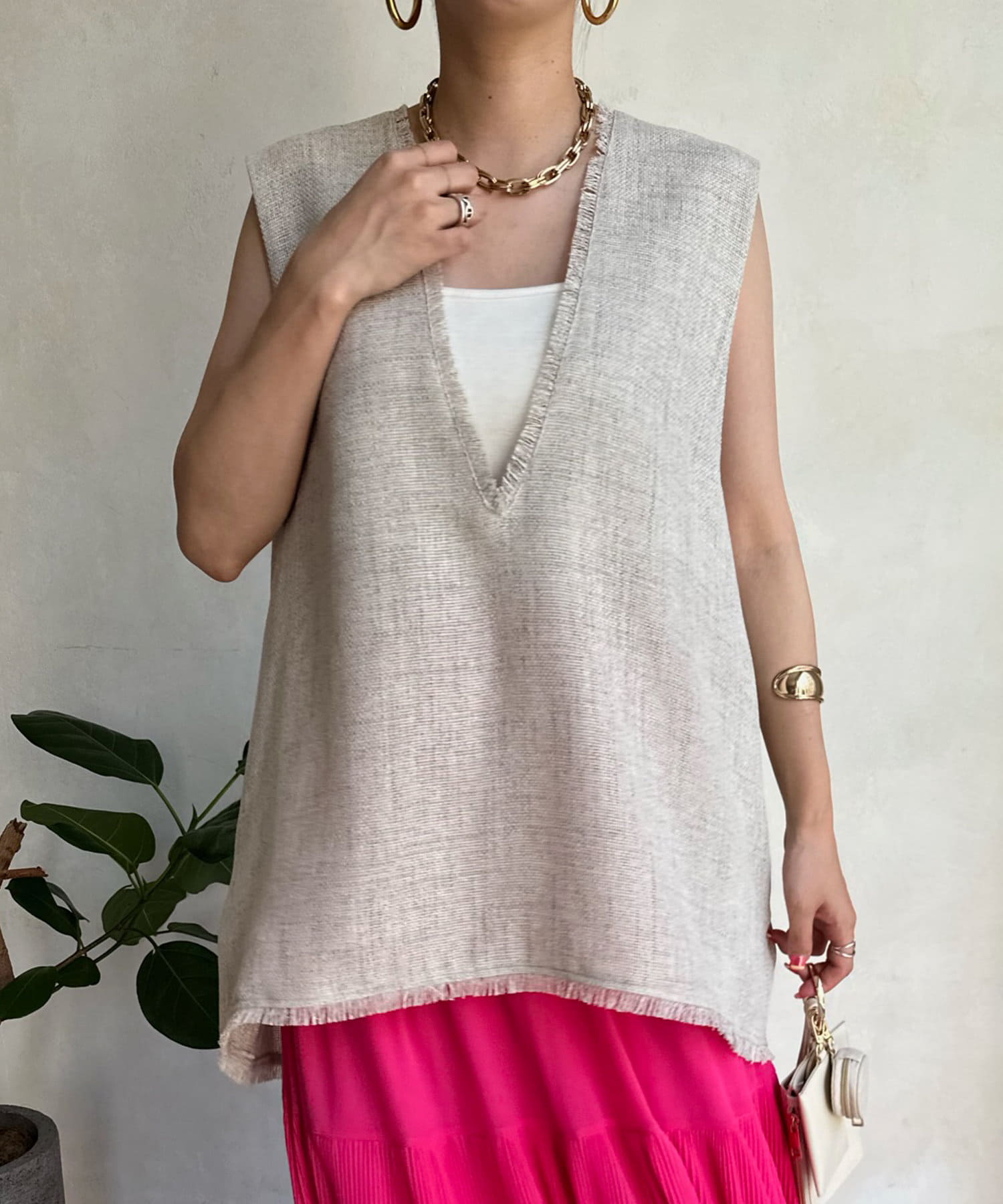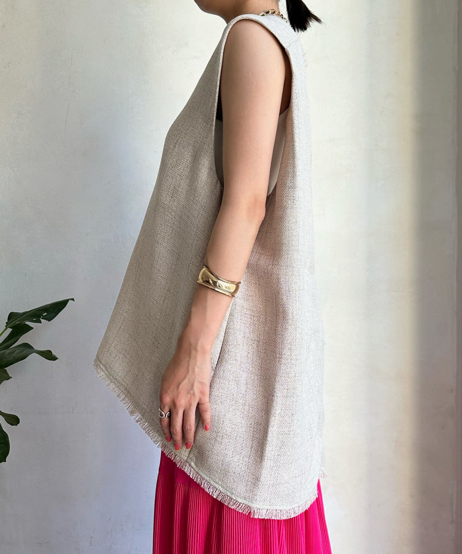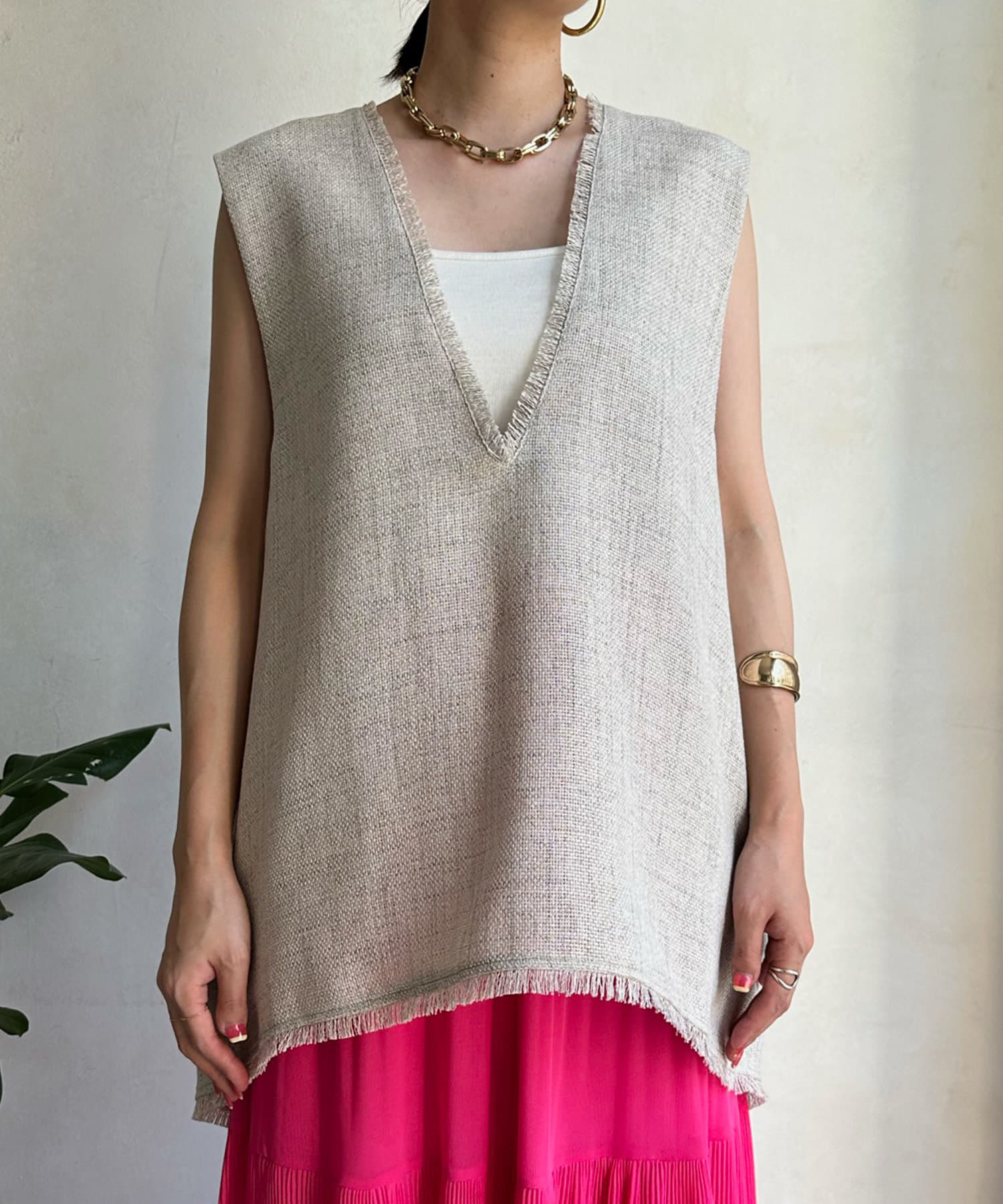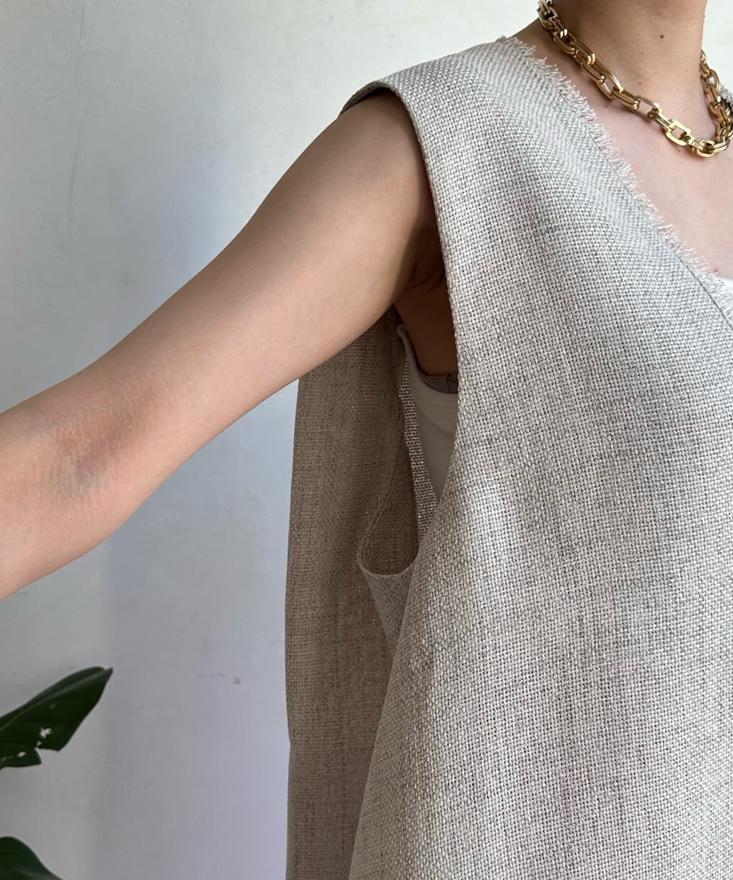 リネンライク深Vタックベスト