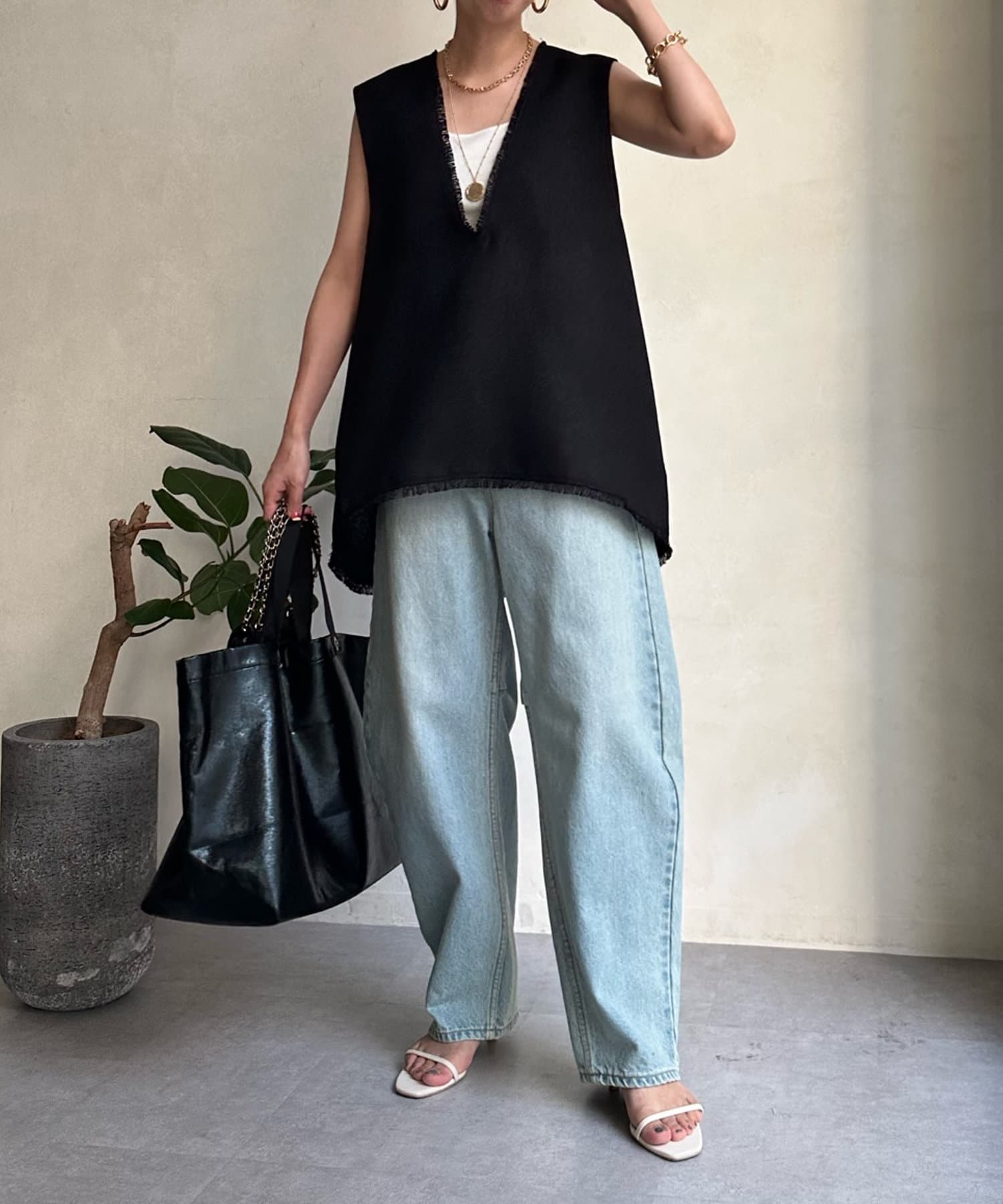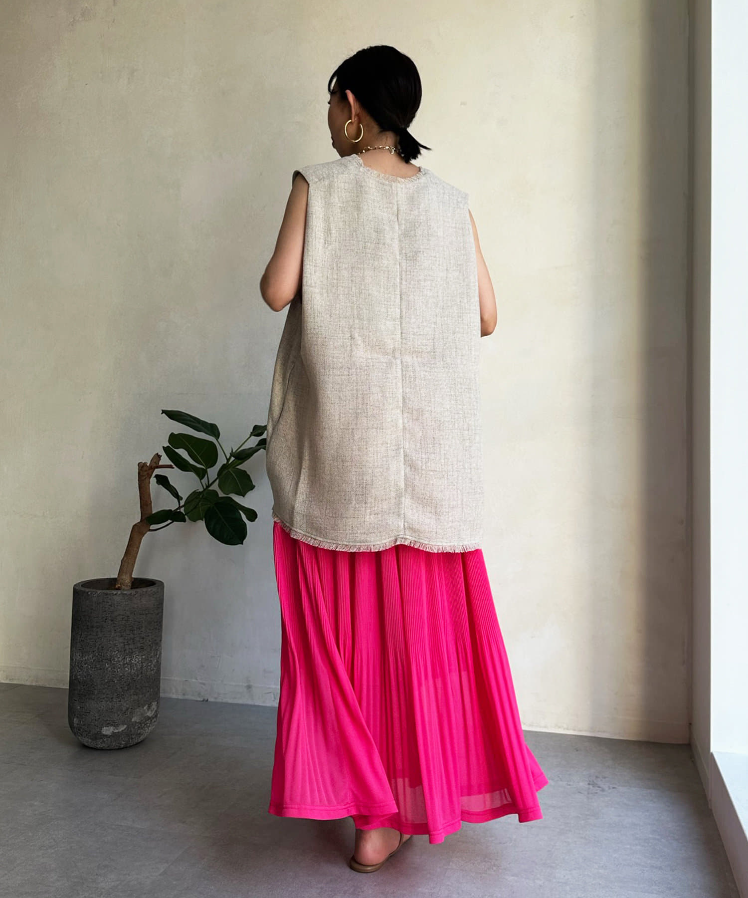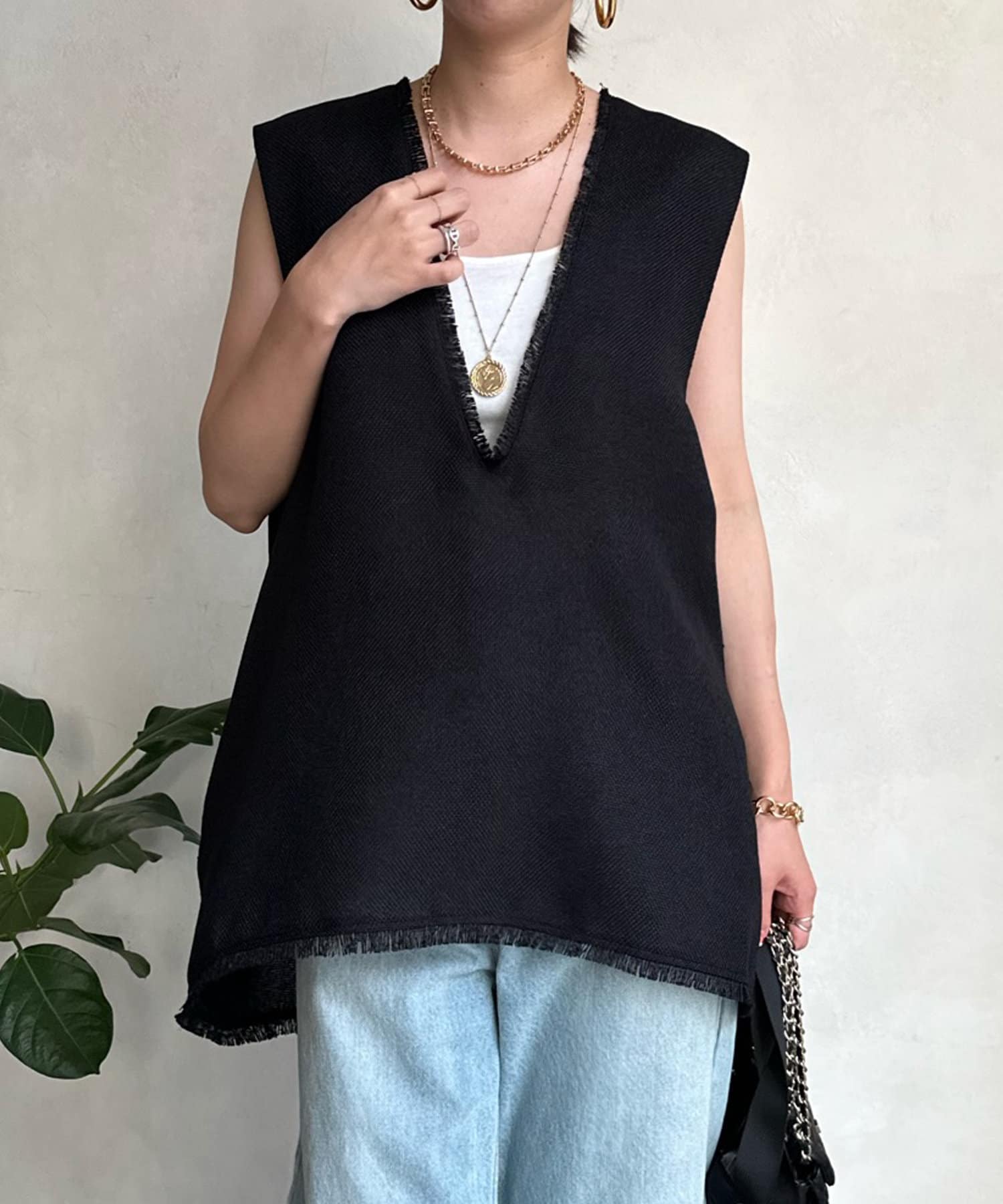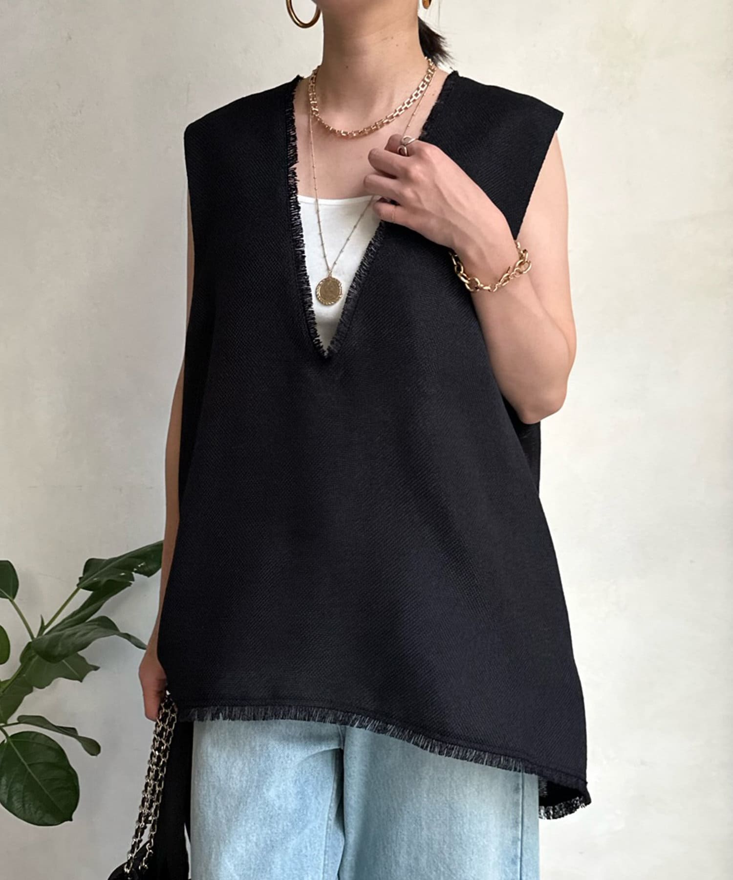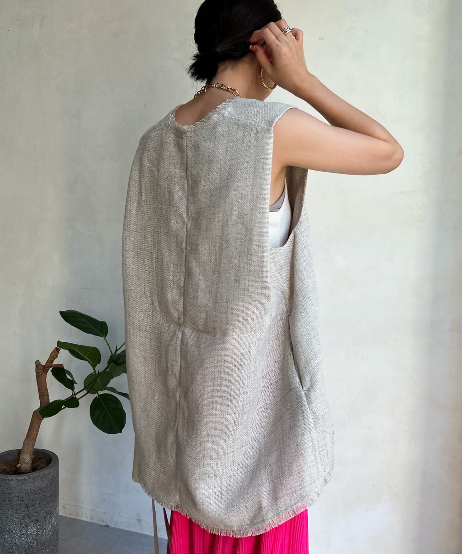 リネンライク深Vタックベスト