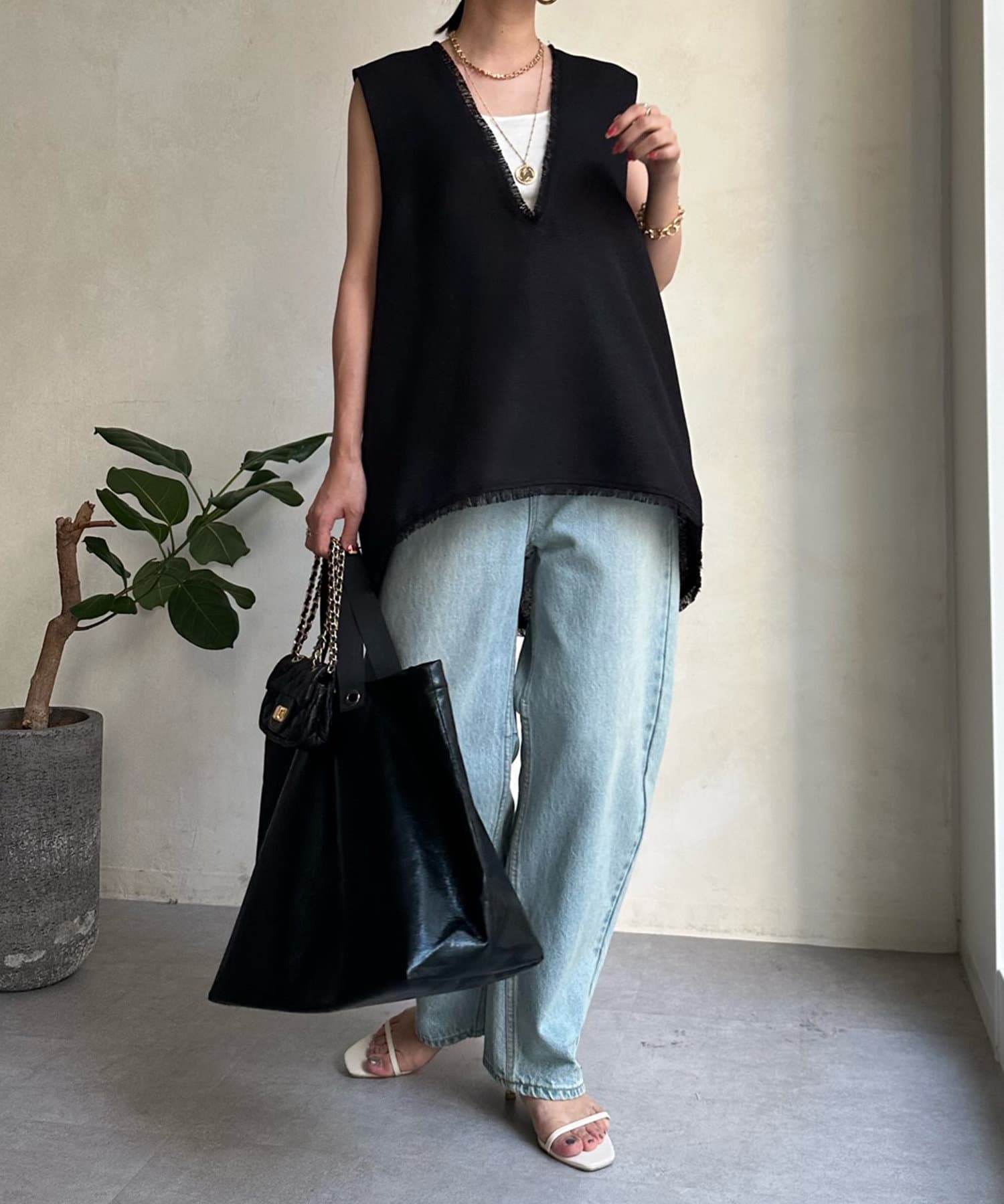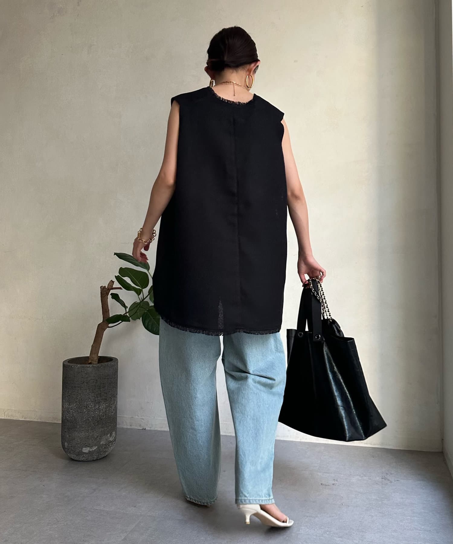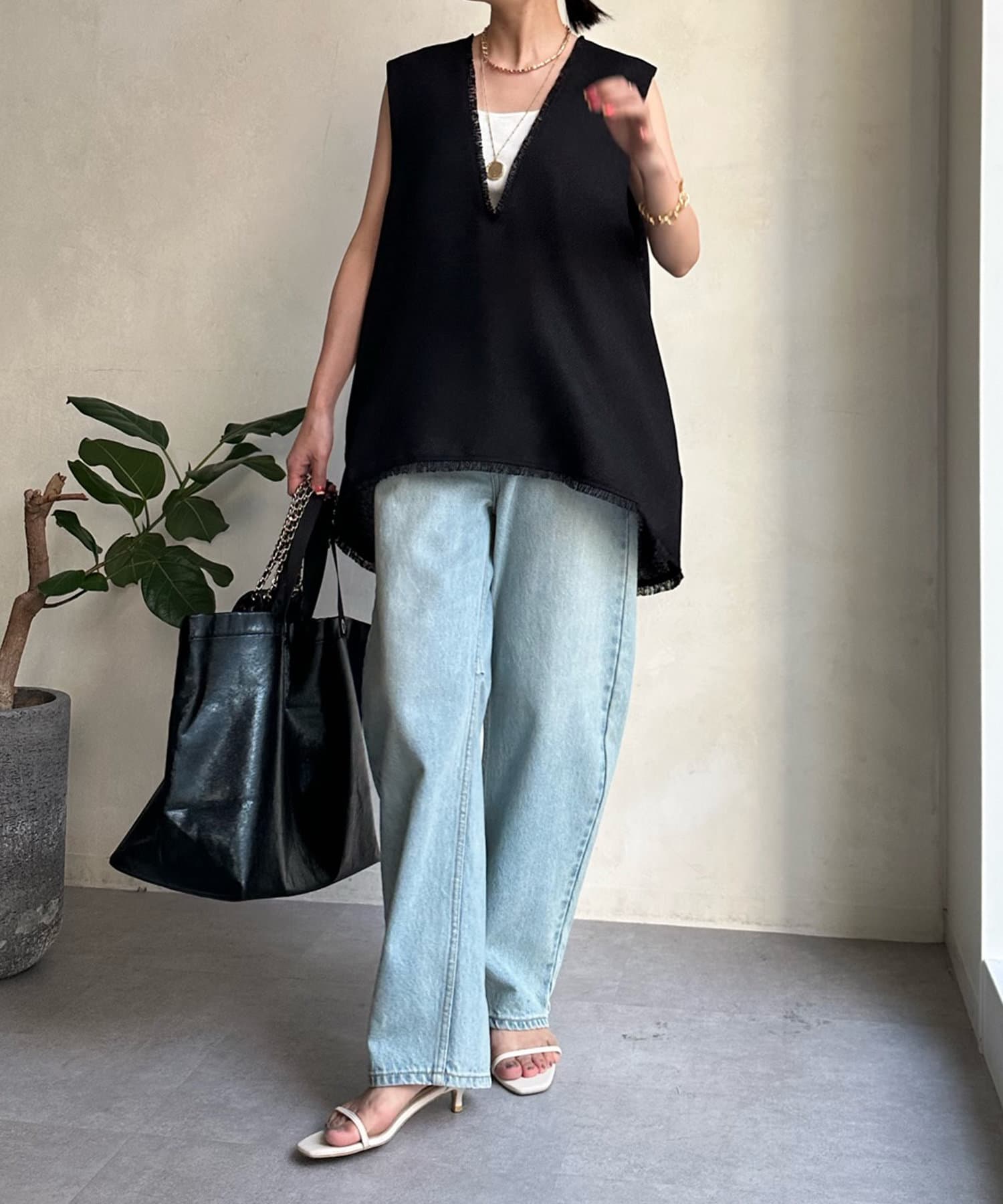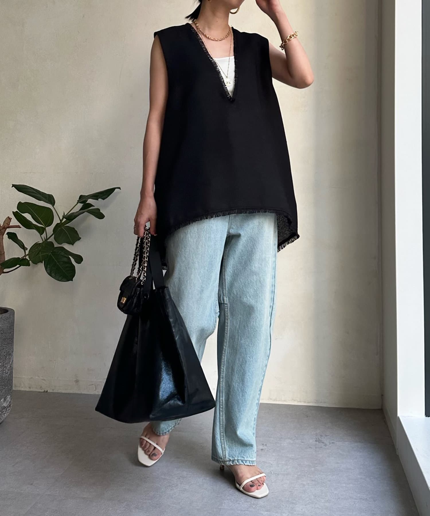リネンライク深Vタックベスト