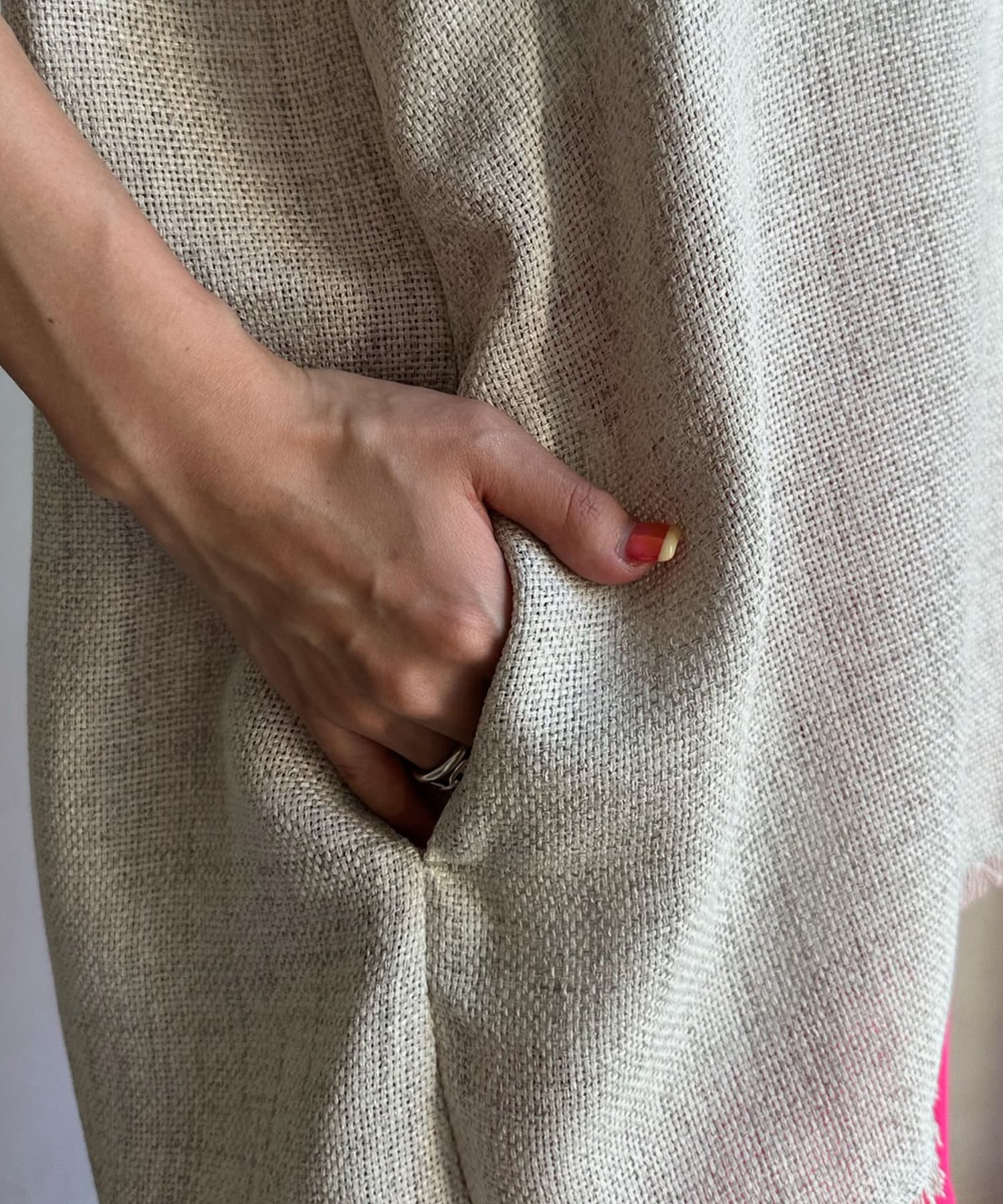 ナチュラルな雰囲気漂うリネンライクな素材に、ややオーバーなサイジングの為、ゆったりとリラックス感のある印象に仕上がります。