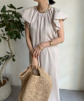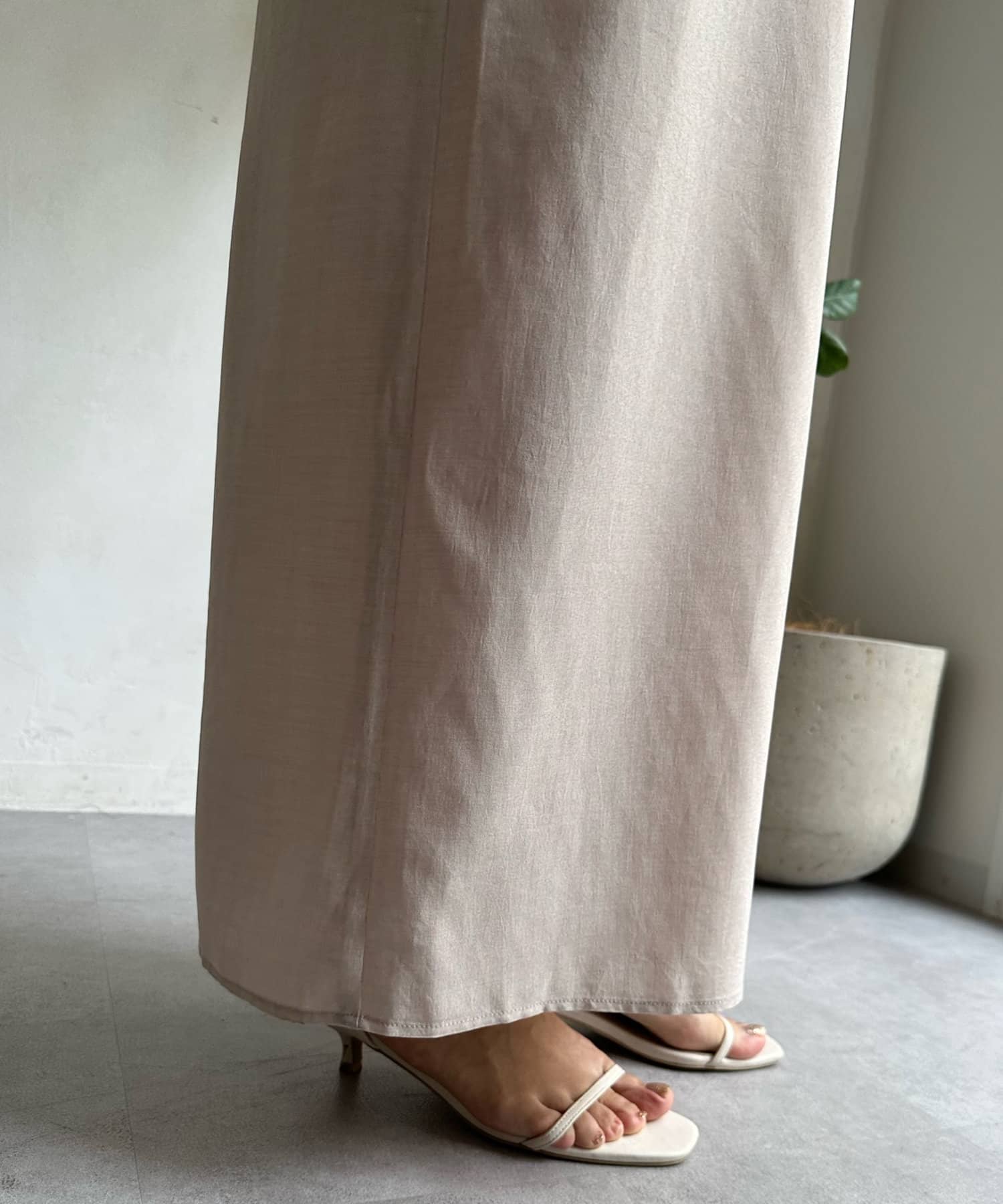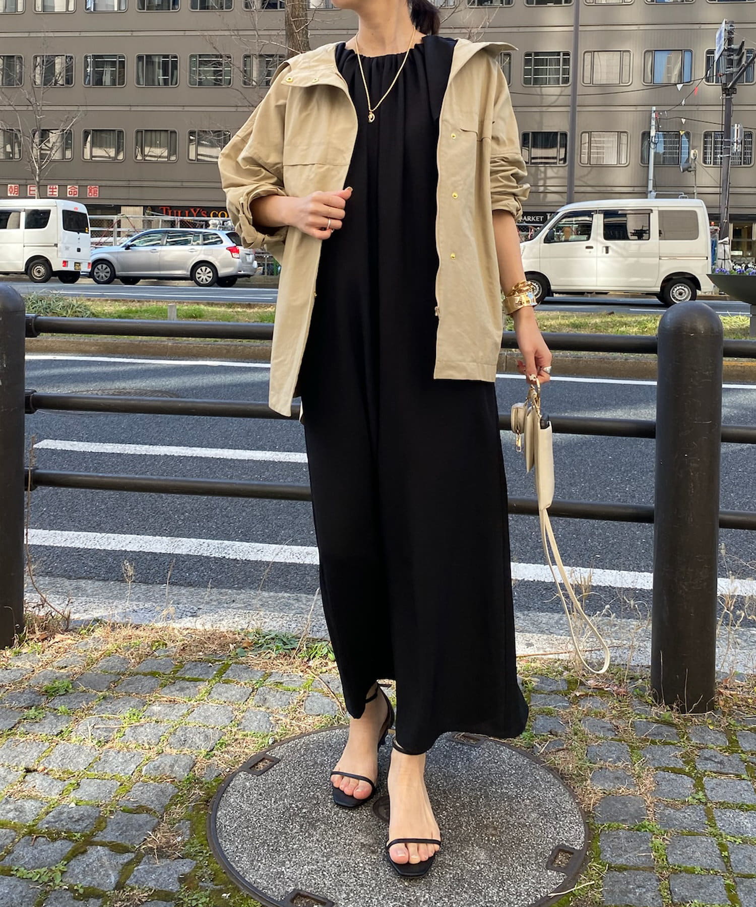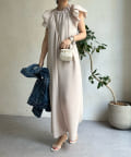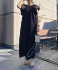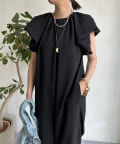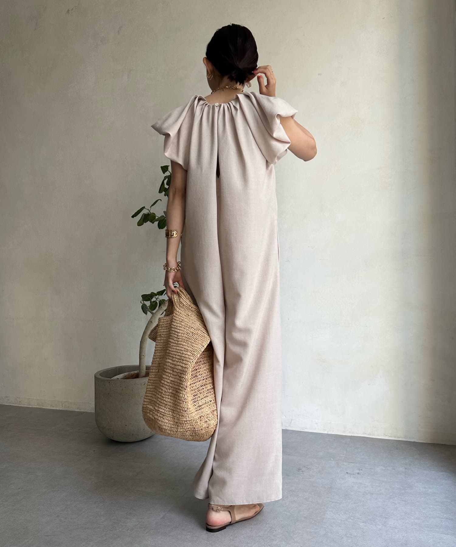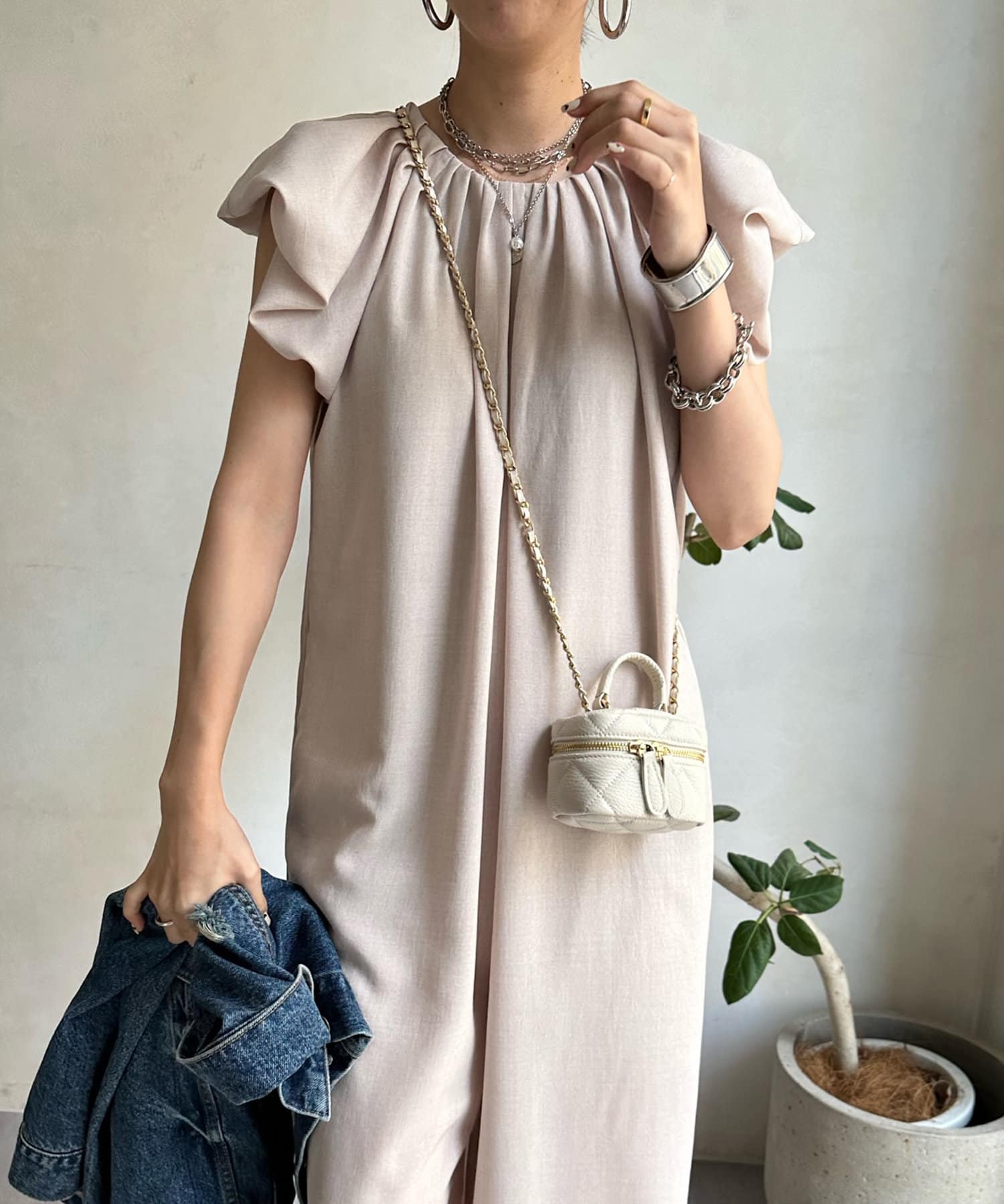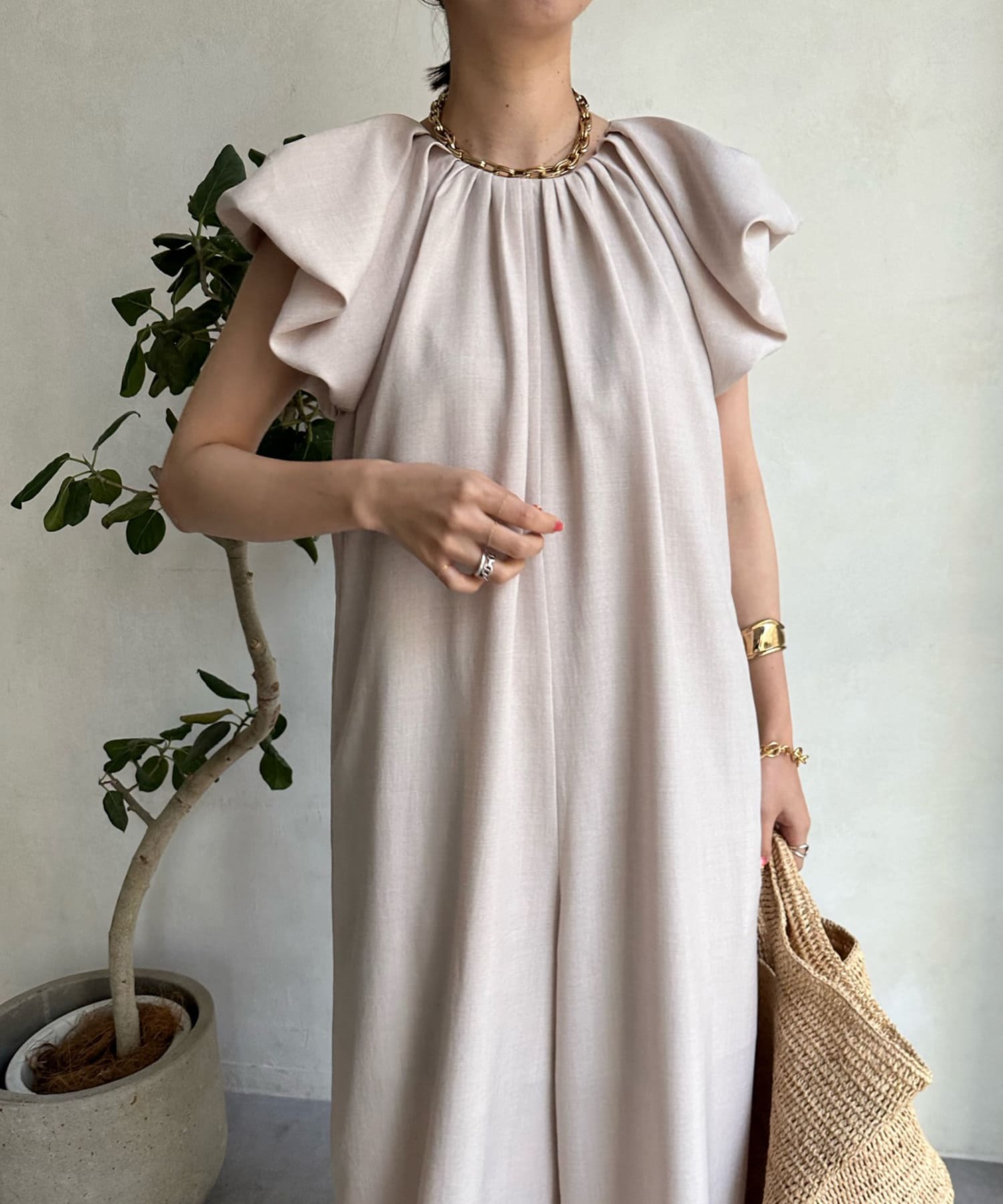 パンツ部分をたっぷりと分量を持たせたワイドシルエットにしており、メリハリのあるバランスが叶う1着です。