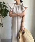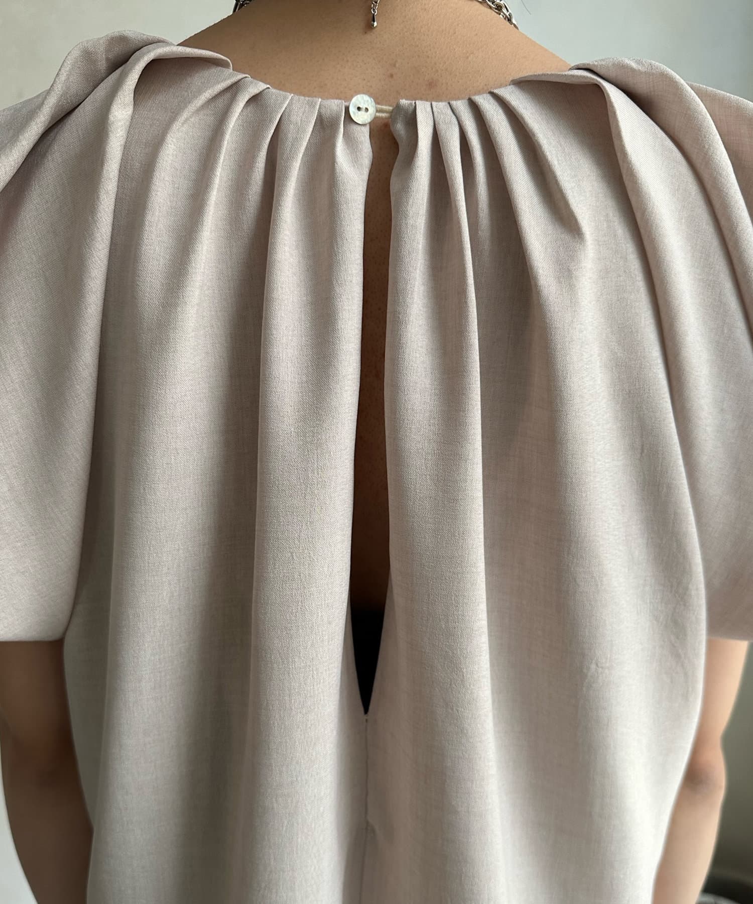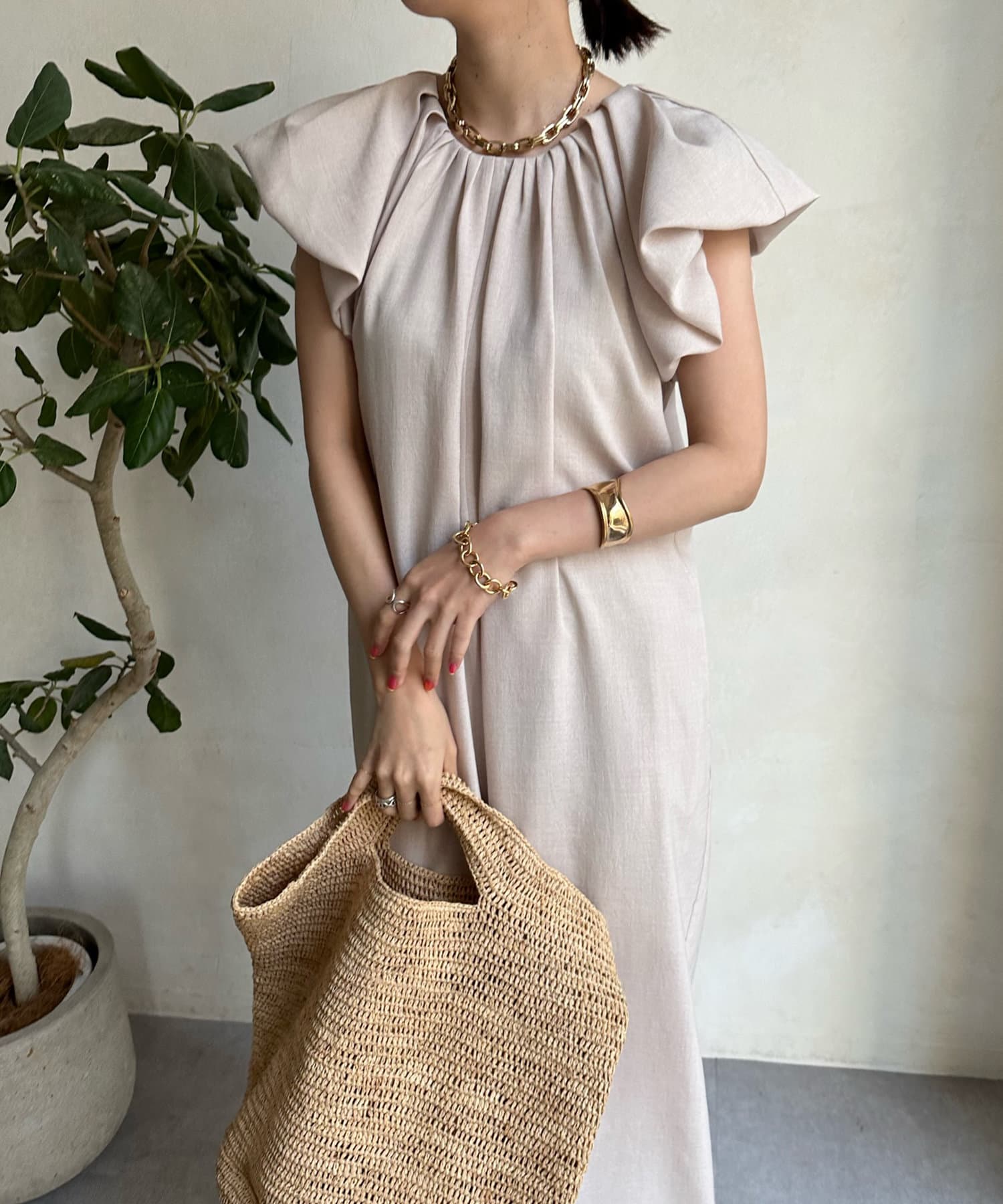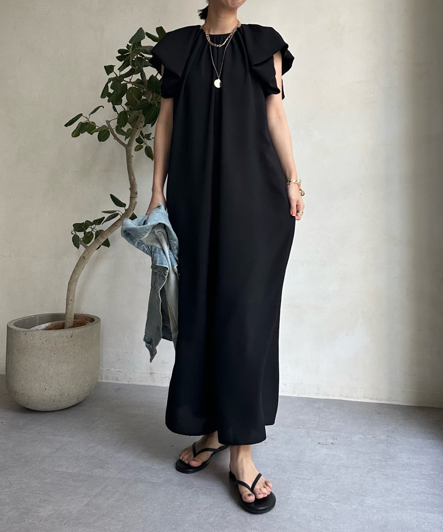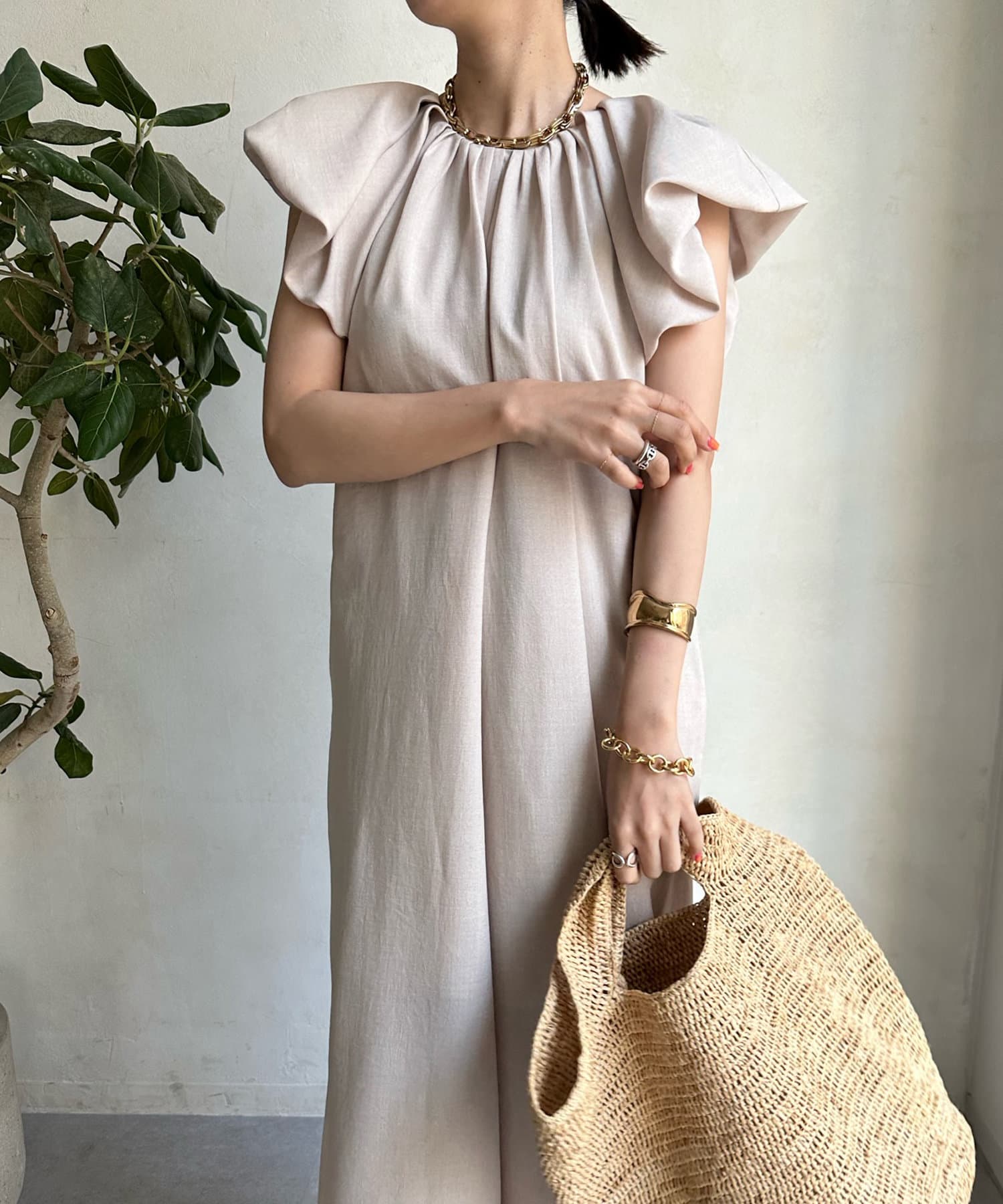 バストまでは華奢に見せつつ、ボディラインには適度にゆとりを持たせ、タックを活かしたIラインシルエットが魅力のポイント!