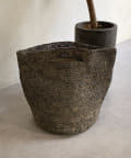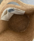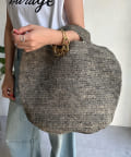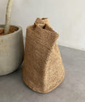 手編みで織られた、温かみのあるデザインのかごバッグ。