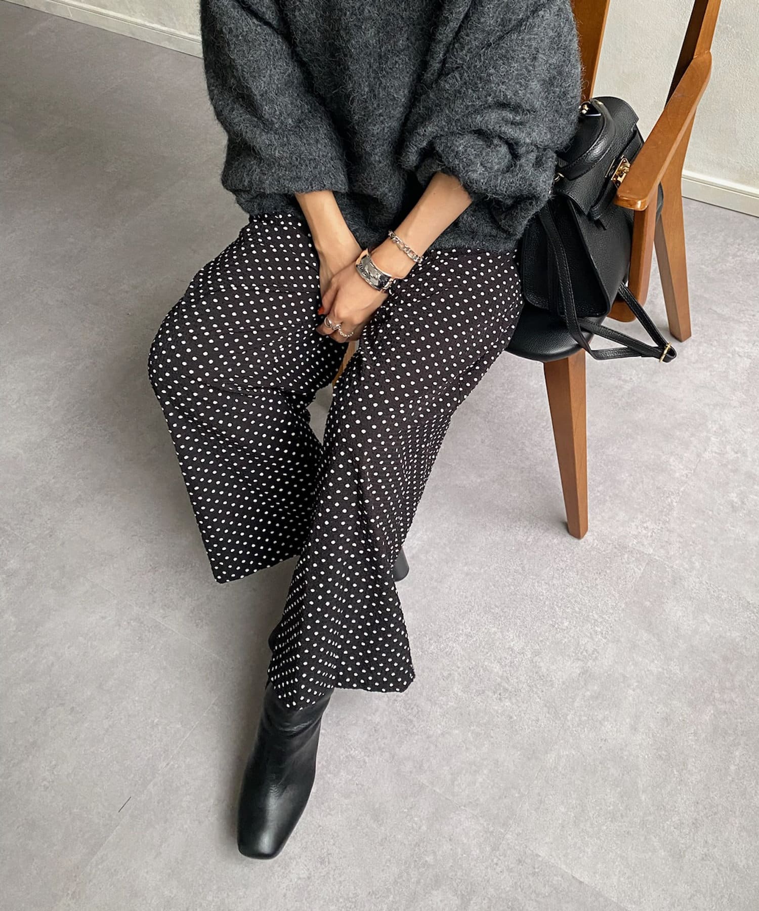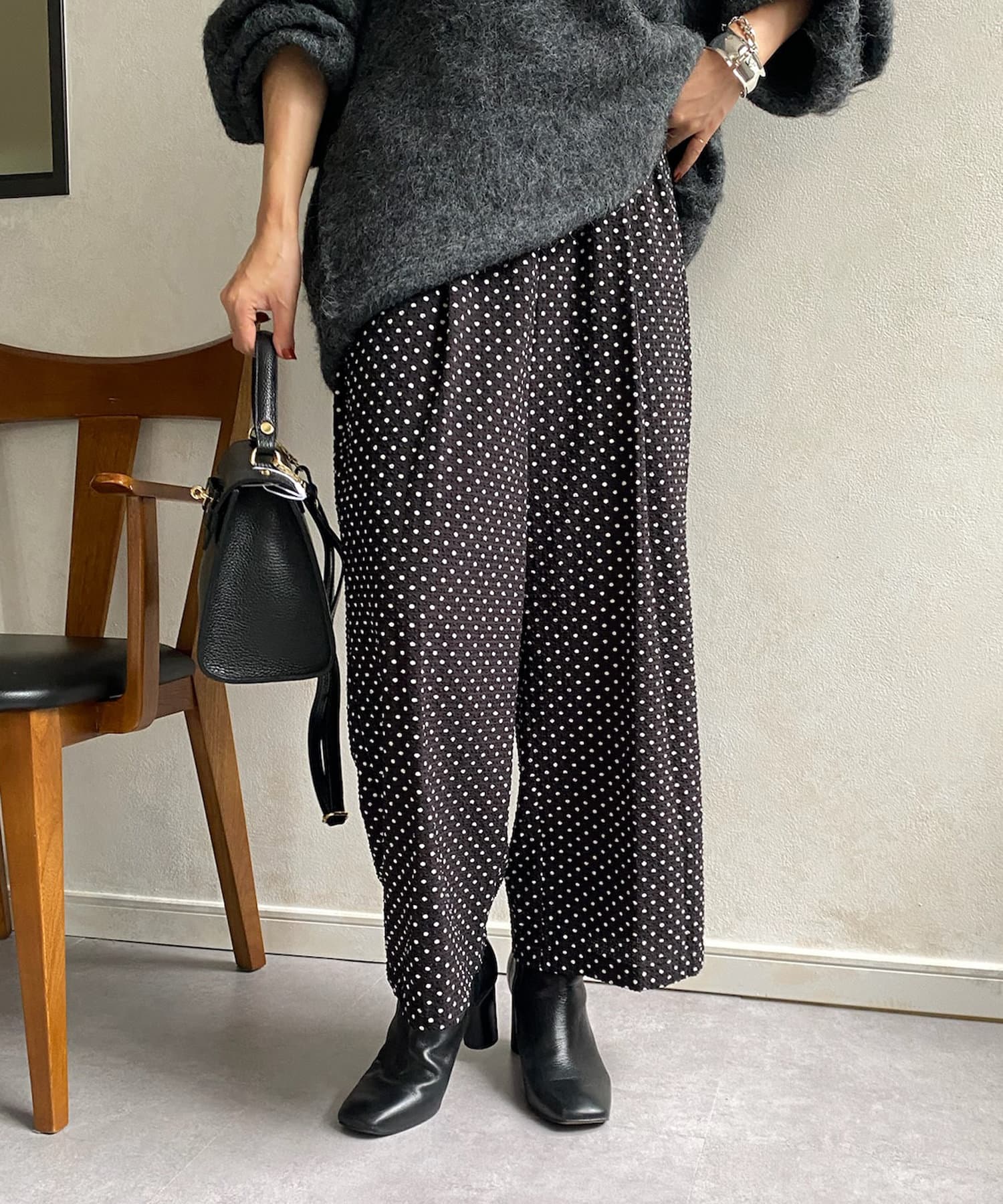 落ち着いたドット柄がコーディネットにアクセントを加えてくれるイージーパンツが登場しました。