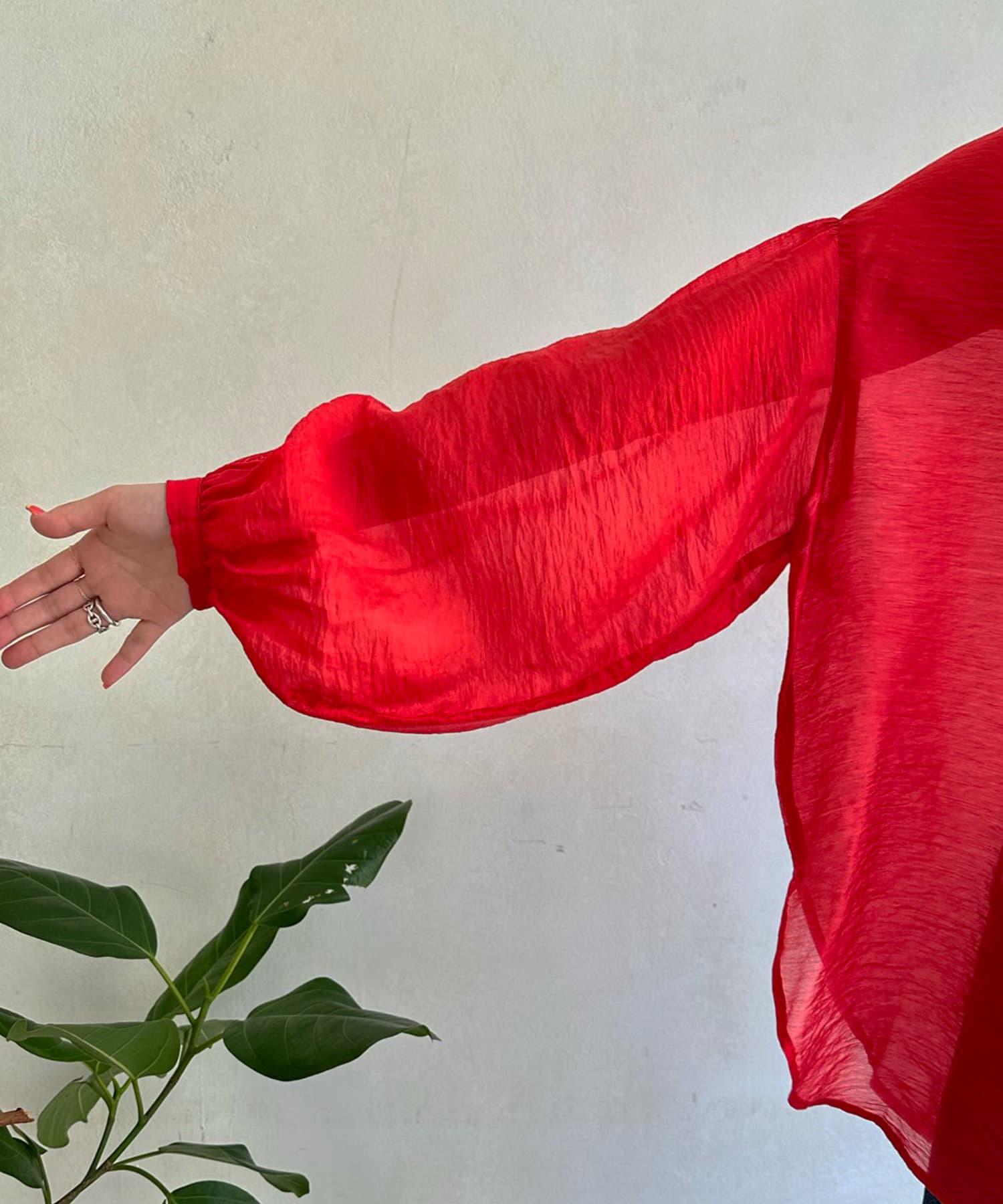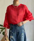 ショルダーラインと袖口にギャザーを寄せ、ボリューム感を作った袖シルエットがポイント。