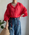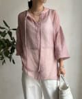 そして、お顔周りがすっきりと見えるスキッパーデザインで、首元にはトレンド感のあるリボンをプラス。