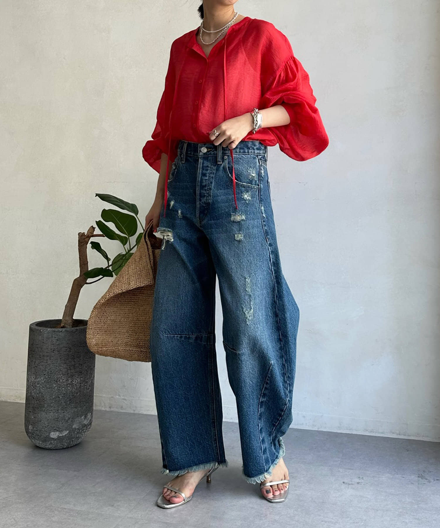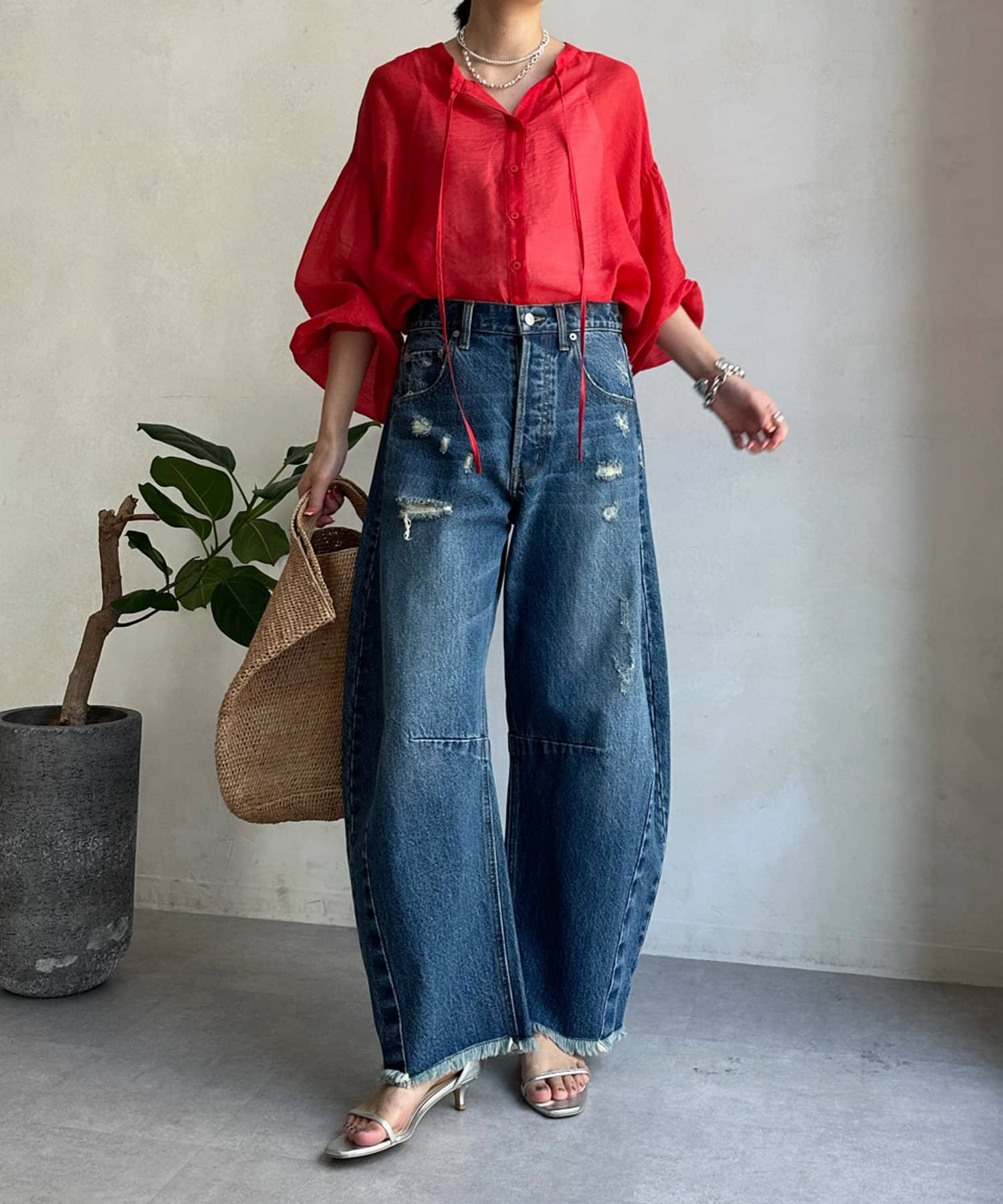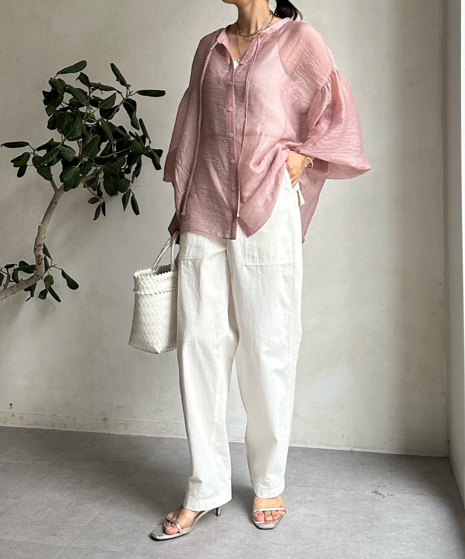 上品に透けるシアーの軽い印象がシーズンムードを与えてくれます。