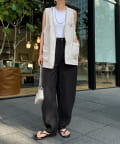すっきりとしたシルエットで合わせるボトムを選ばず、いつものスタイルにプラスするだけでレイヤードに仕上がります。