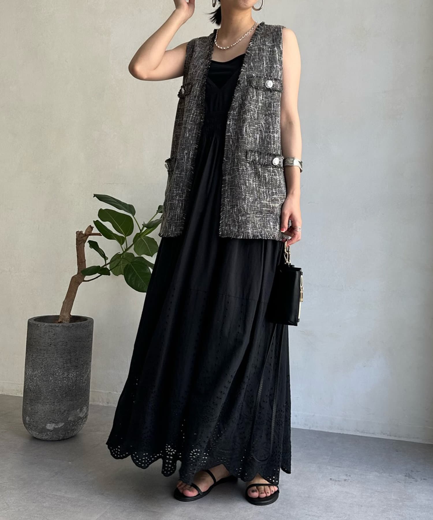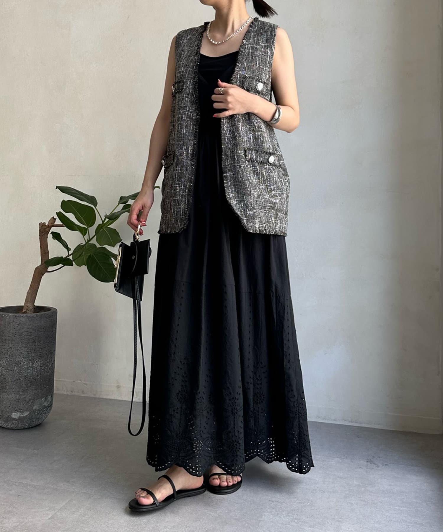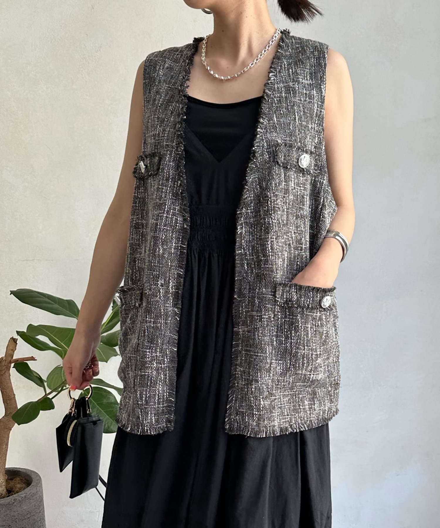 表情感のあるツイード素材は、高級感を漂わせながらもトレンドライクな印象を与えます。