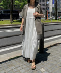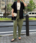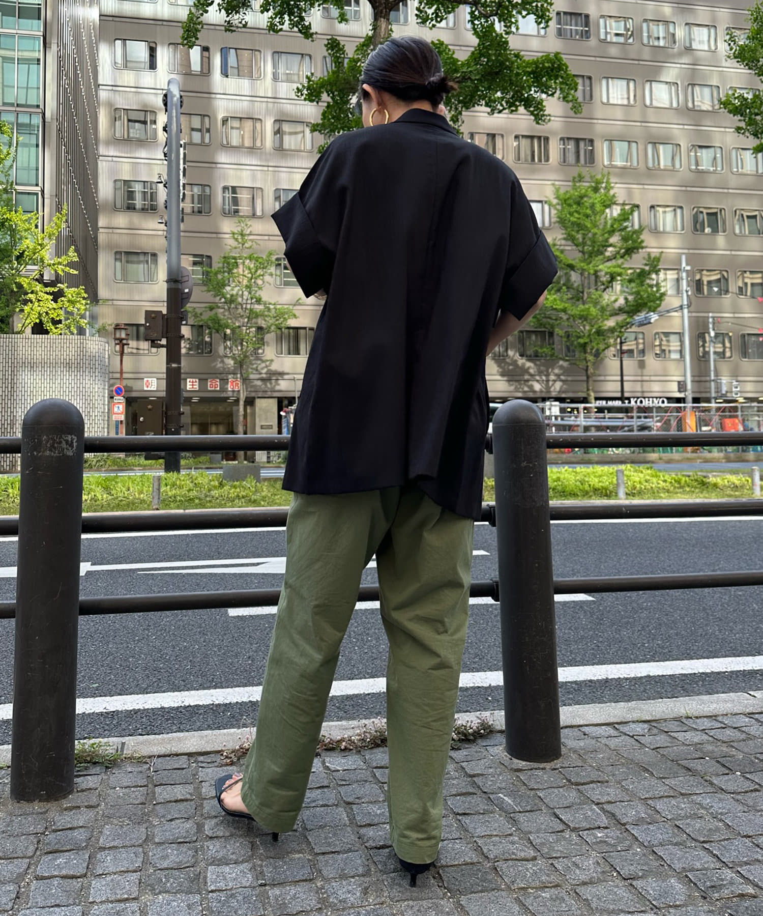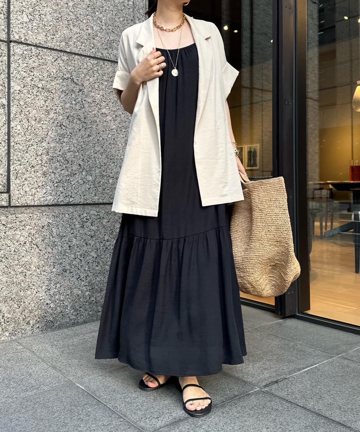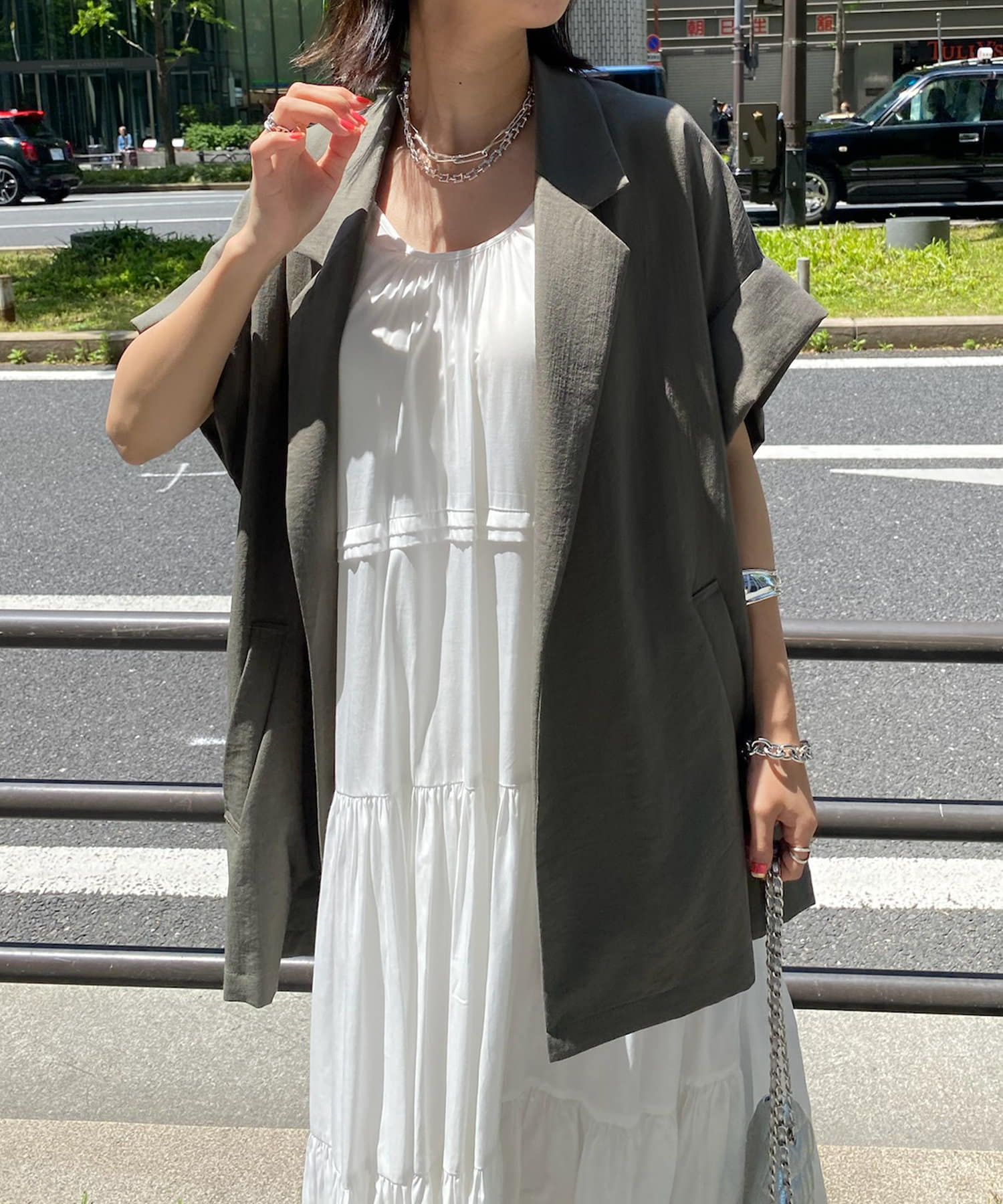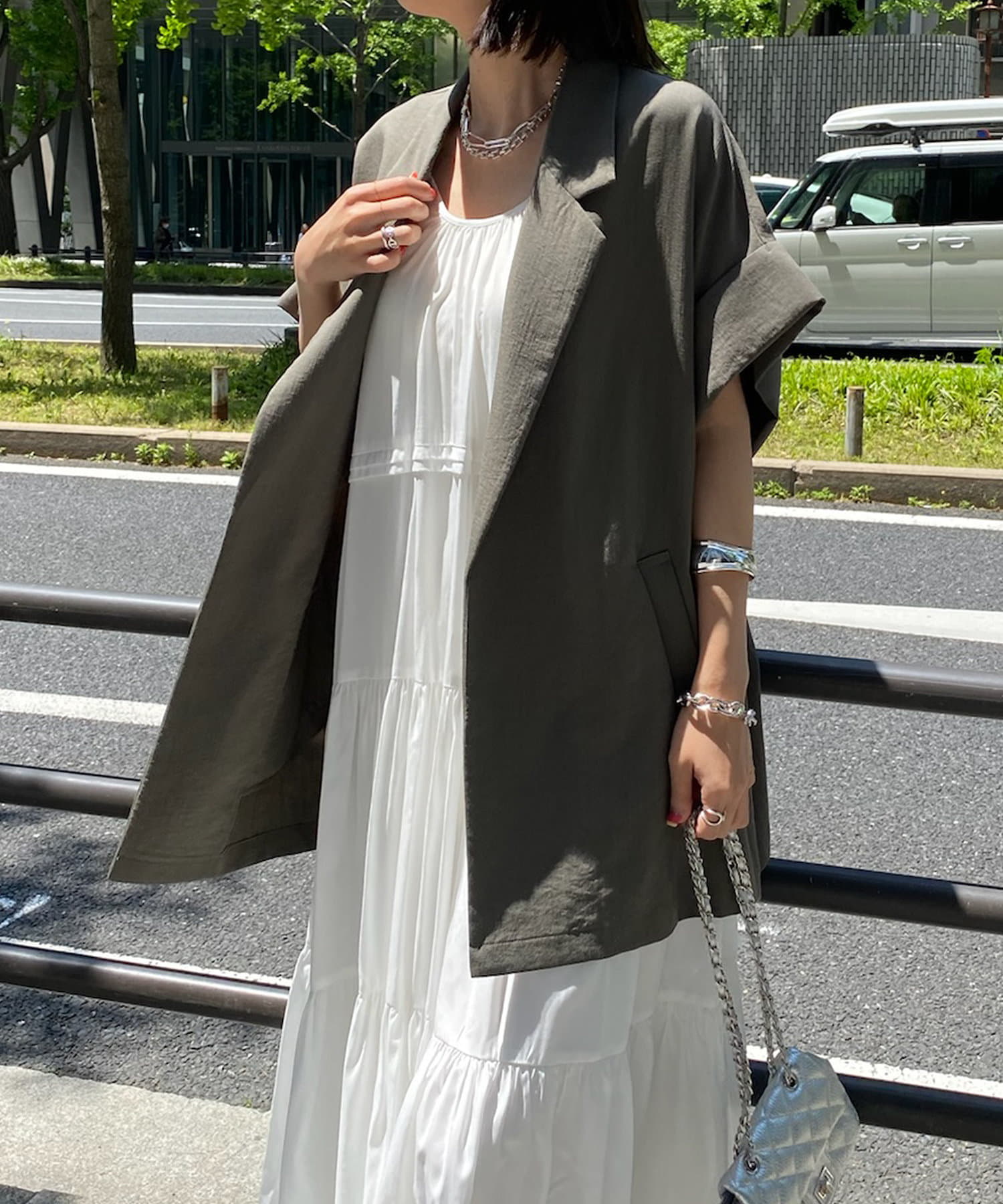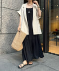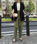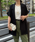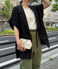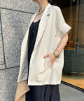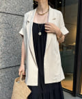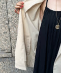 ジャケットのスタンダードなディティールを残しながらも、ボタンレスデザインときっちりと見えすぎない素材感でリラクシーな印象を与えます。