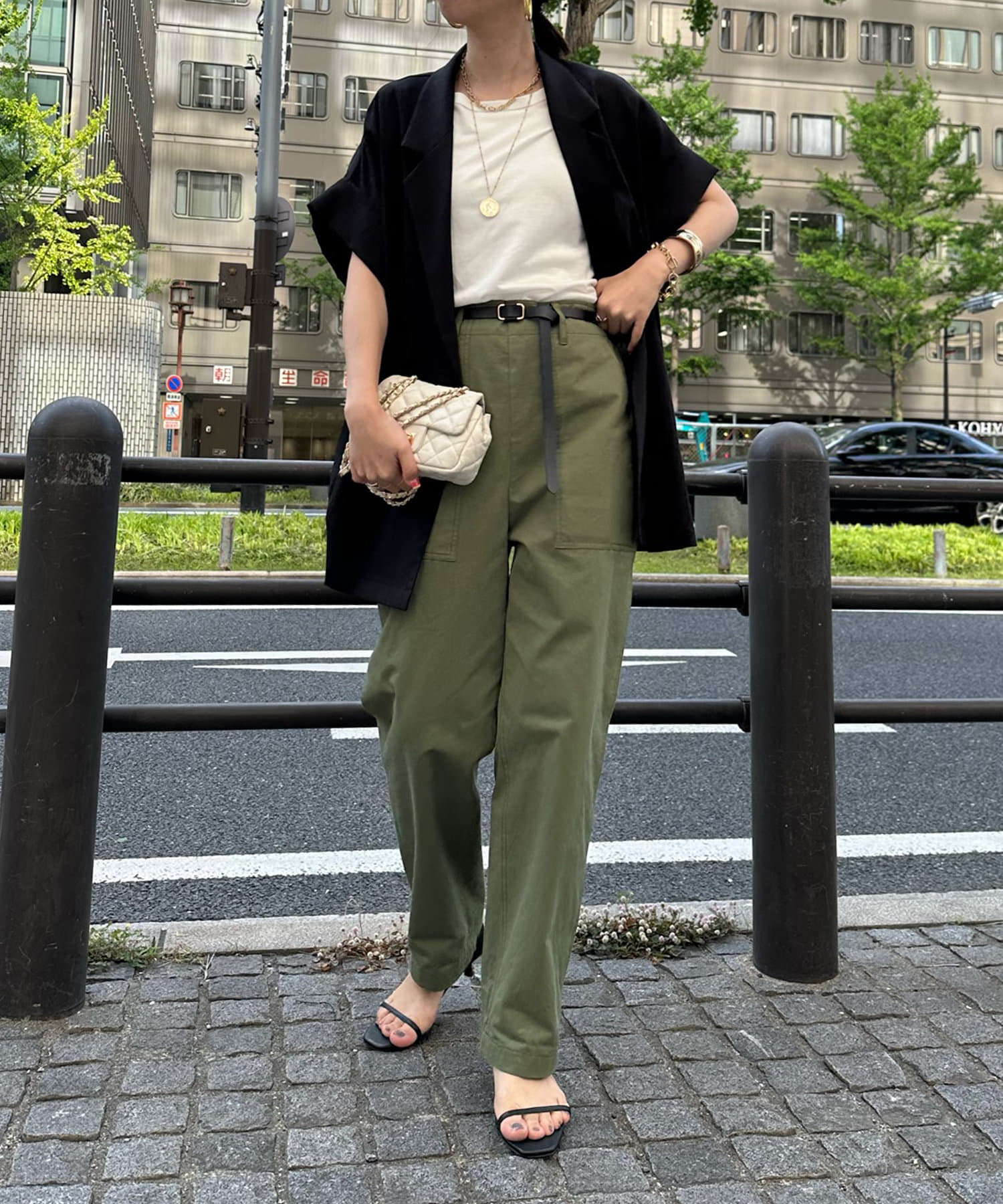 ヒップラインもさり気なく隠してくれる丈感で、ゆるっと抜け感のあるシルエットを作り上げます。