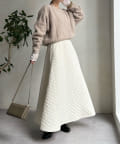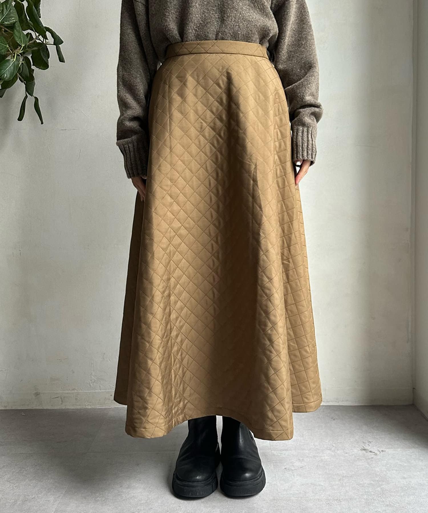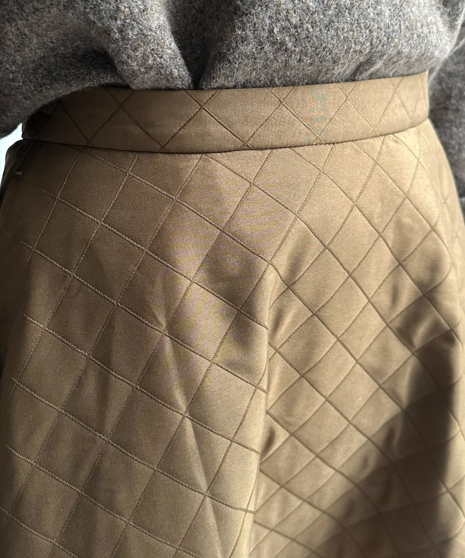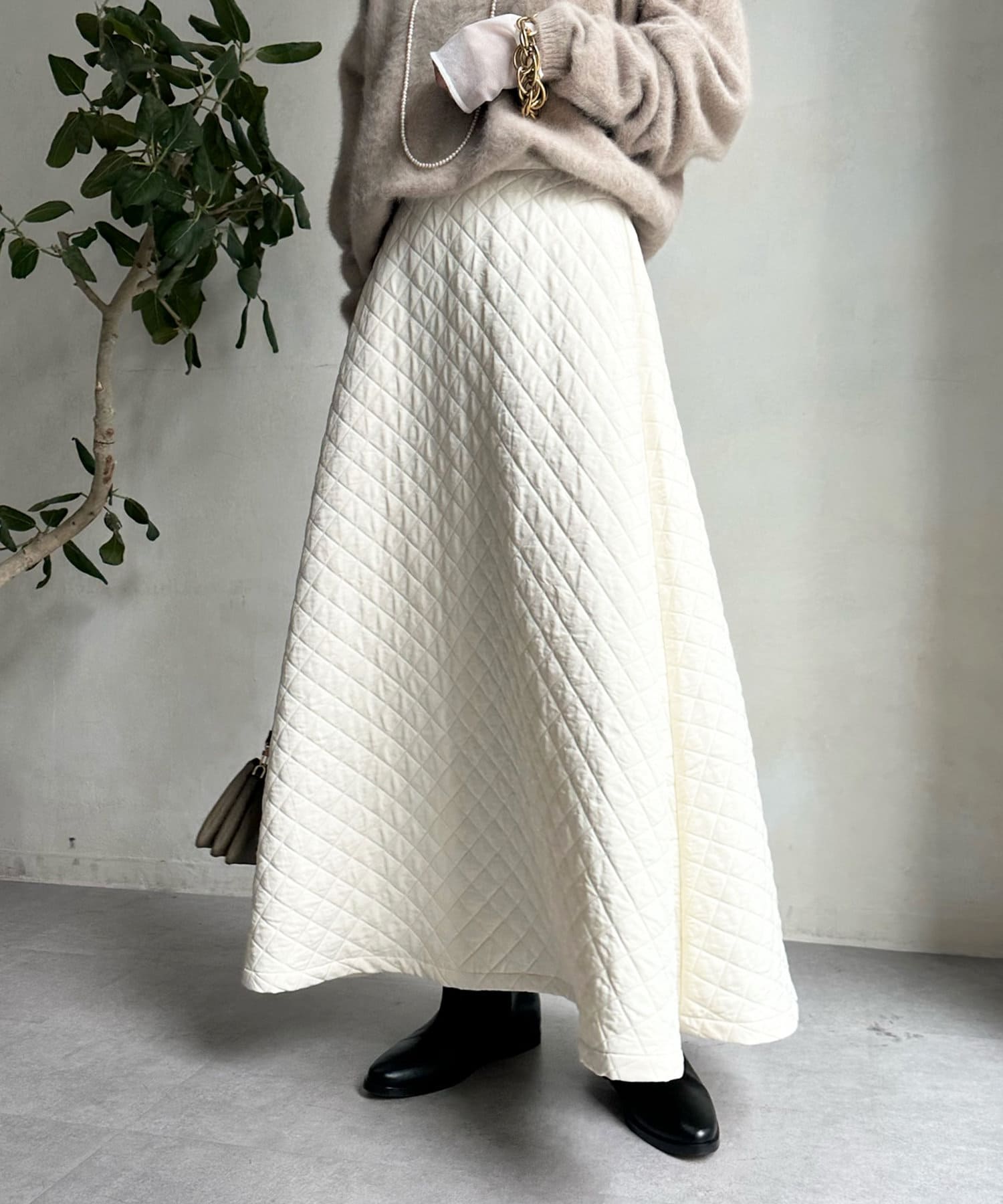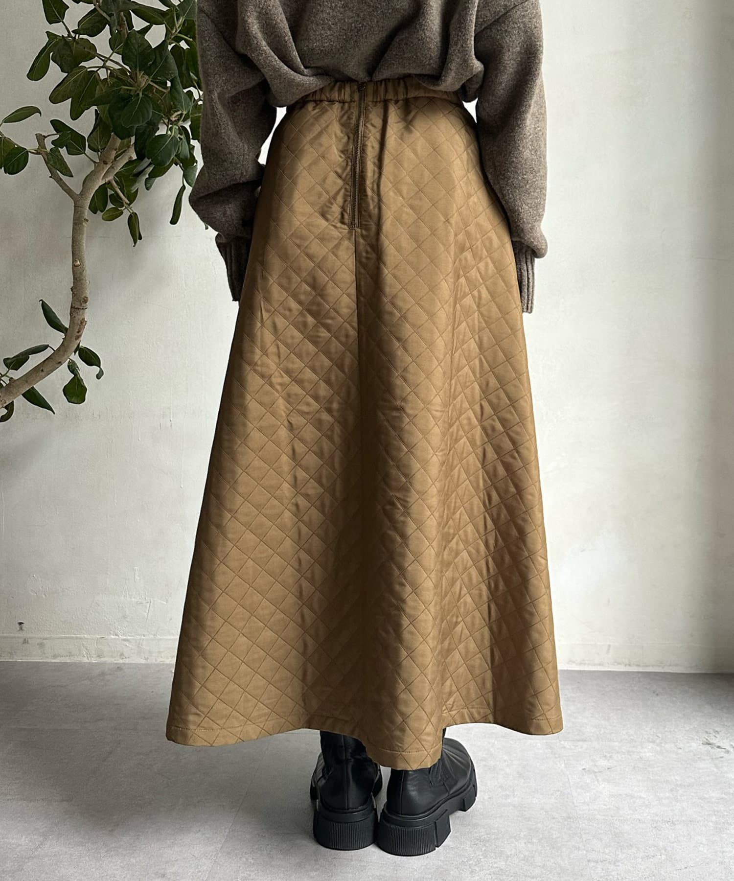 キルティング生地をふんだんに使用し、たっぷりとしたシルエットが特徴のスカート。